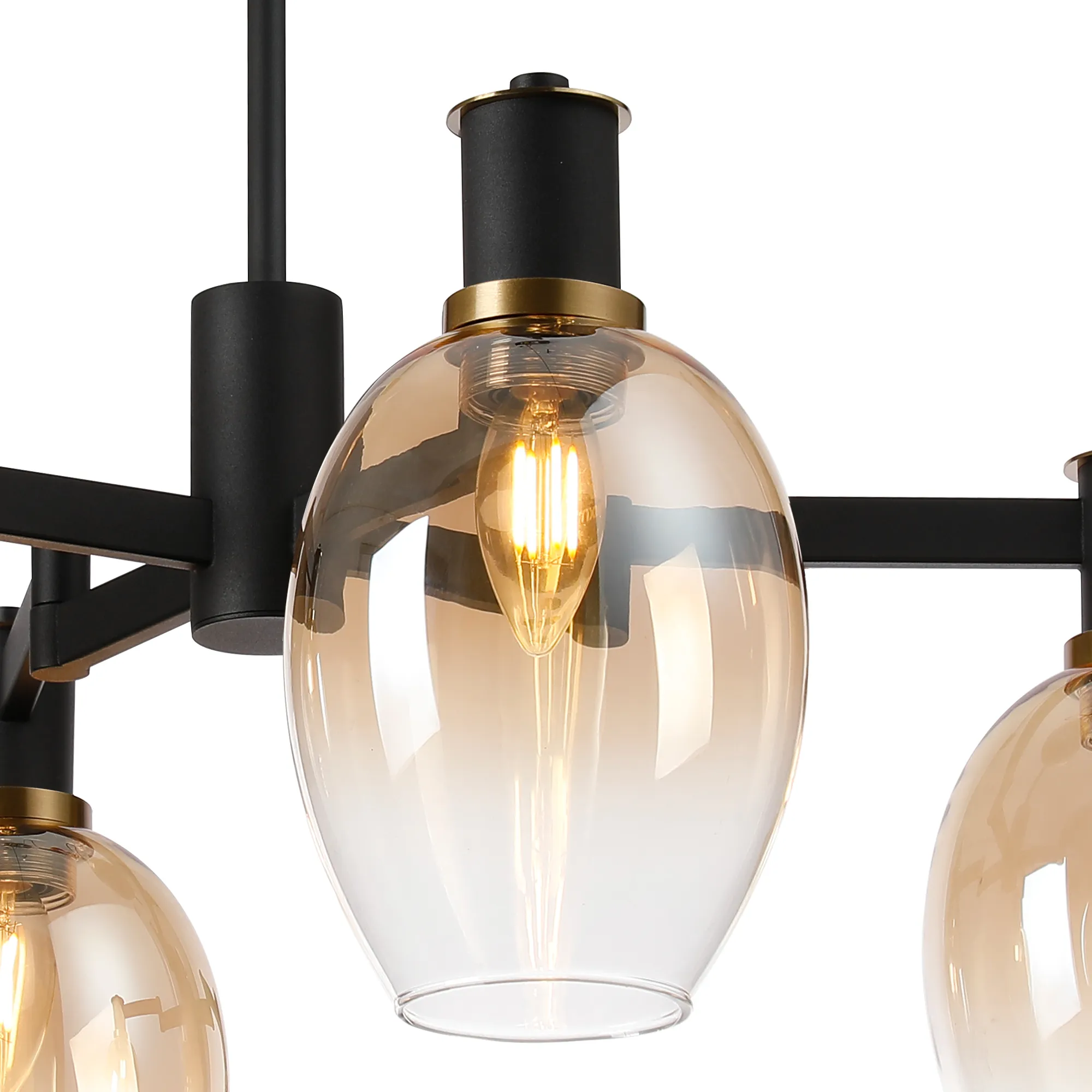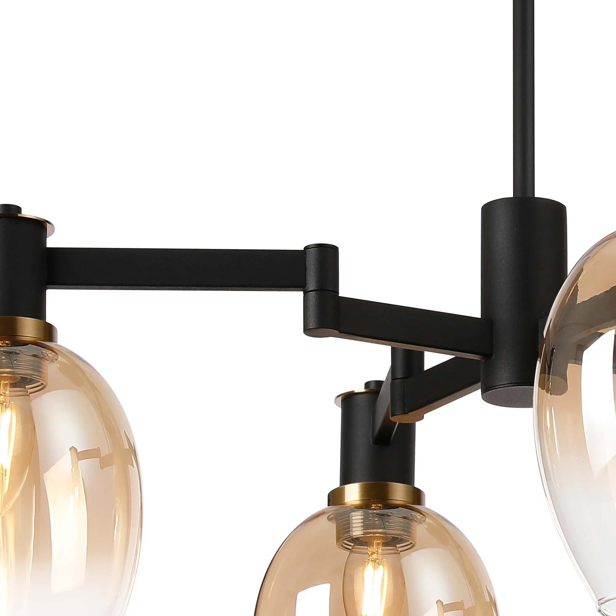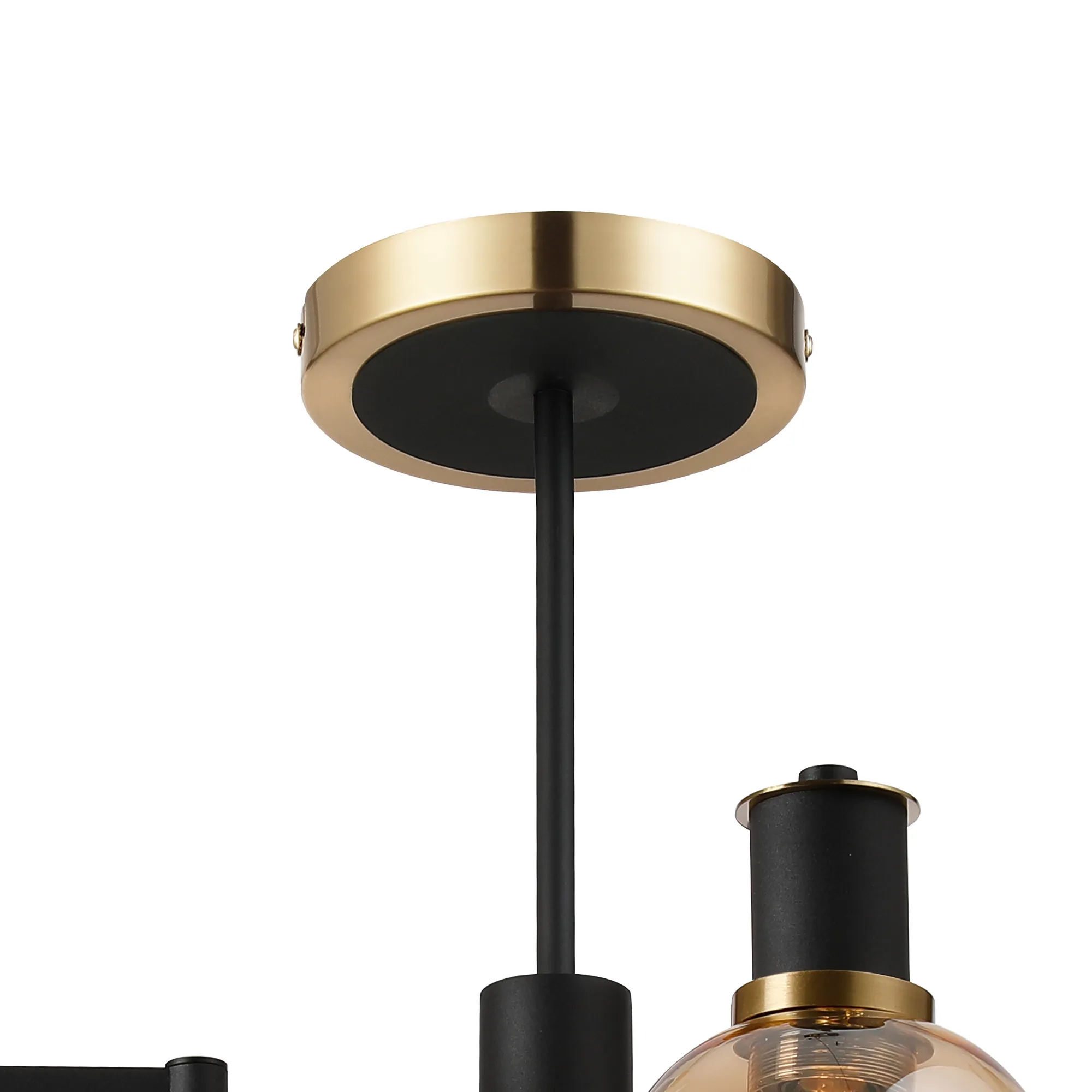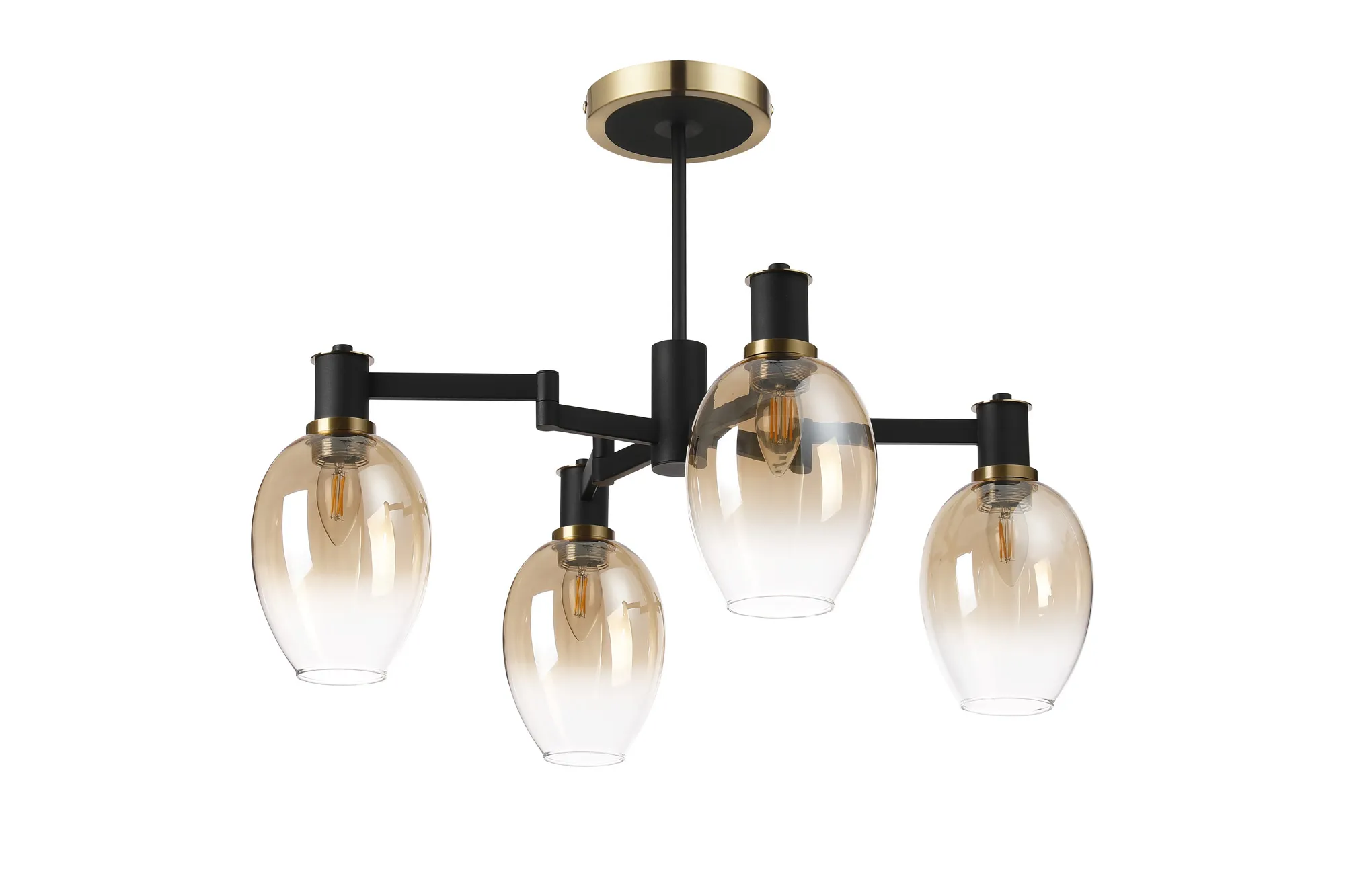 OTHER Arzignano Swing Arm Semi Ceiling 4 x E14 Brass/Satin Black/Amber Fade Wine Glass Glass