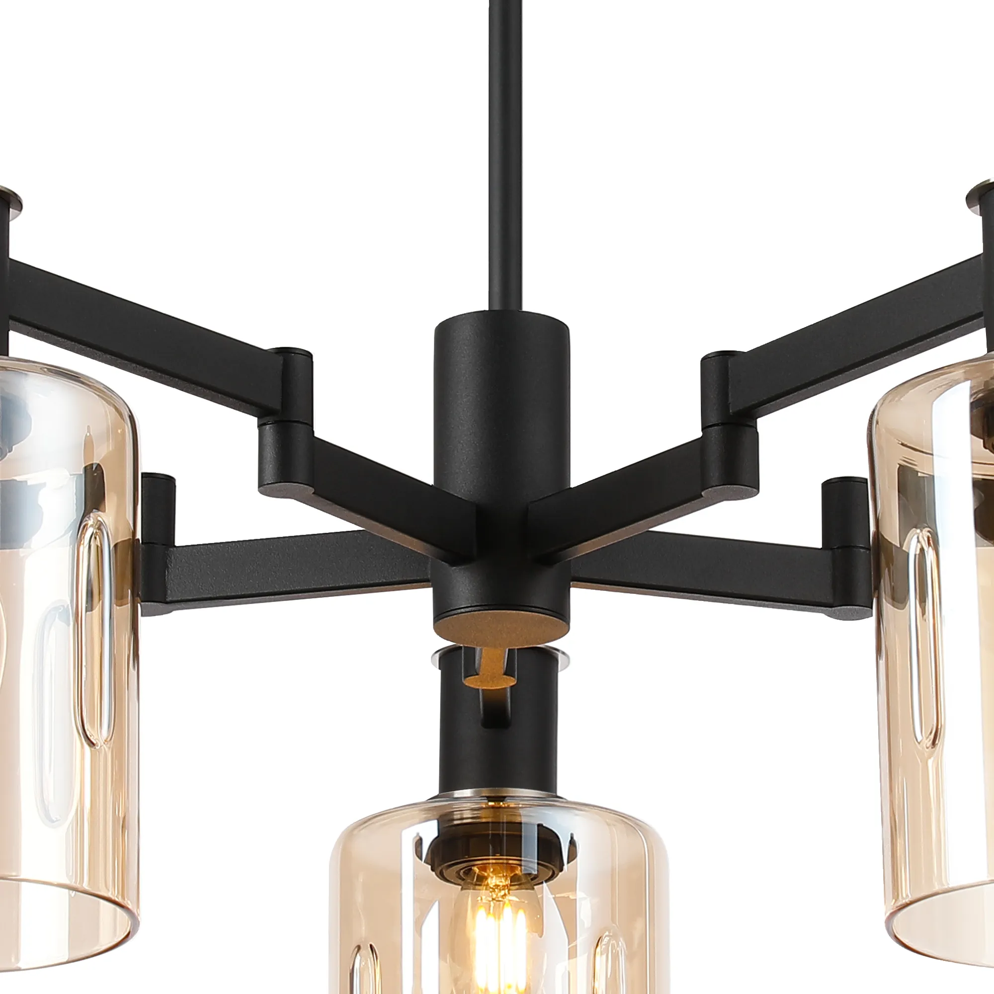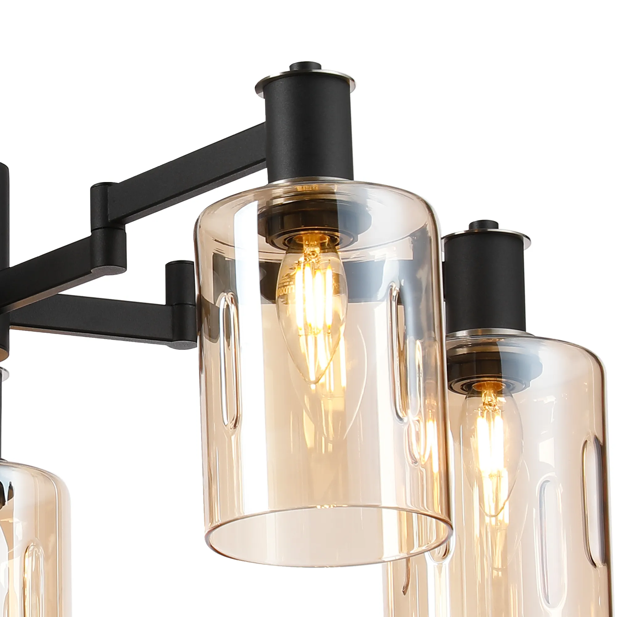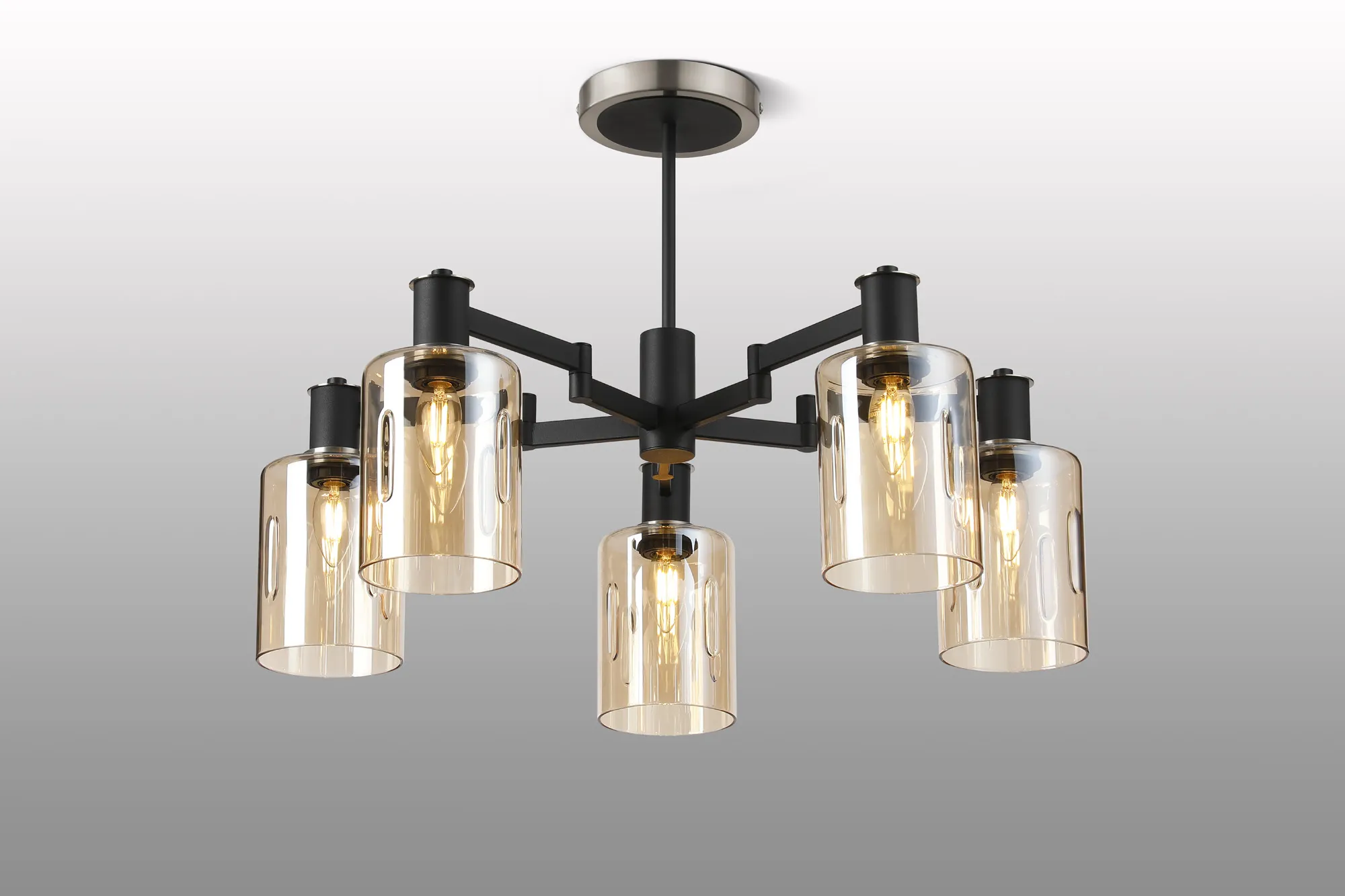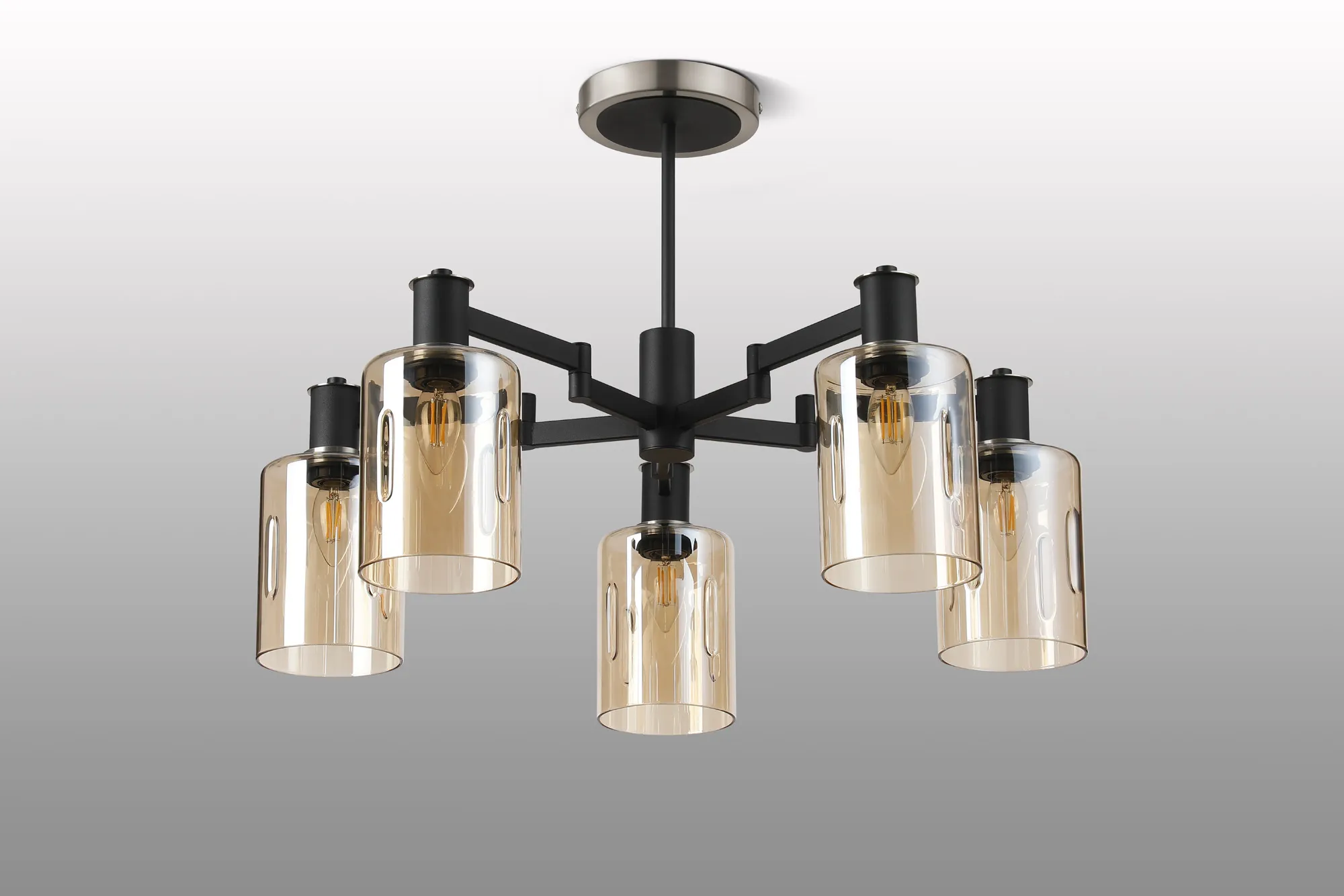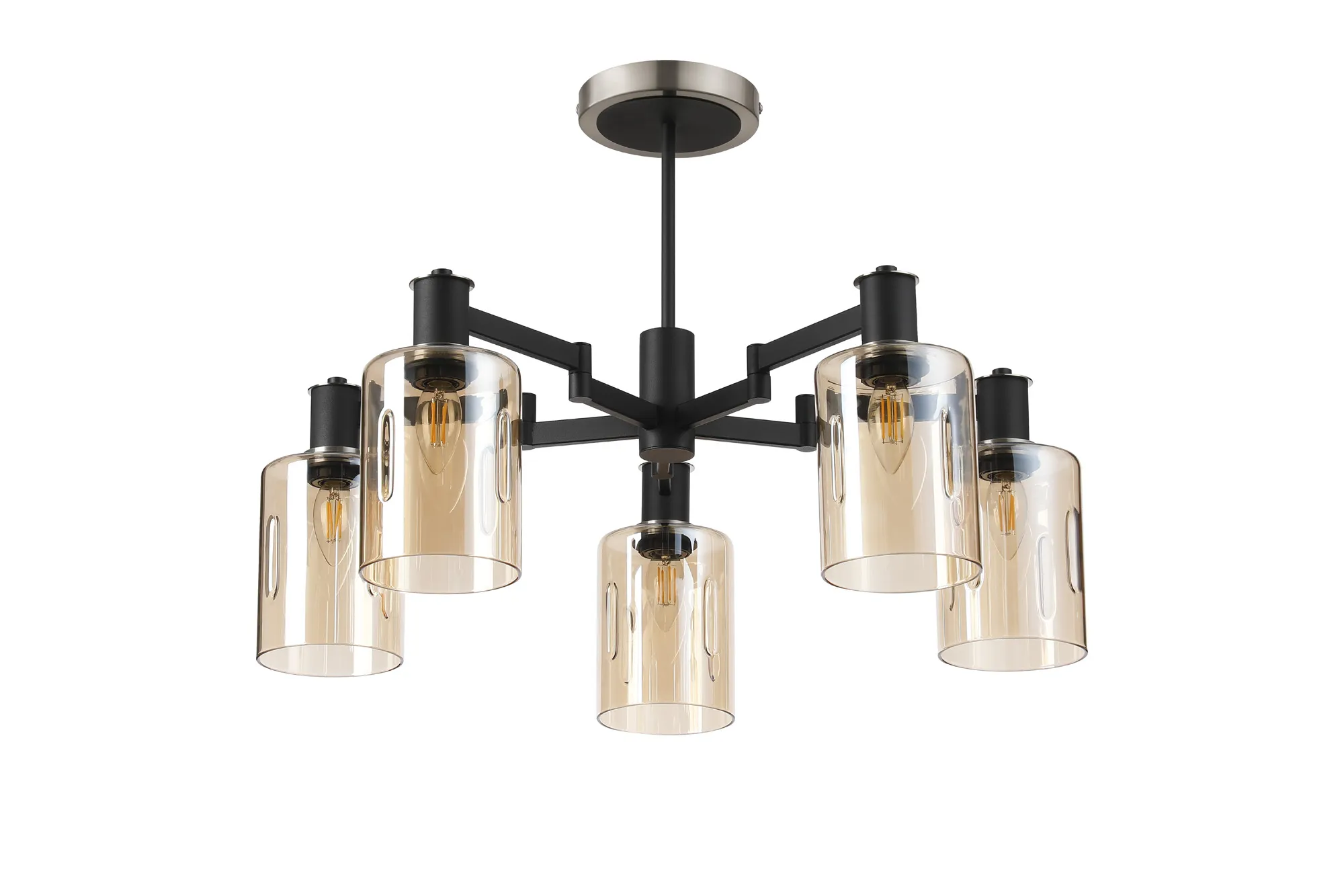 OTHER Arzignano Swing Arm Semi Ceiling 5 x E14 Satin Nickel/Satin Black/Amber Uniform Dimple Cylinder Glass