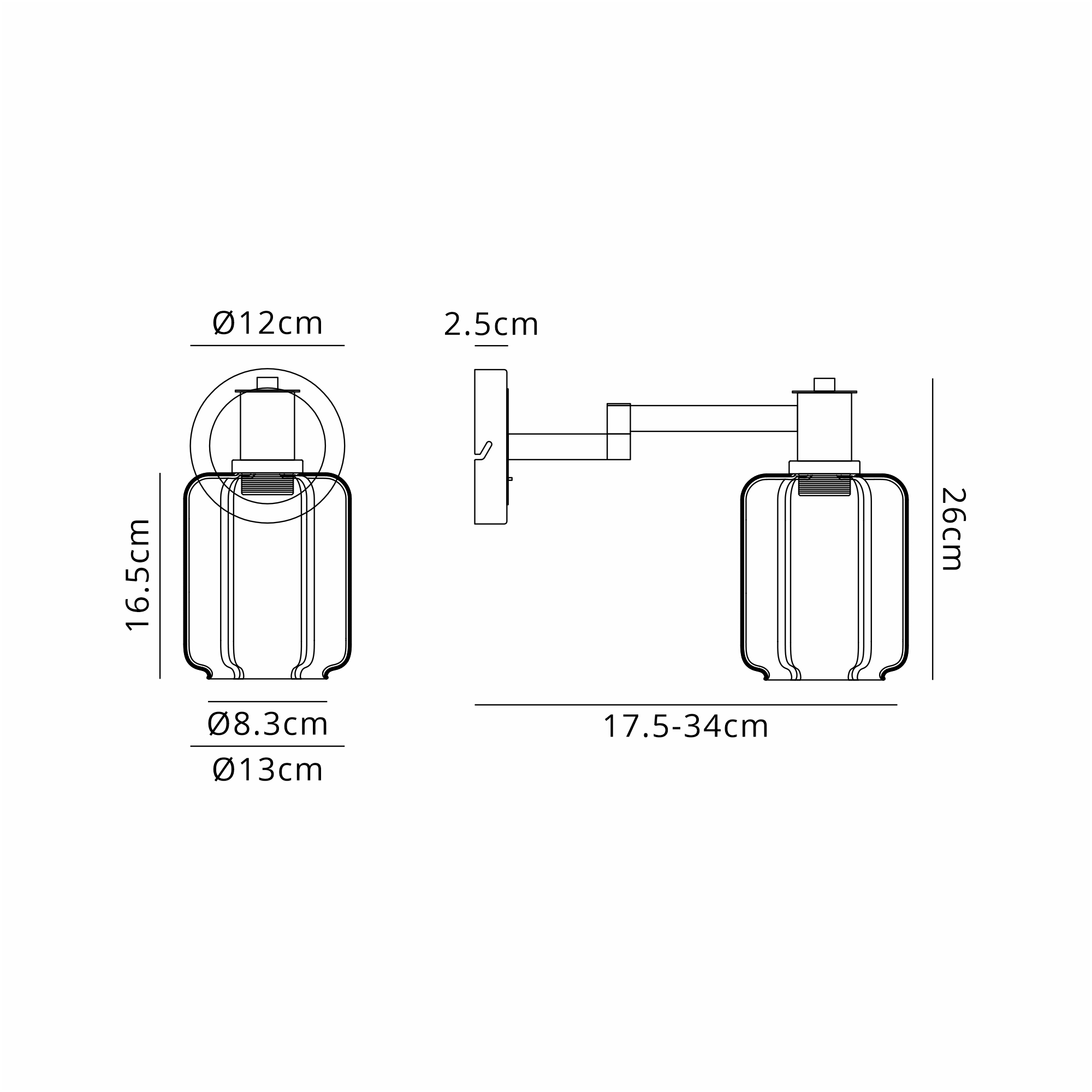 Projection (mm) 175mm-340mm