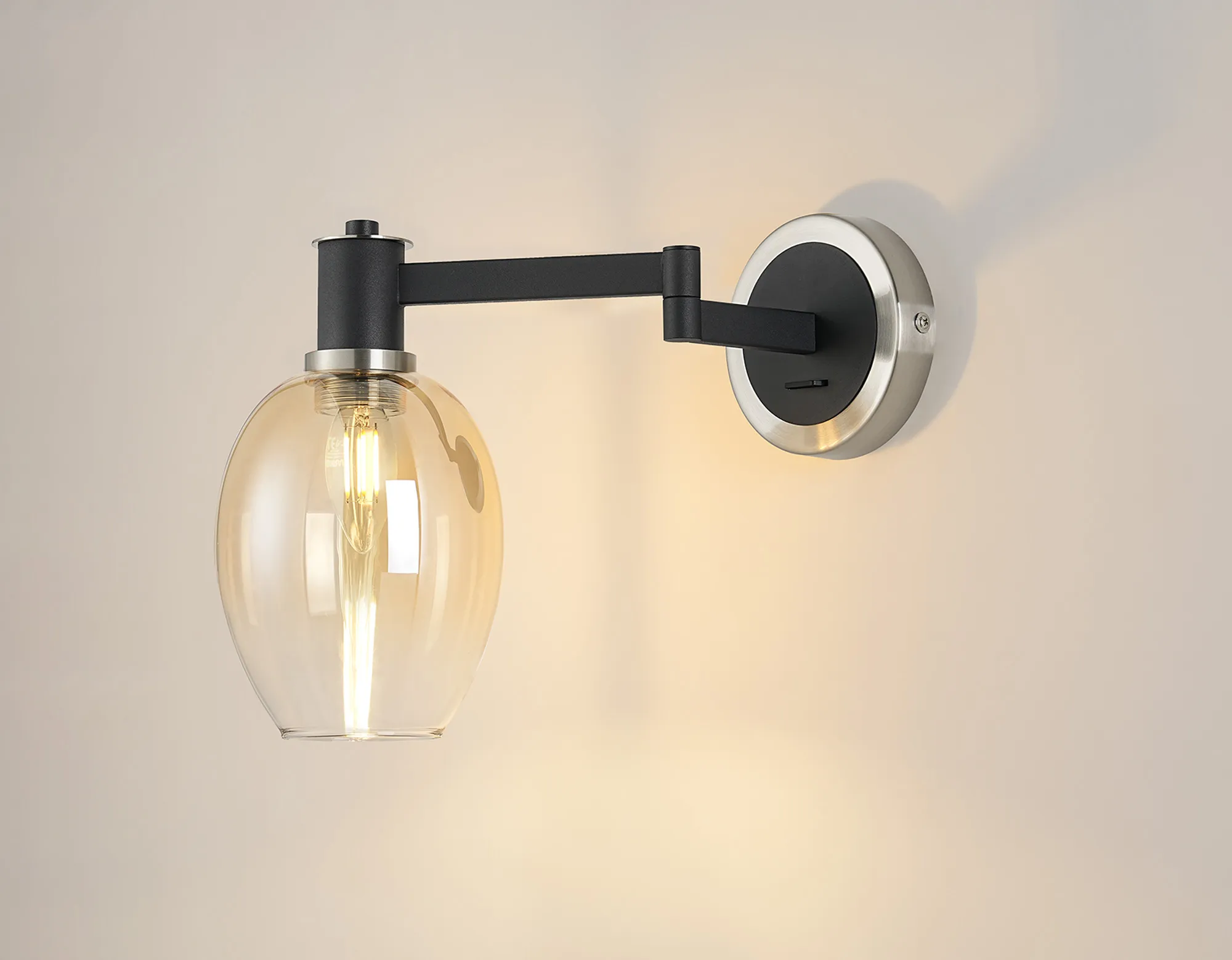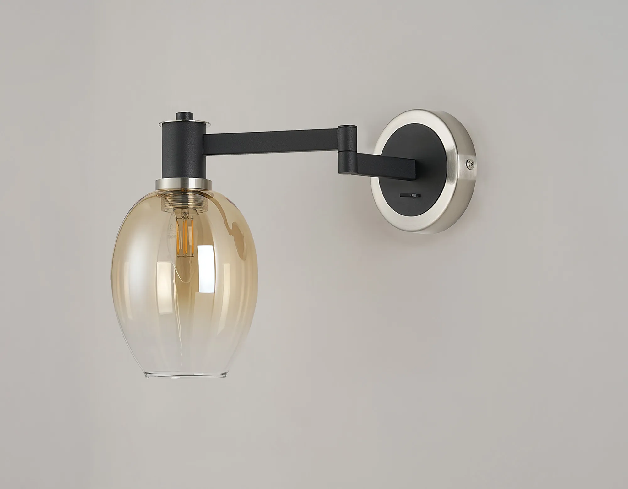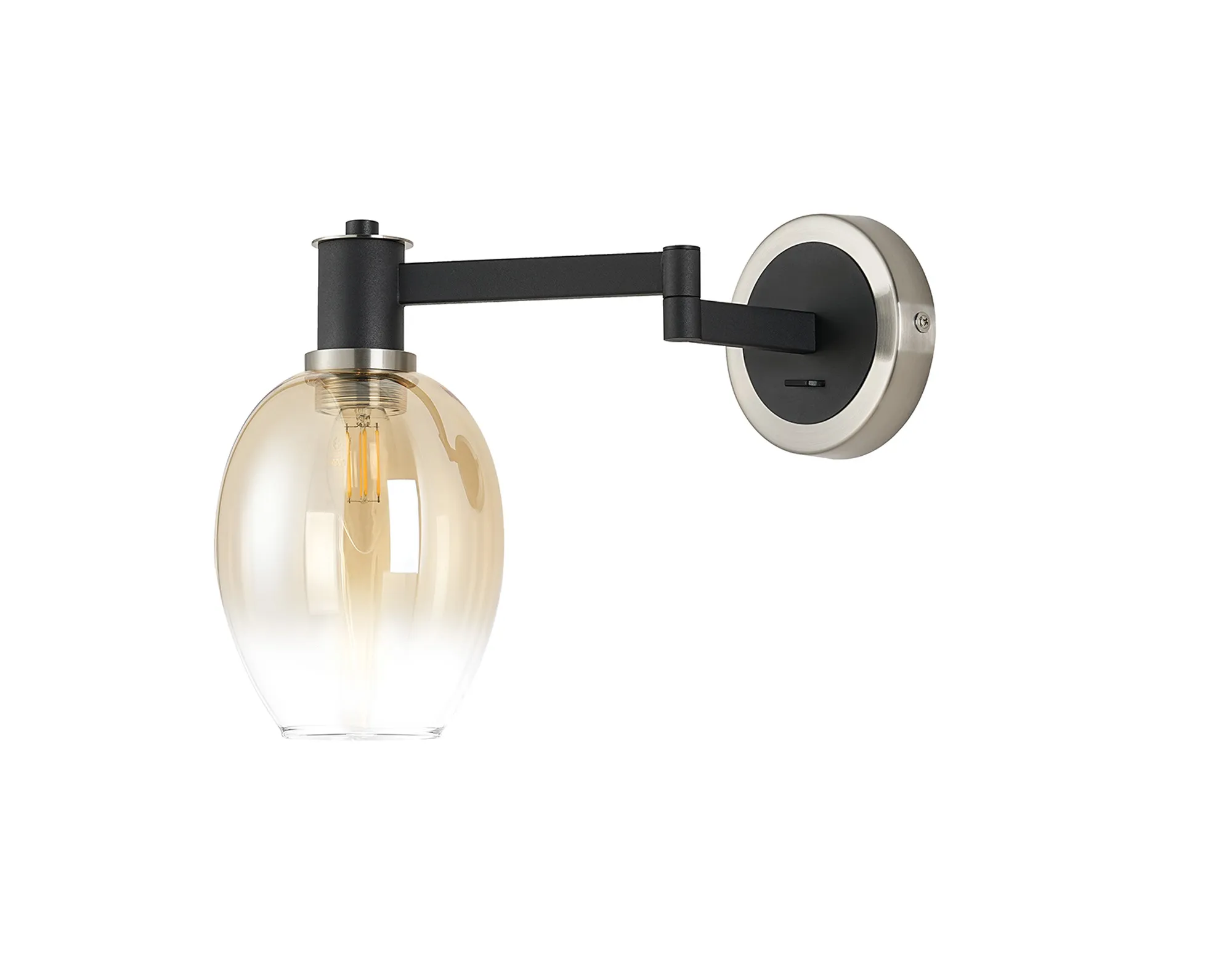 OTHER Arzignano Adjustable Swing Arm Wall x 1 x E14 Satin Nickel/Satin Black/Amber Fade Wine Glass Glass