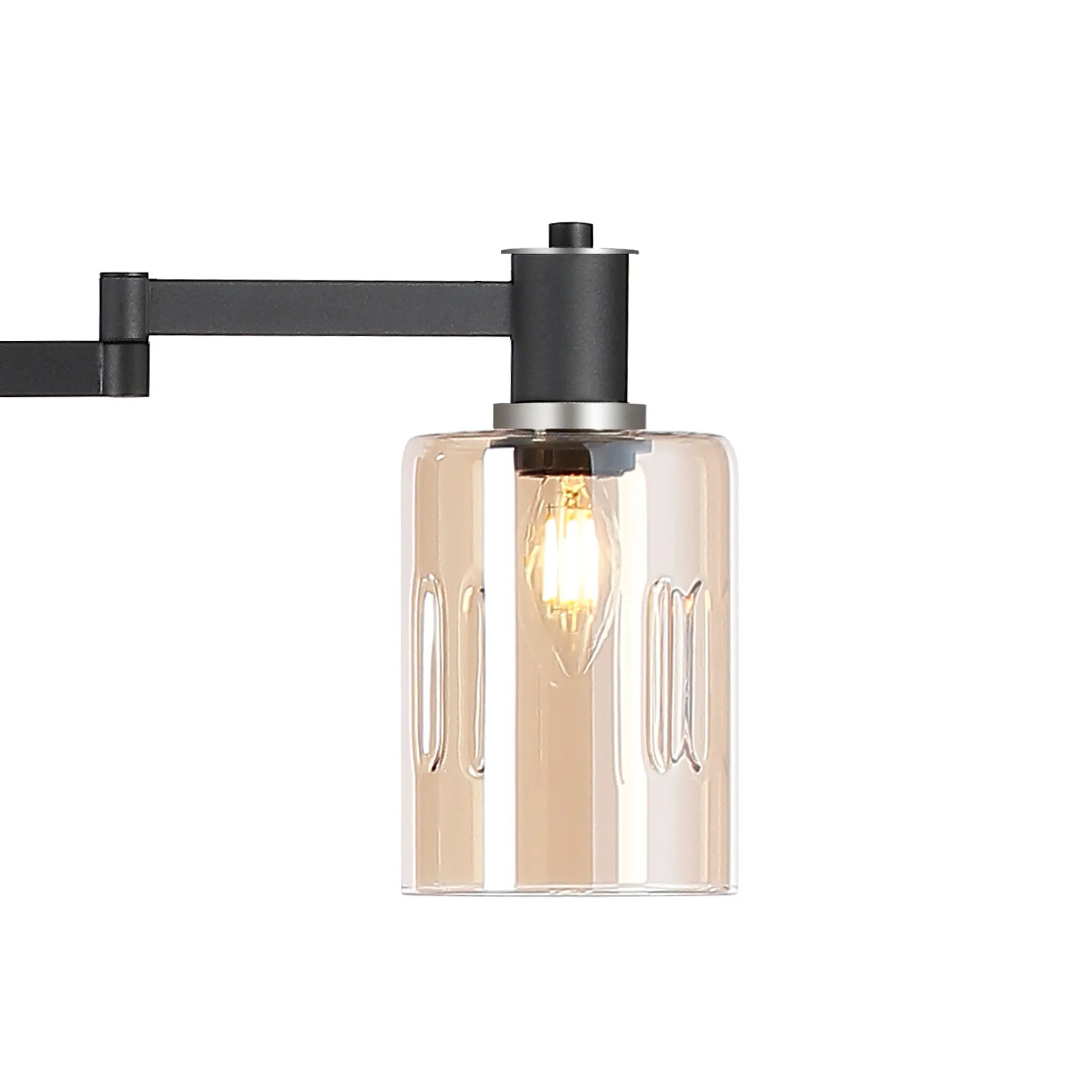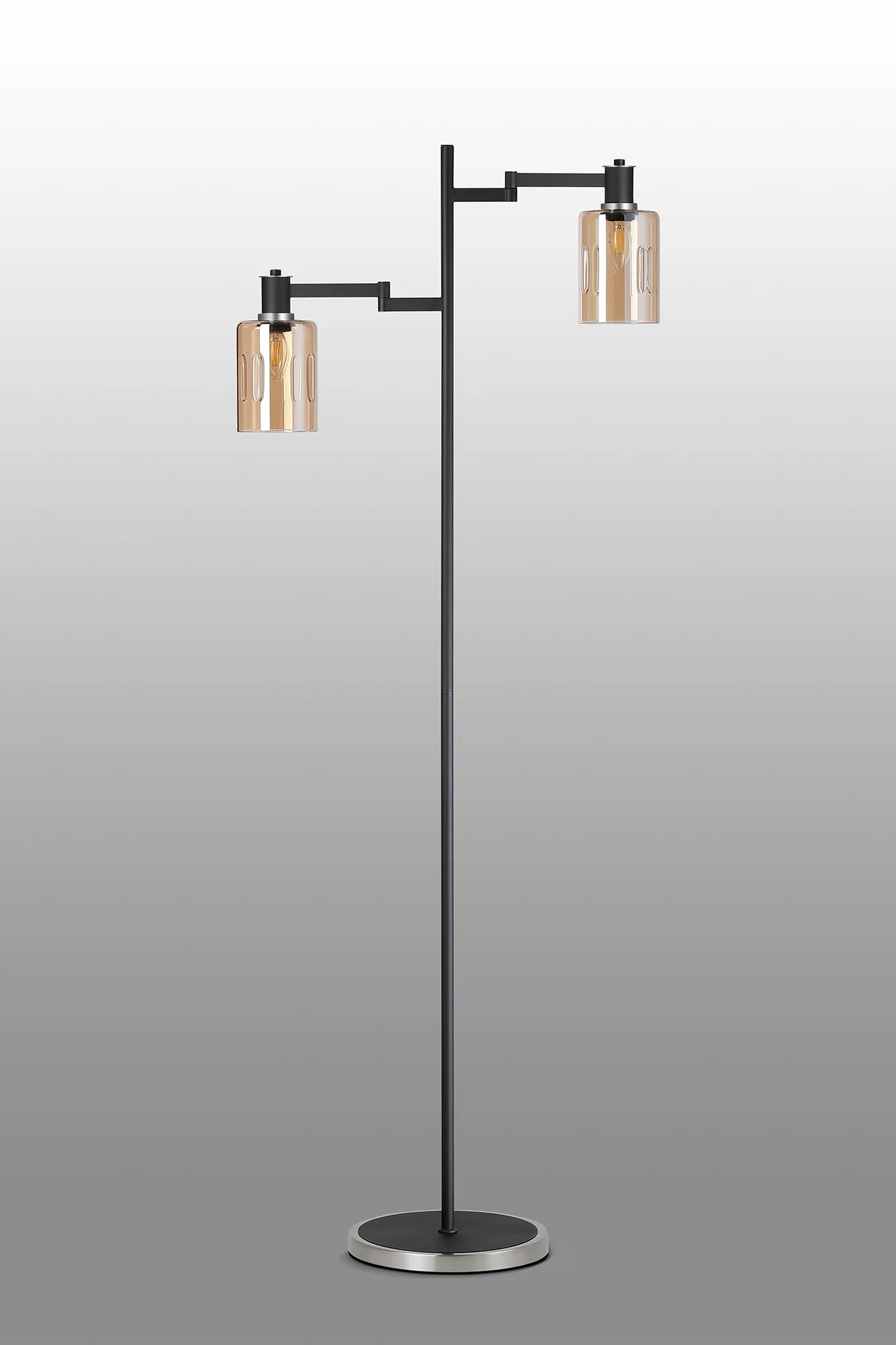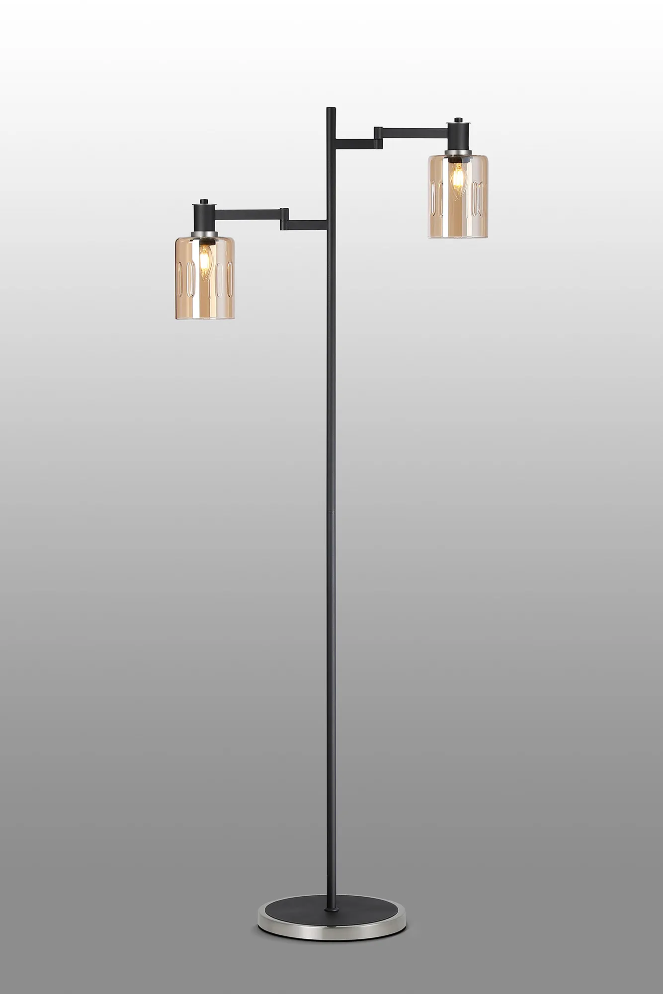 OTHER Arzignano Swing Arm Floor Lamp 2 x E14 Satin Nickel/Satin Black/Amber Uniform Dimple Cylinder Glass