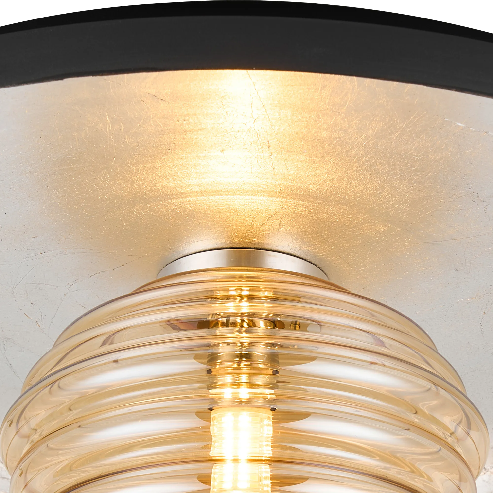 Erbezzo 36cm Flush Ceiling/Wall Light, 1 Light G9, Gold Leaf/Coffee/Amber Rippled Glass Shade