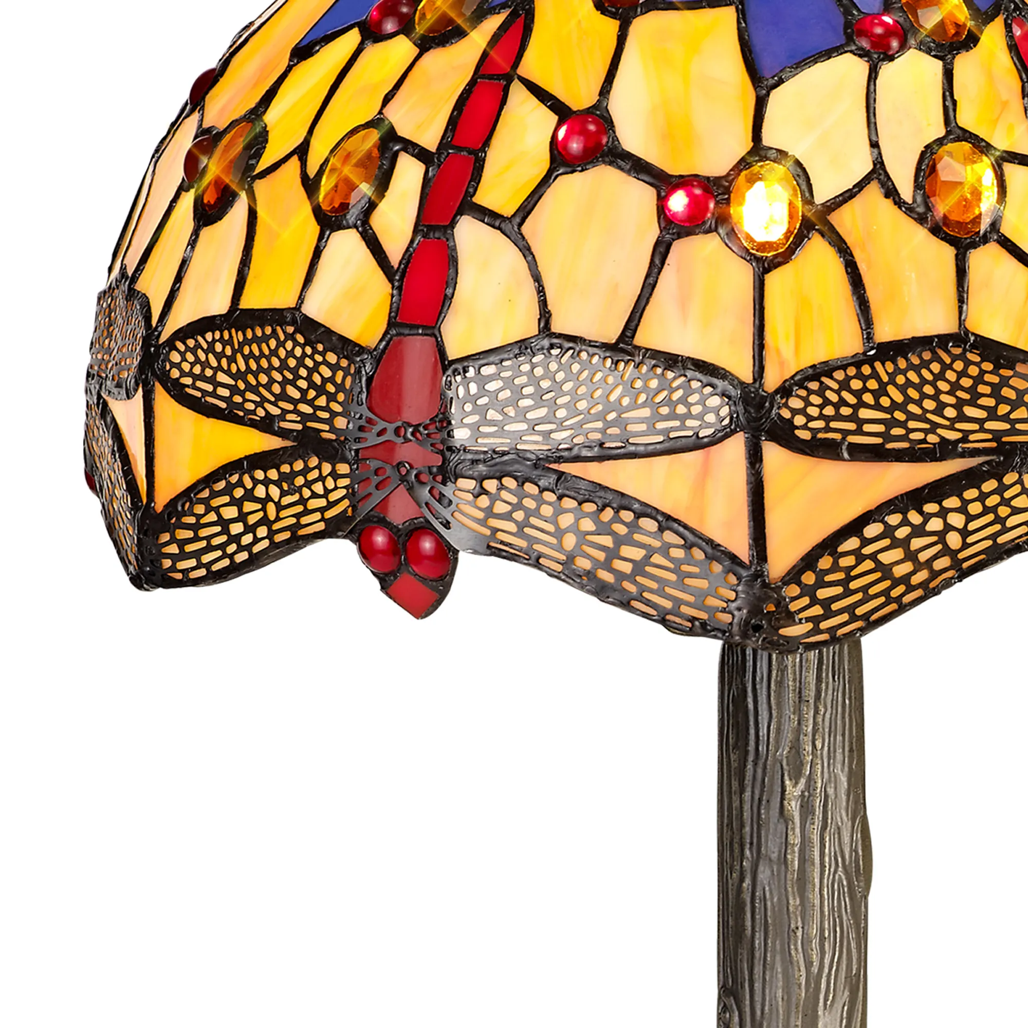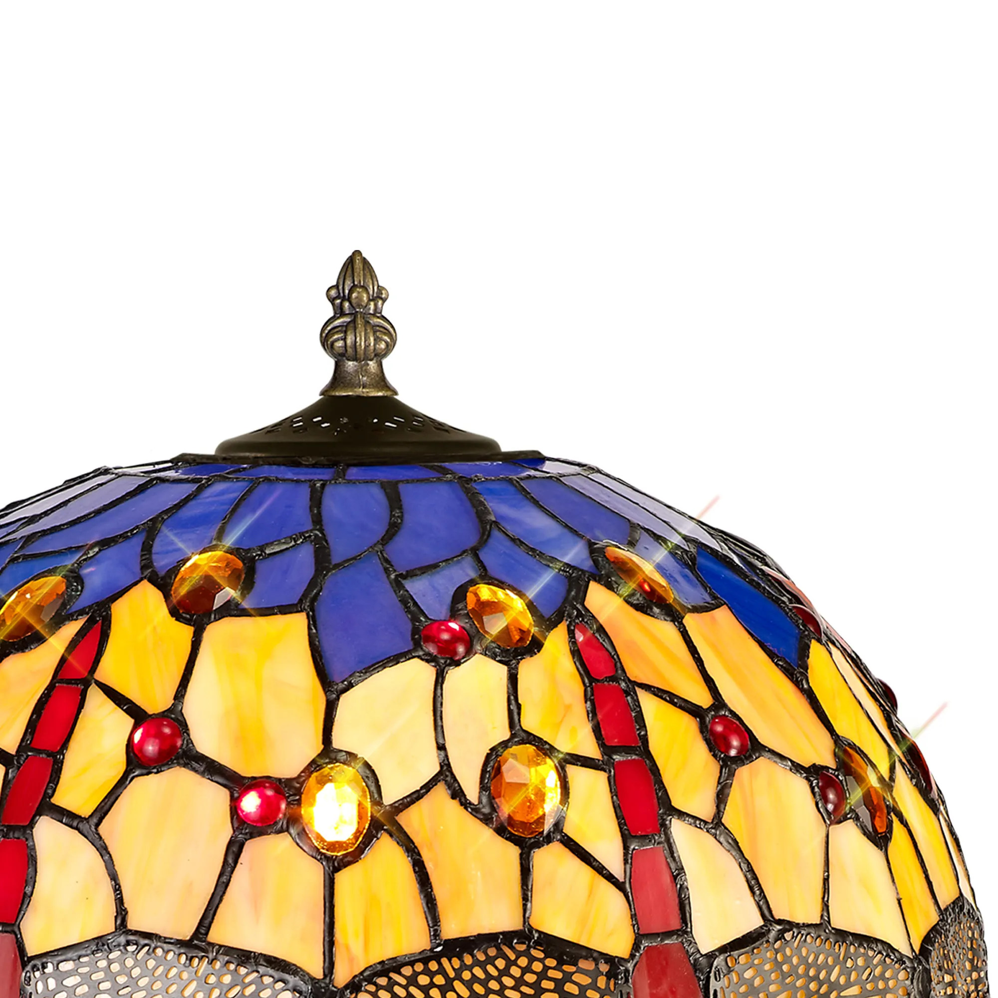 Gambassi's stunning Tiffany glass design features the classic dragonfly form, effortlessly fashioned into the overall mosaic collection of Tiffany glass pieces. Reinterpreting an old-fashioned concept, additional crystal pieces have been inserted into the glass shades providing a touch of modern sparkle and elegance. Available in two colour finishes this beautiful pattern is featured across a comprehensive variety of lighting solutions.