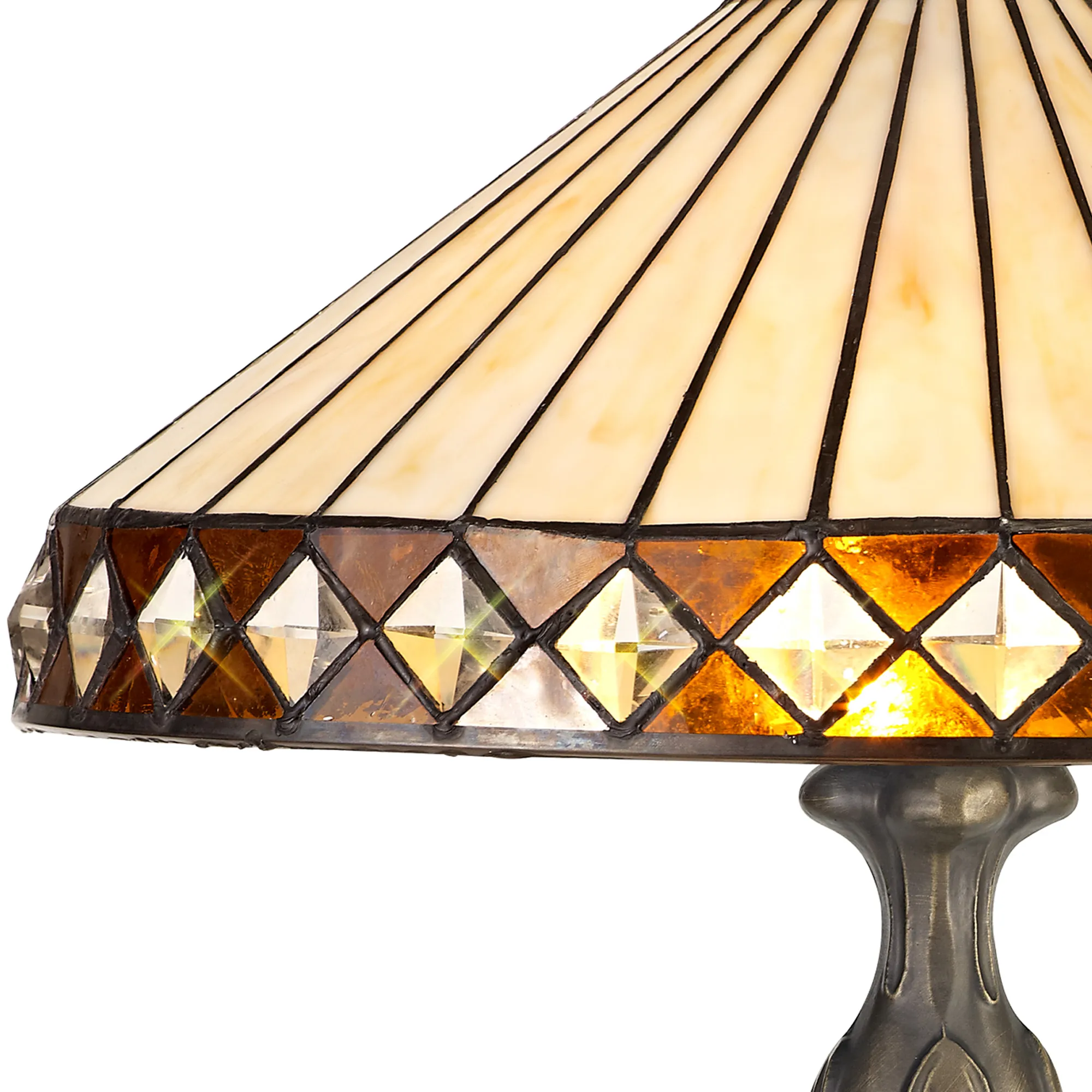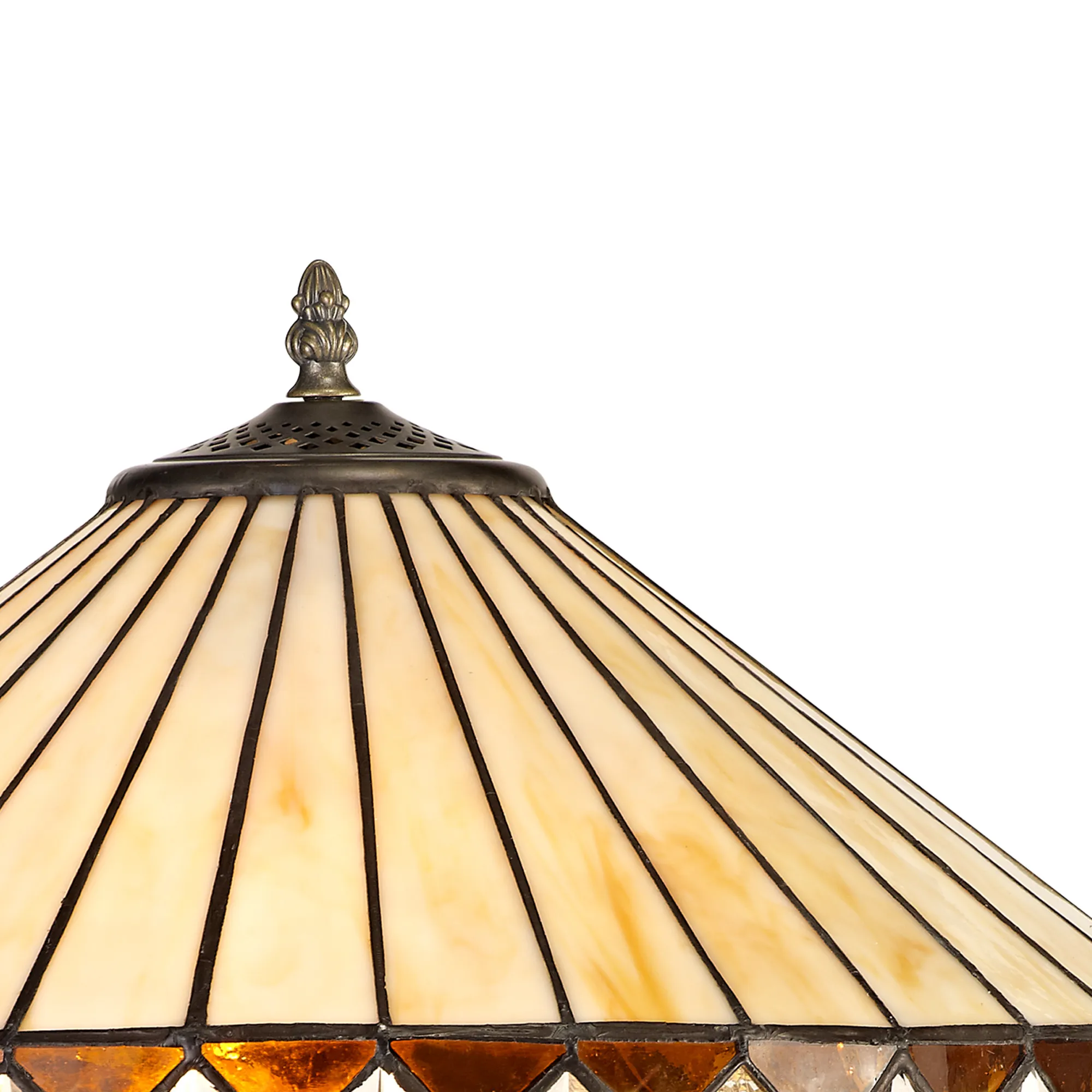 OTHER Serchio 2 Light Curved Table Lamp E27 With 40cm Tiffany Shade, Amber/Cream/Crystal/Aged Antique Brass