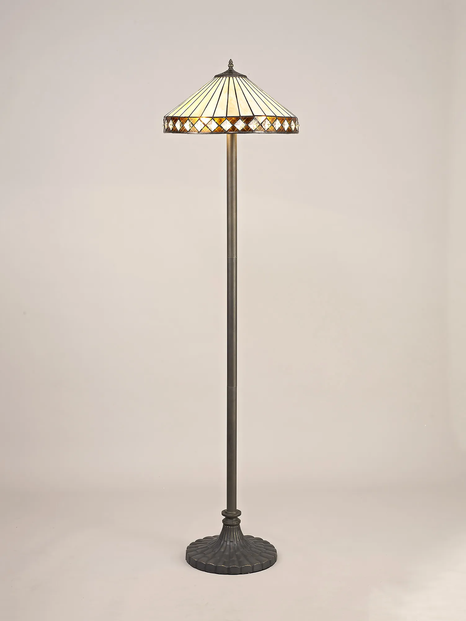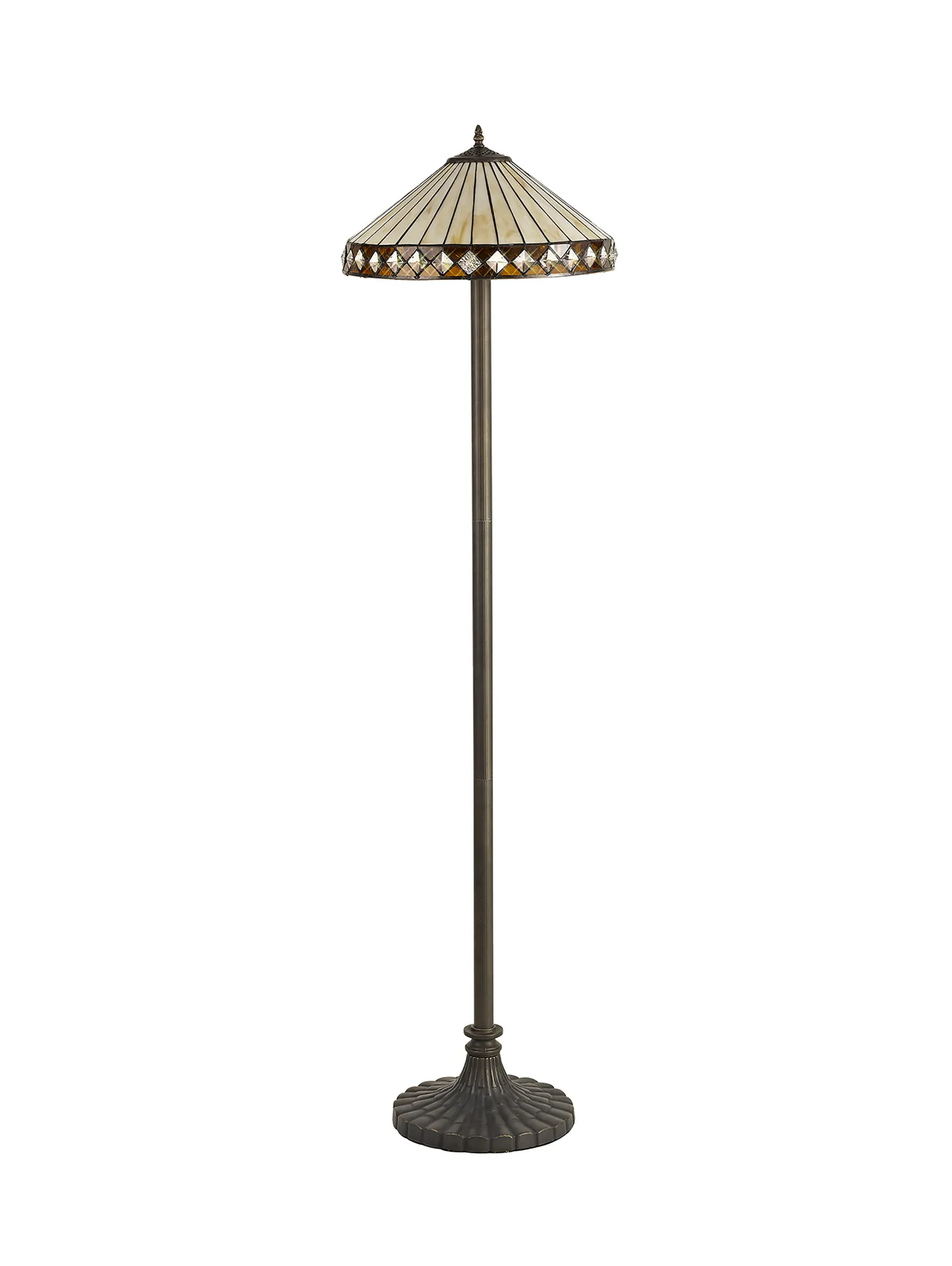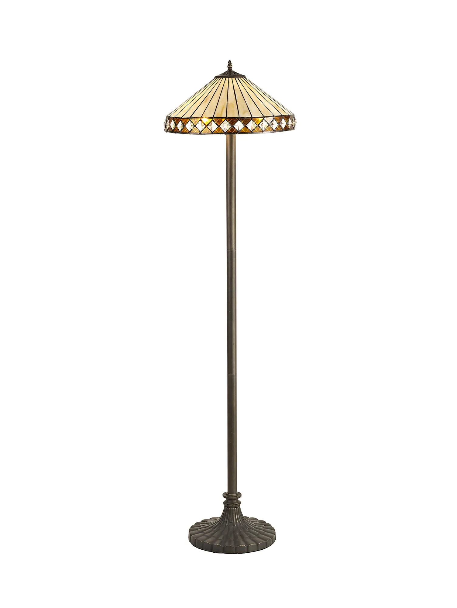 OTHER Serchio 2 Light Stepped Design Floor Lamp E27 With 40cm Tiffany Shade, Amber/Cream/Crystal/Aged Antique Brass