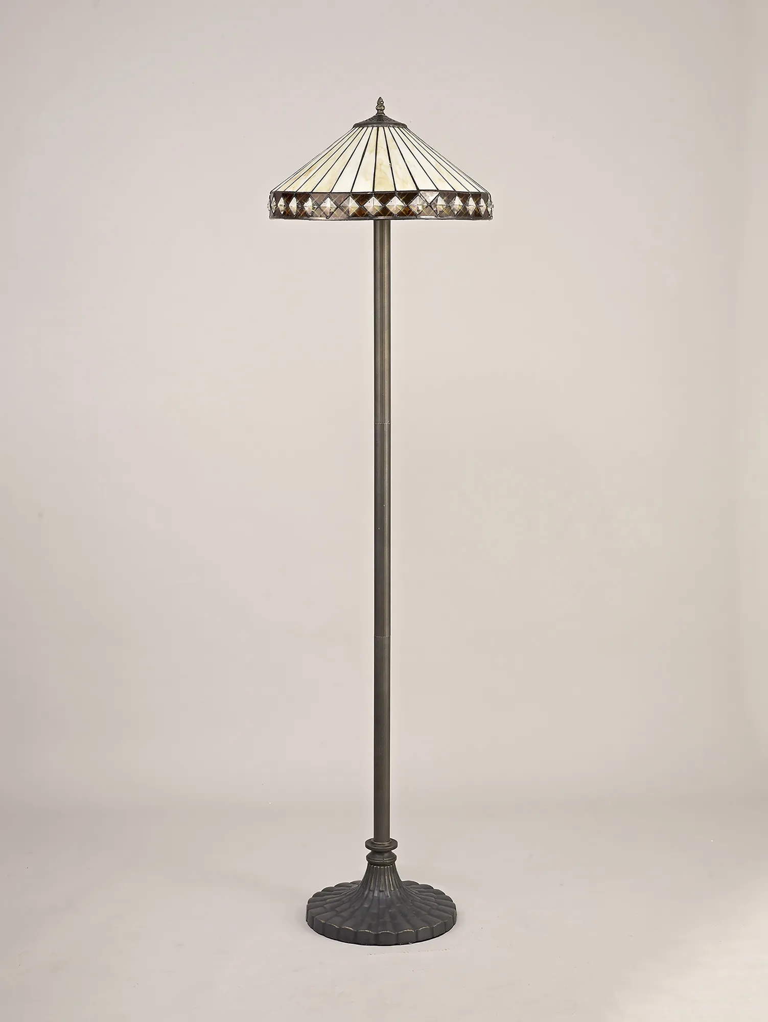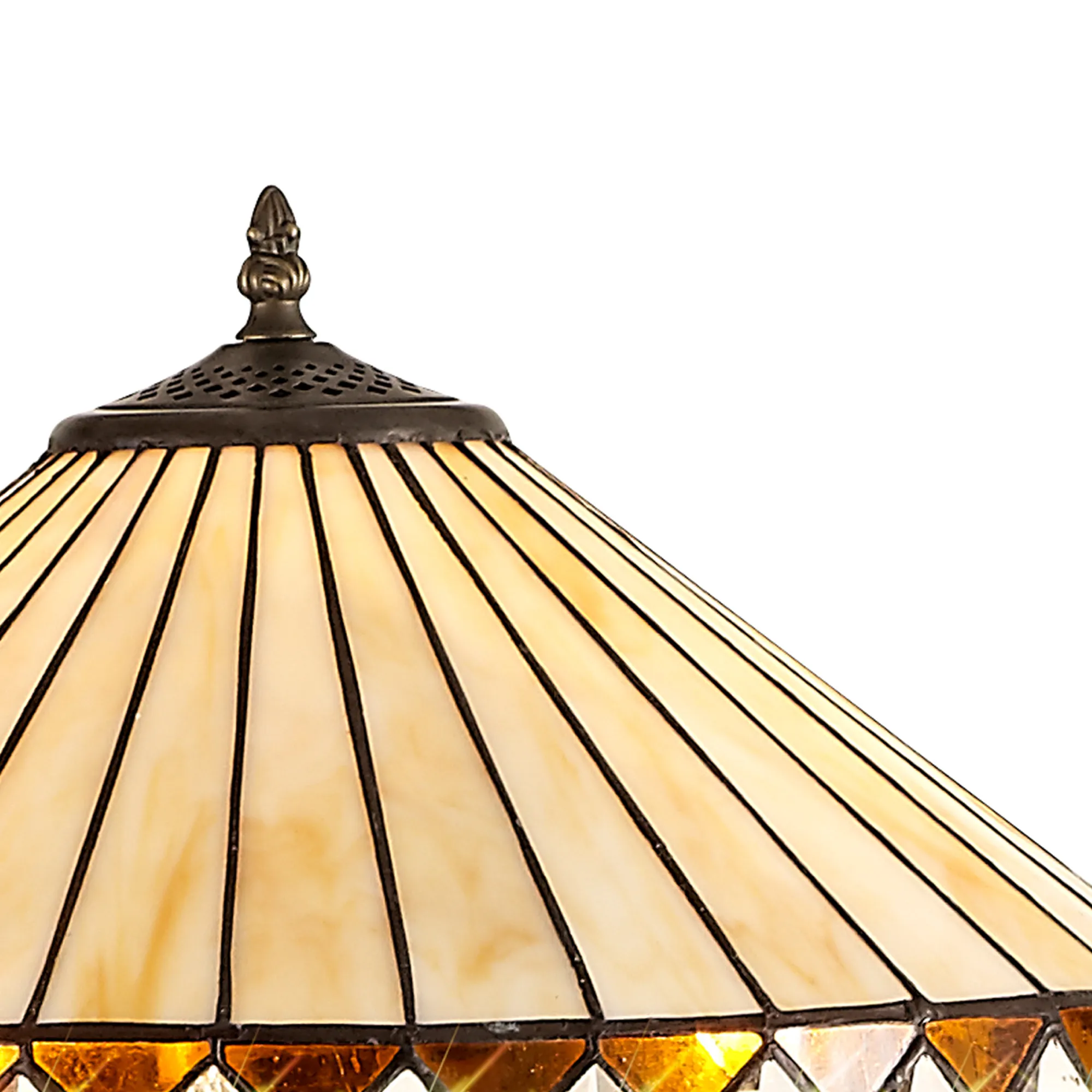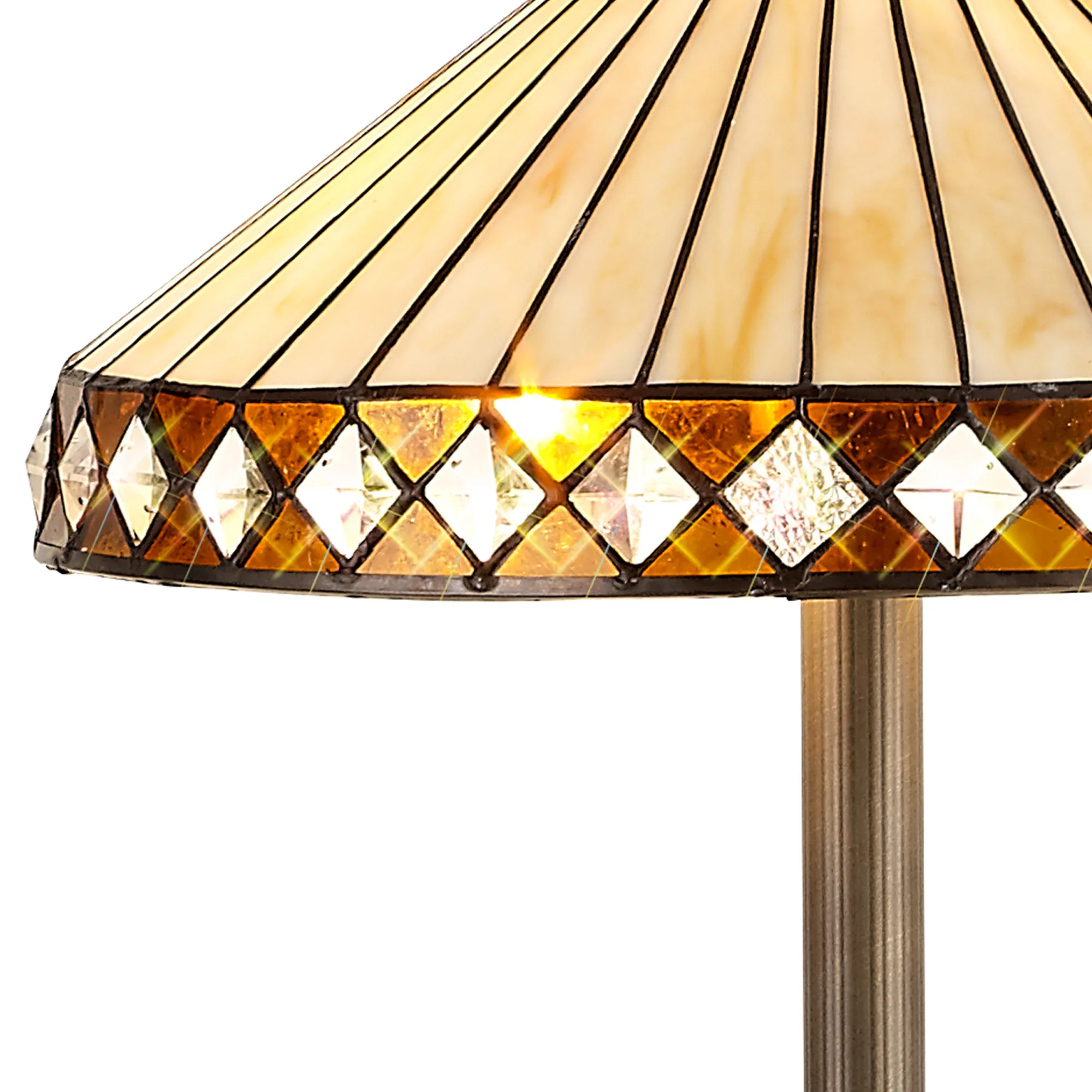 OTHER Serchio 2 Light Stepped Design Floor Lamp E27 With 40cm Tiffany Shade, Amber/Cream/Crystal/Aged Antique Brass