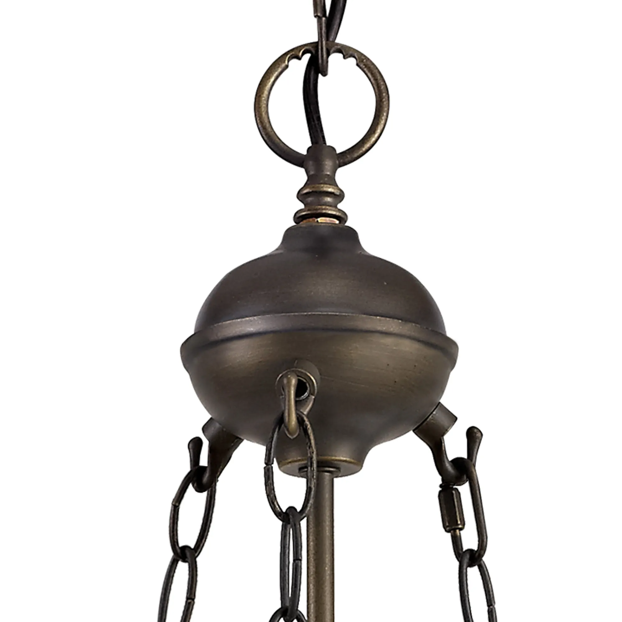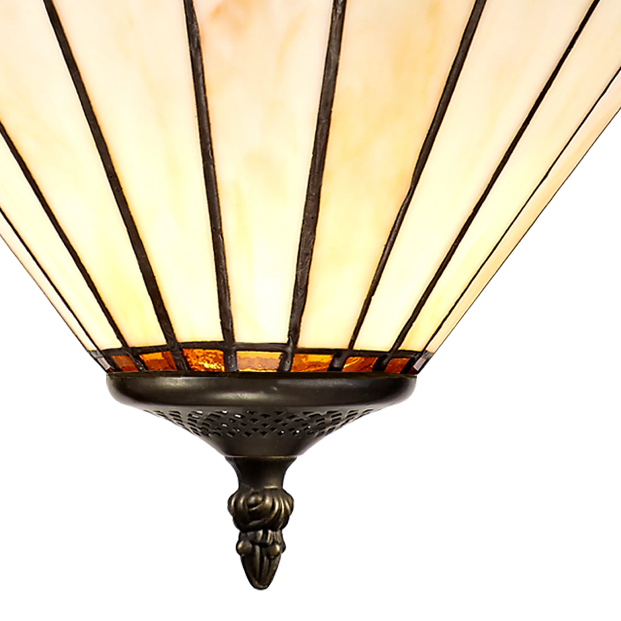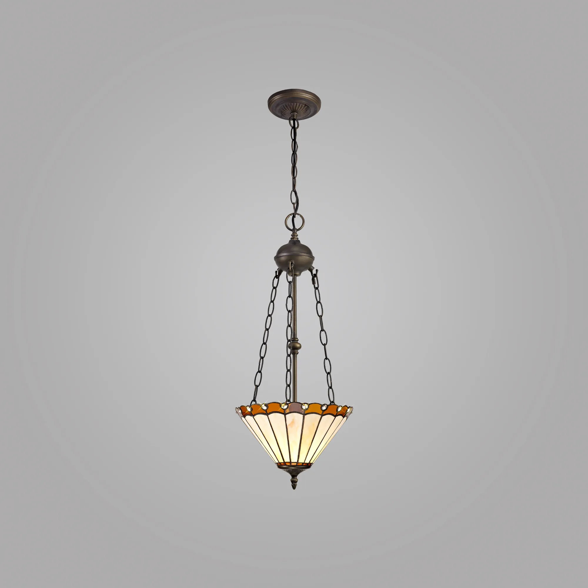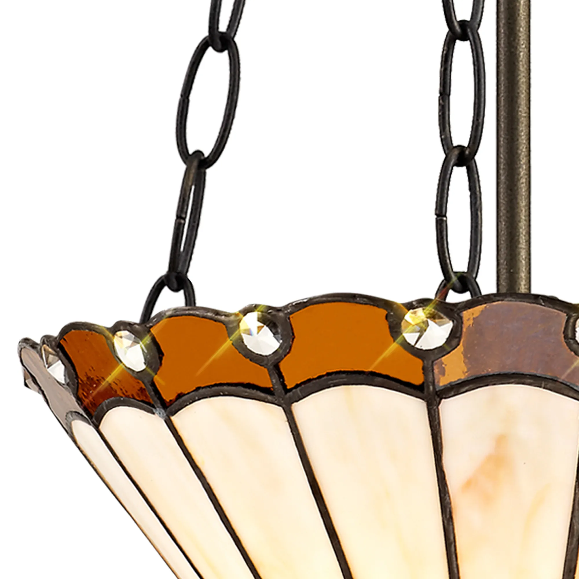 OTHER Tedera 2 Light Uplighter Pendant E27 With 30cm Tiffany Shade, Amber/Cream/Crystal/Aged Antique Brass