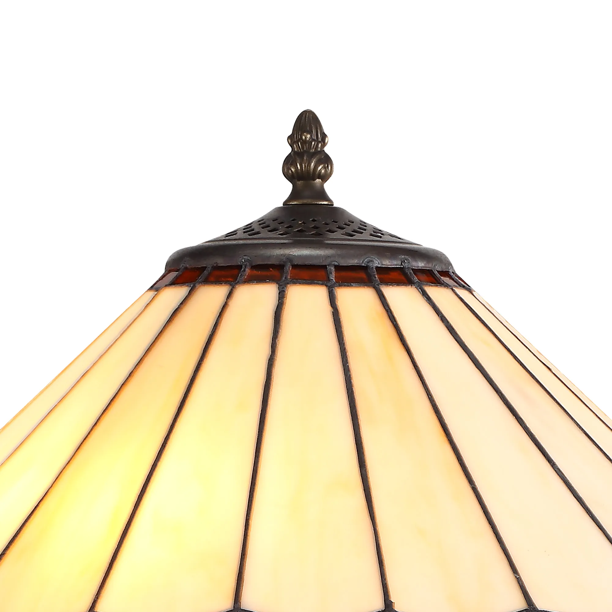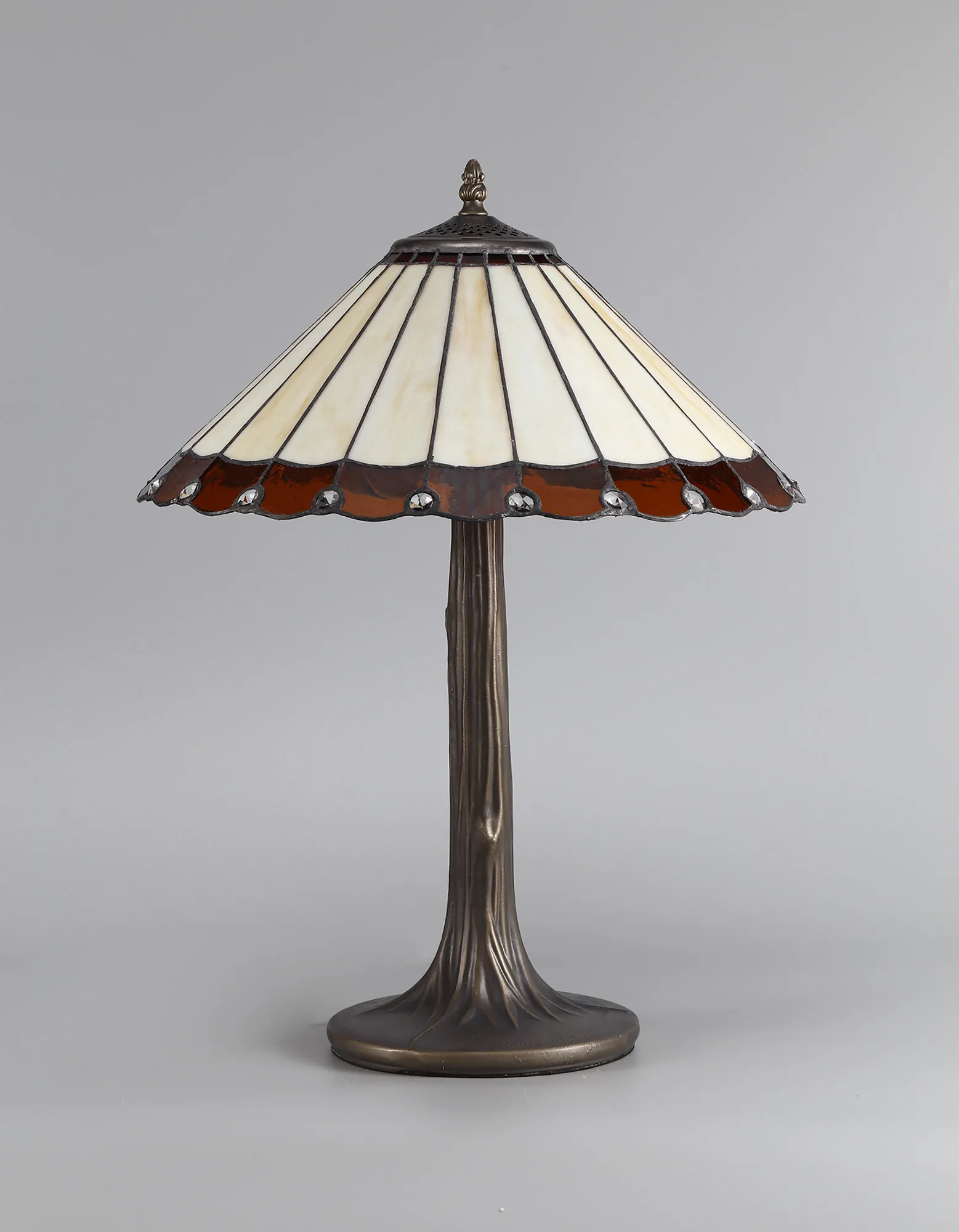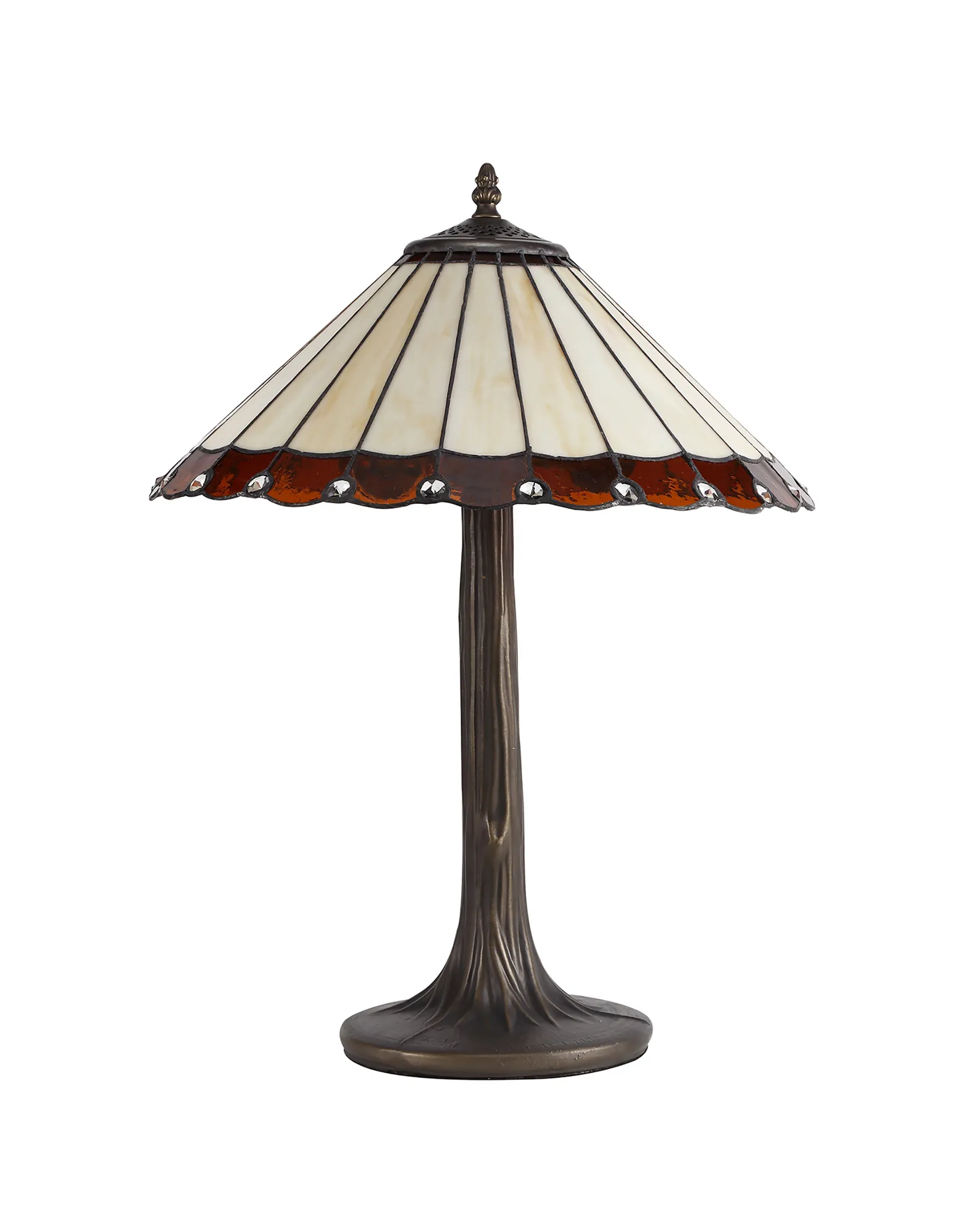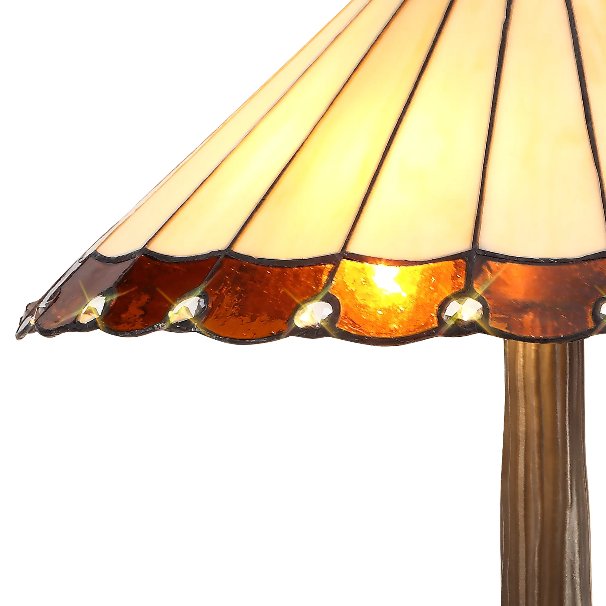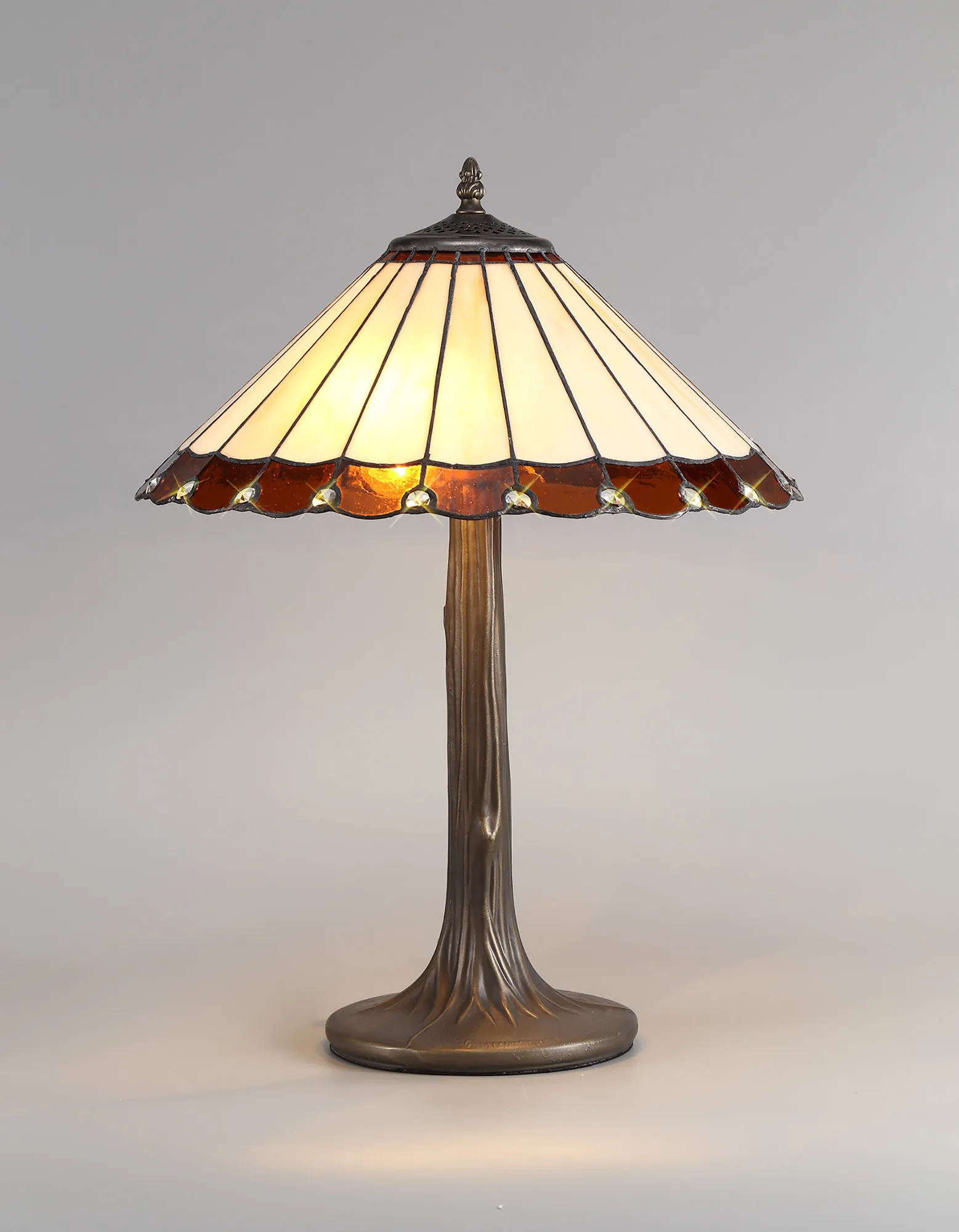 OTHER Tedera 2 Light Tree Like Table Lamp E27 With 40cm Tiffany Shade, Amber/Cream/Crystal/Aged Antique Brass