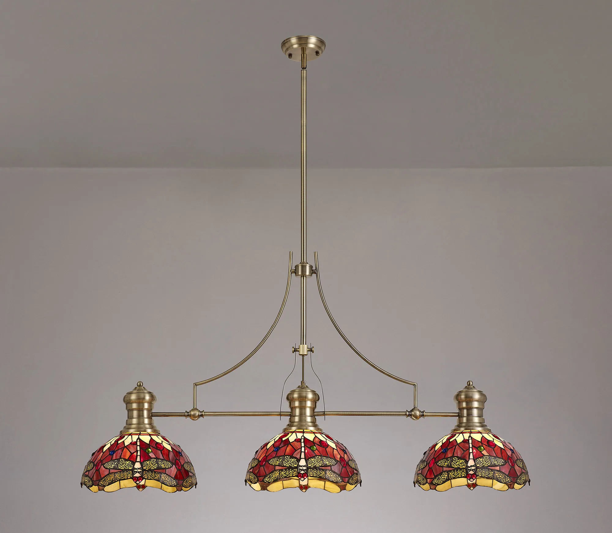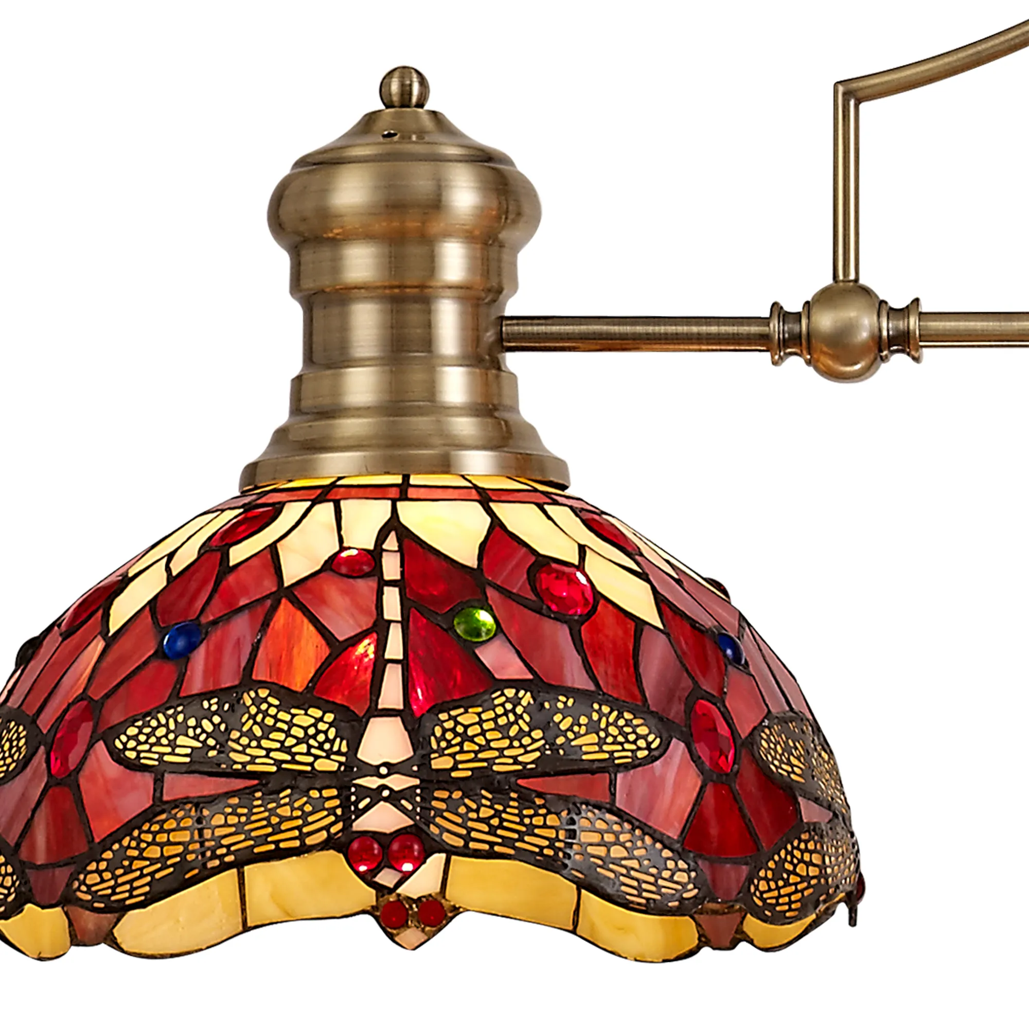 Gambassi's stunning Tiffany glass design features the classic dragonfly form, effortlessly fashioned into the overall mosaic collection of Tiffany glass pieces. Reinterpreting an old-fashioned concept, additional crystal pieces have been inserted into the glass shades providing a touch of modern sparkle and elegance. Available in two colour finishes this beautiful pattern is featured across a comprehensive variety of lighting solutions.