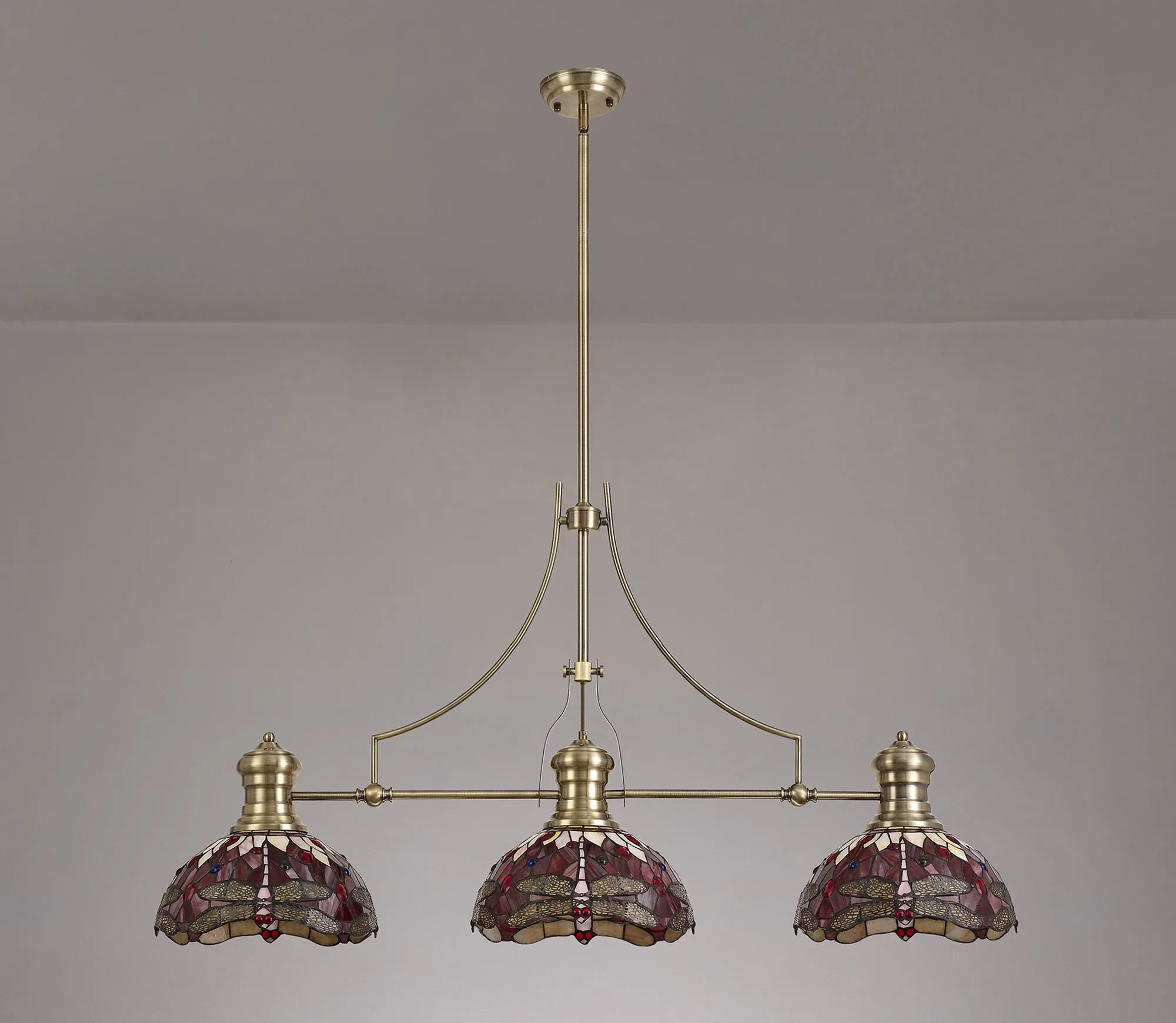 Gambassi 3 Light Linear Pendant E27 With 30cm Tiffany Shade, Matt Black, Purple, Pink, Crystal