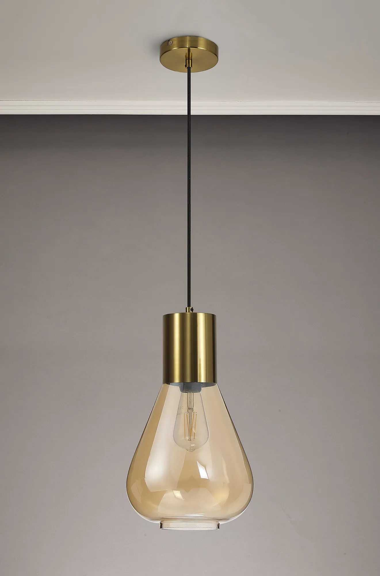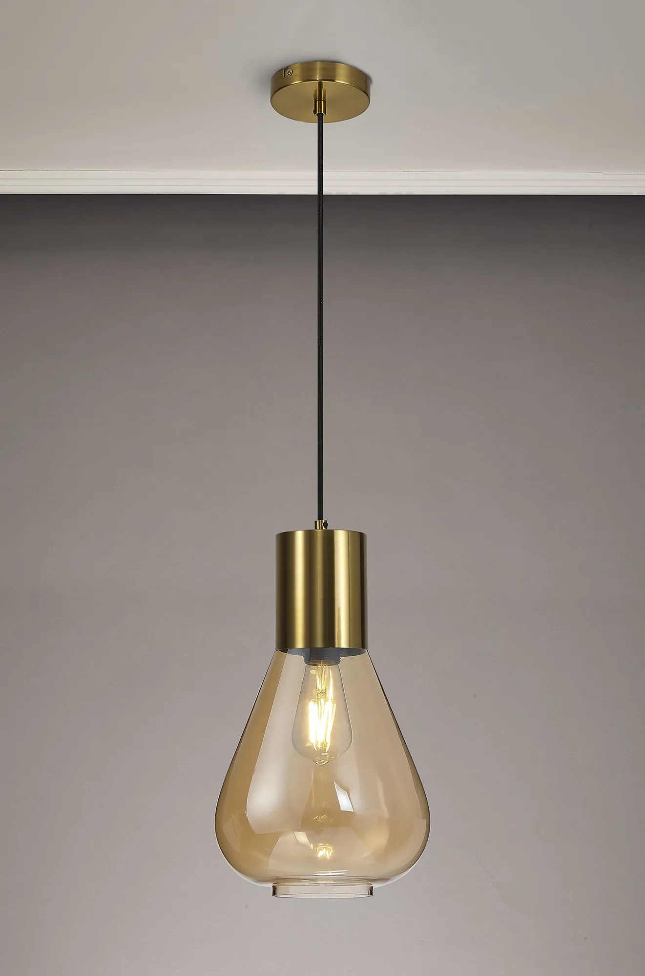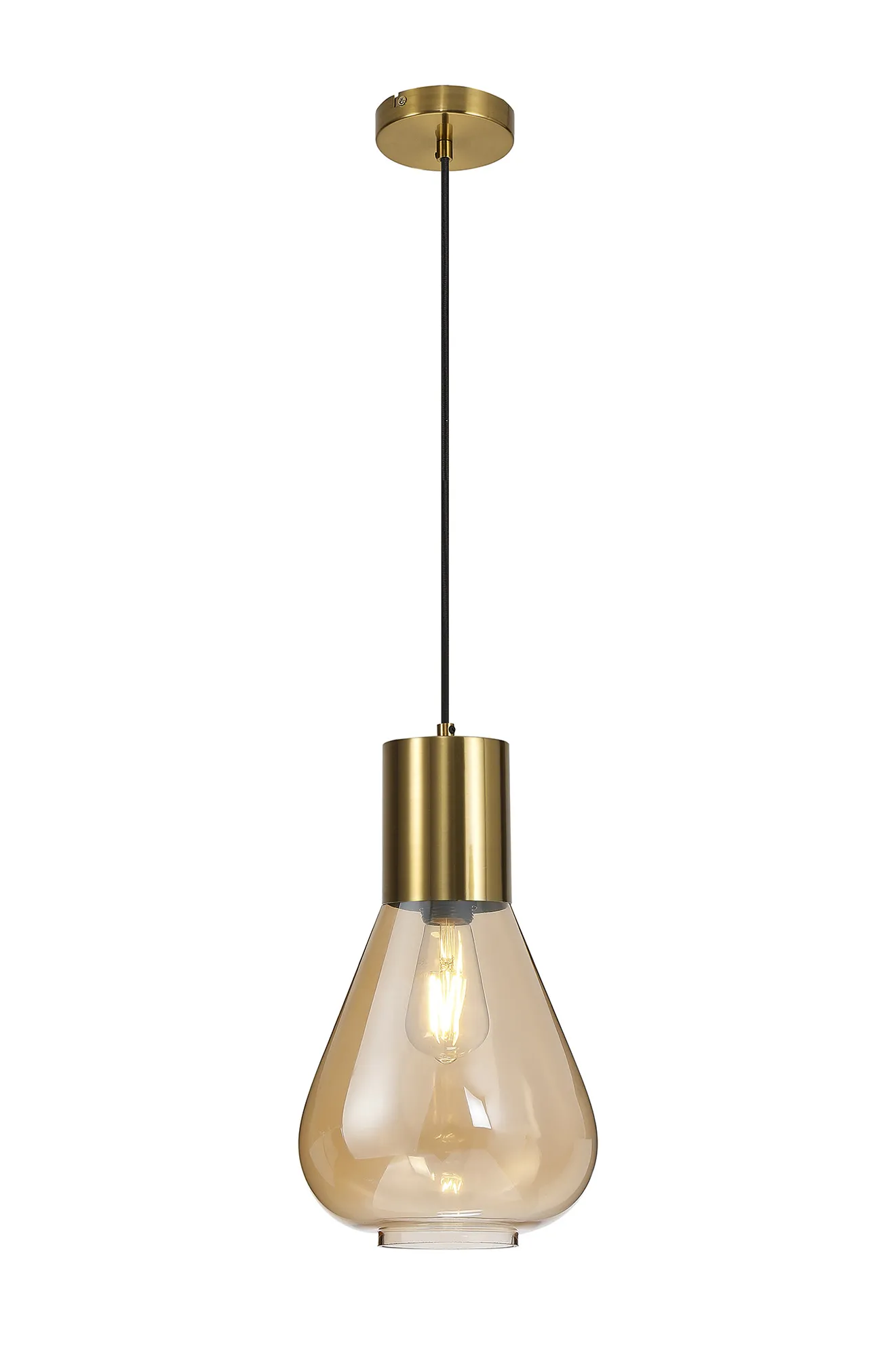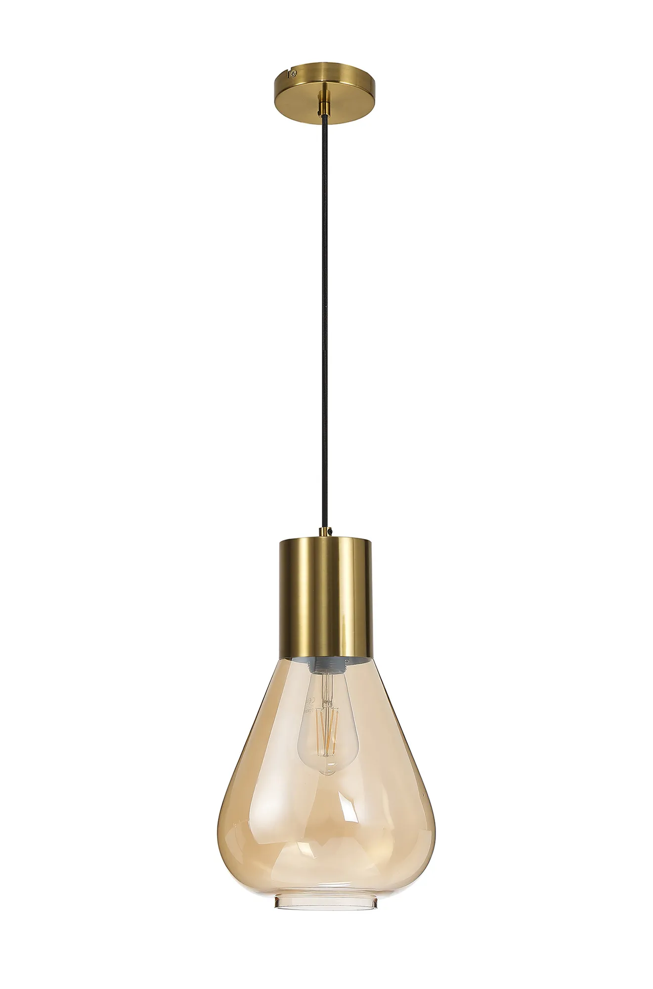 OTHER Piombino Narrow Pendant, 1 x E27, Aged Brass/Amber Glass