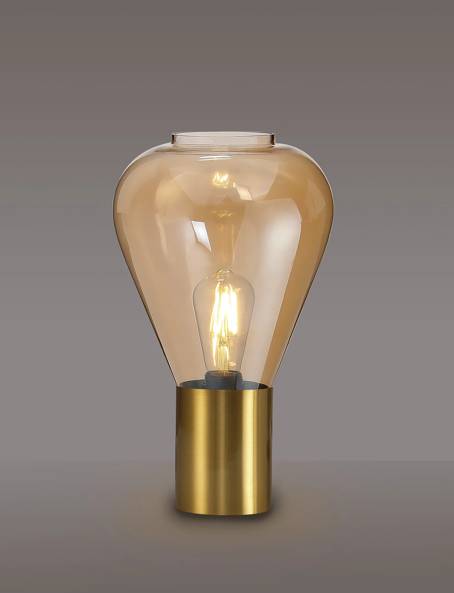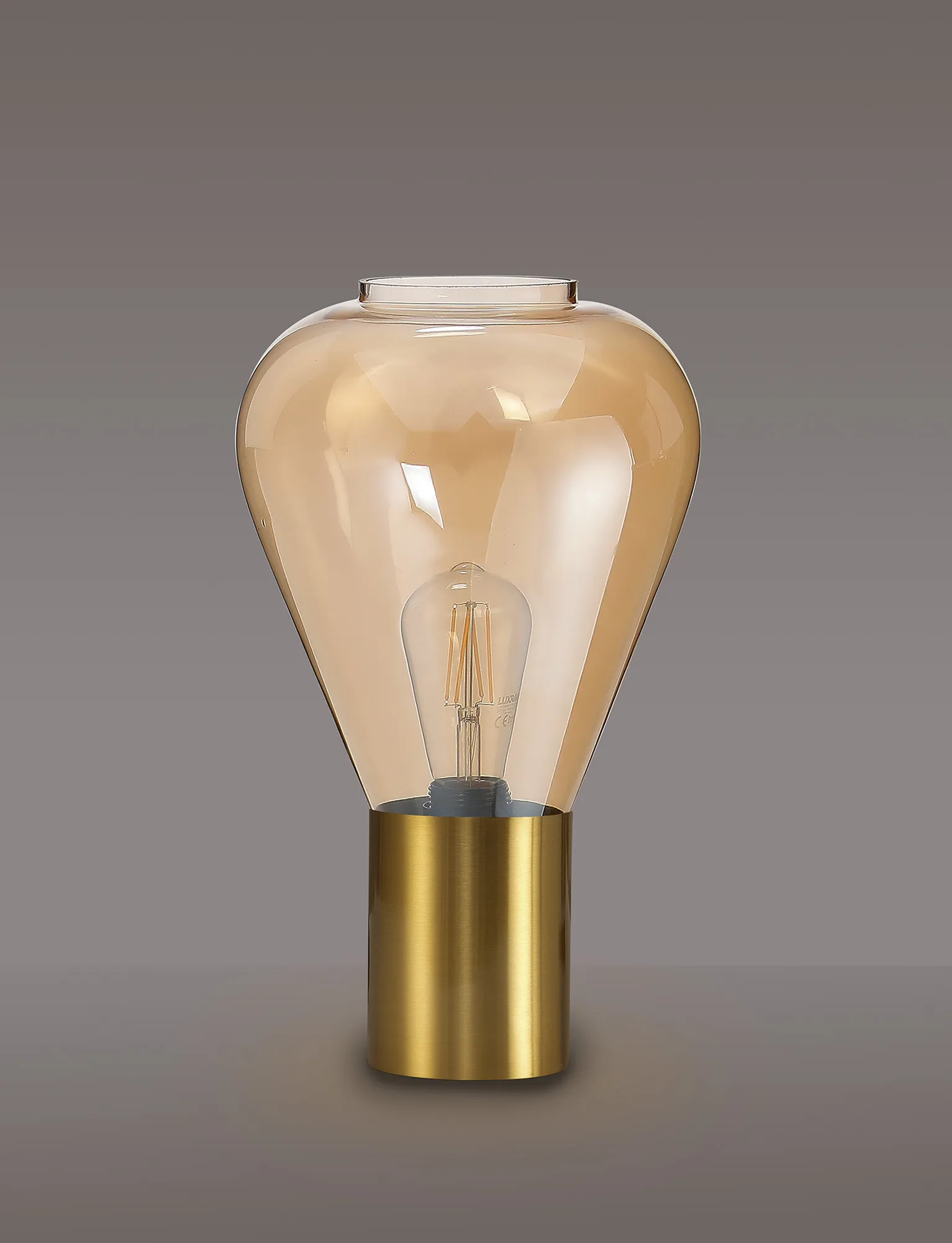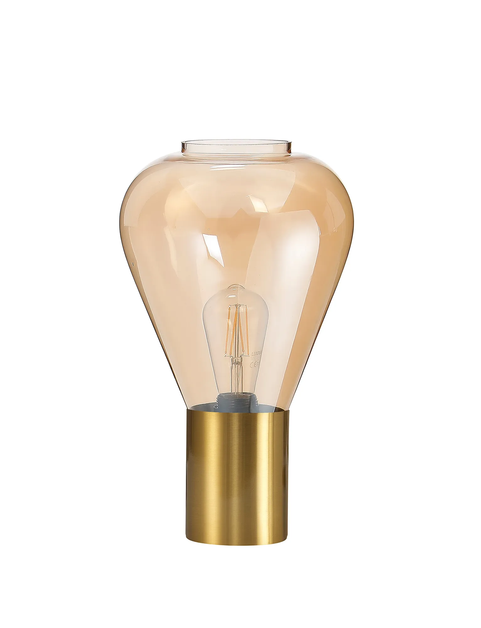 OTHER Piombino Narrow Table Lamp, 1 x E27, Aged Brass/Amber Glass
