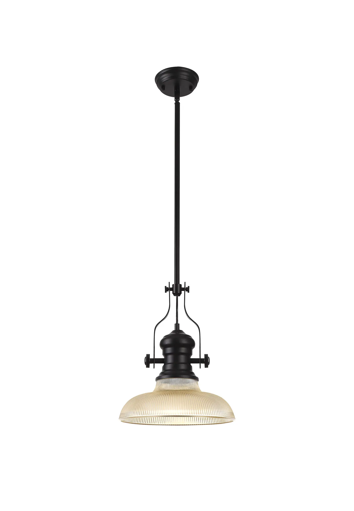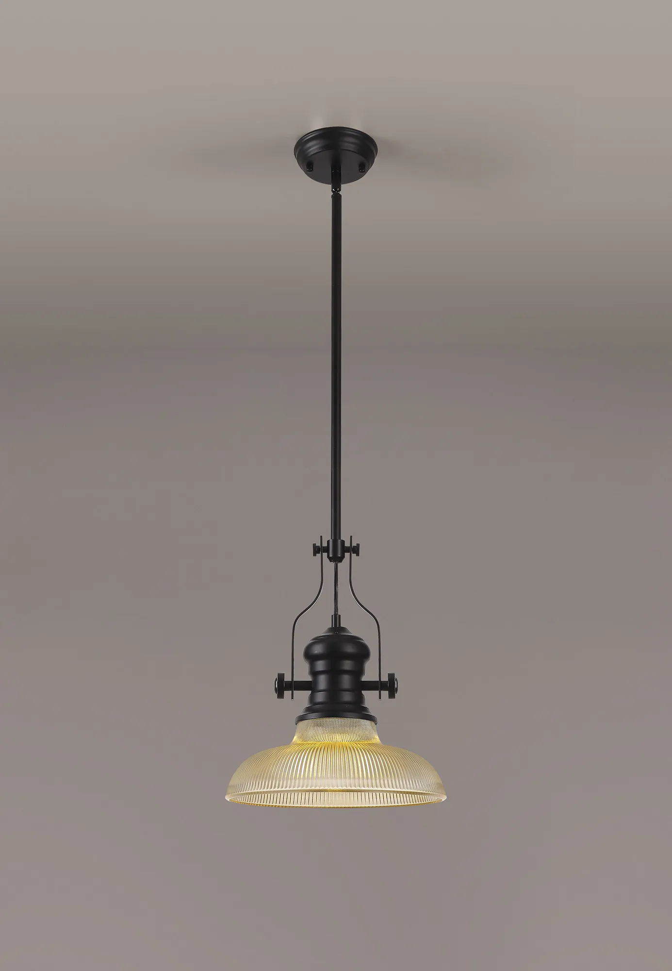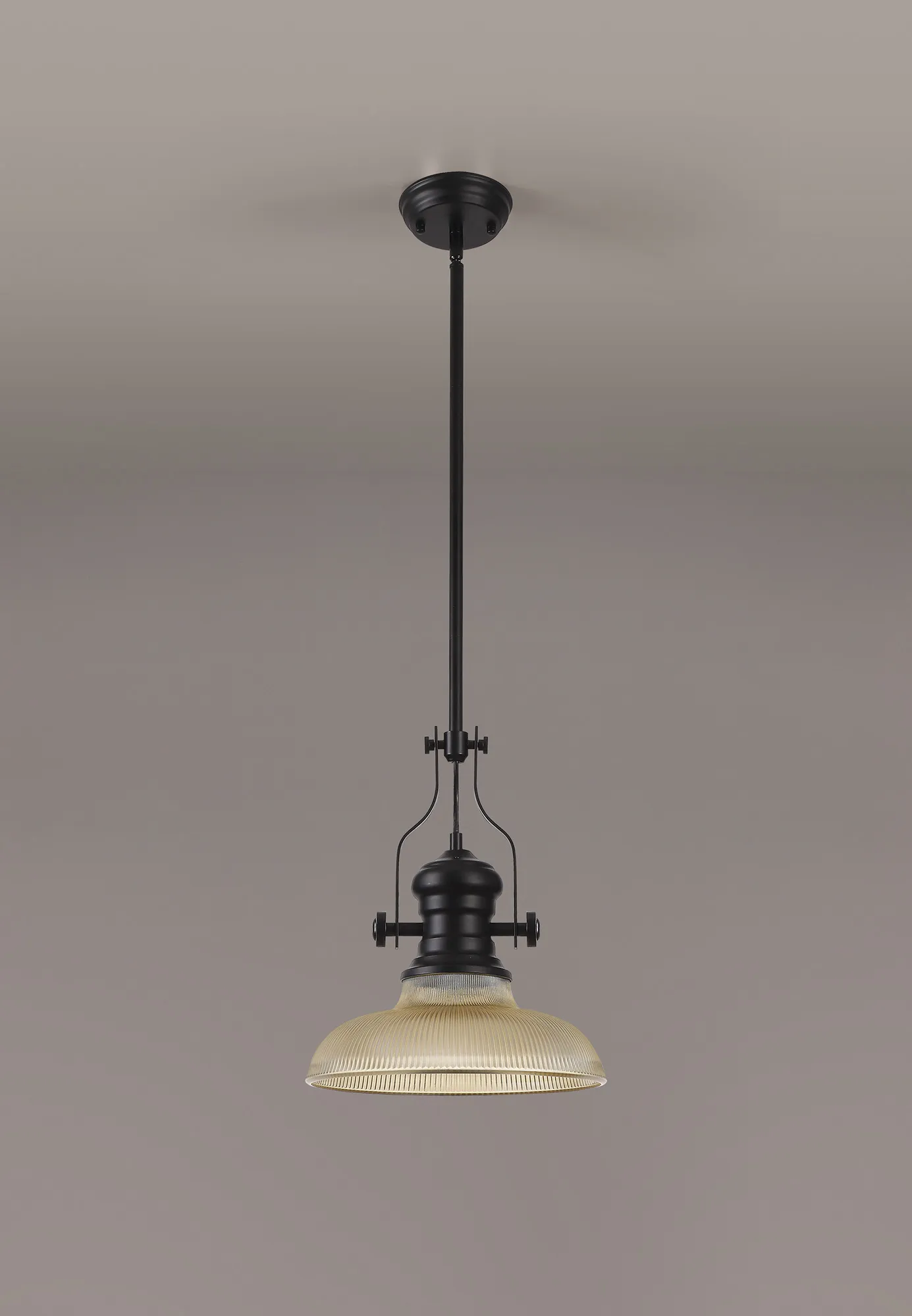 OTHER Montale 1 Light Multi Height Pendant E27 With 30cm Round Glass Shade, Matt Black/Amber