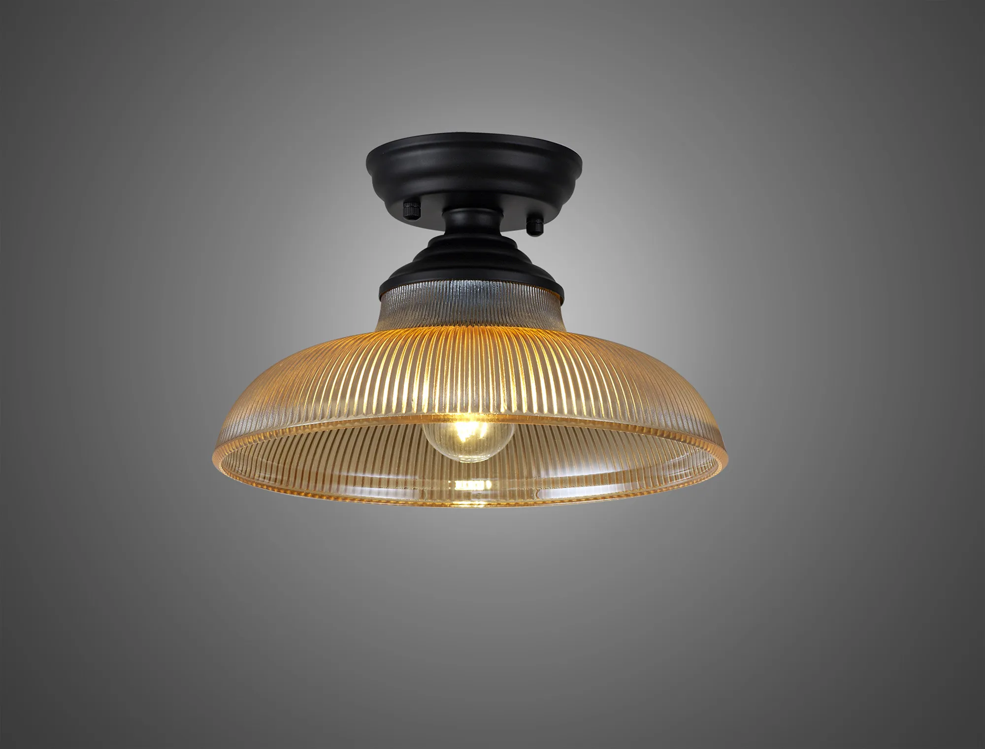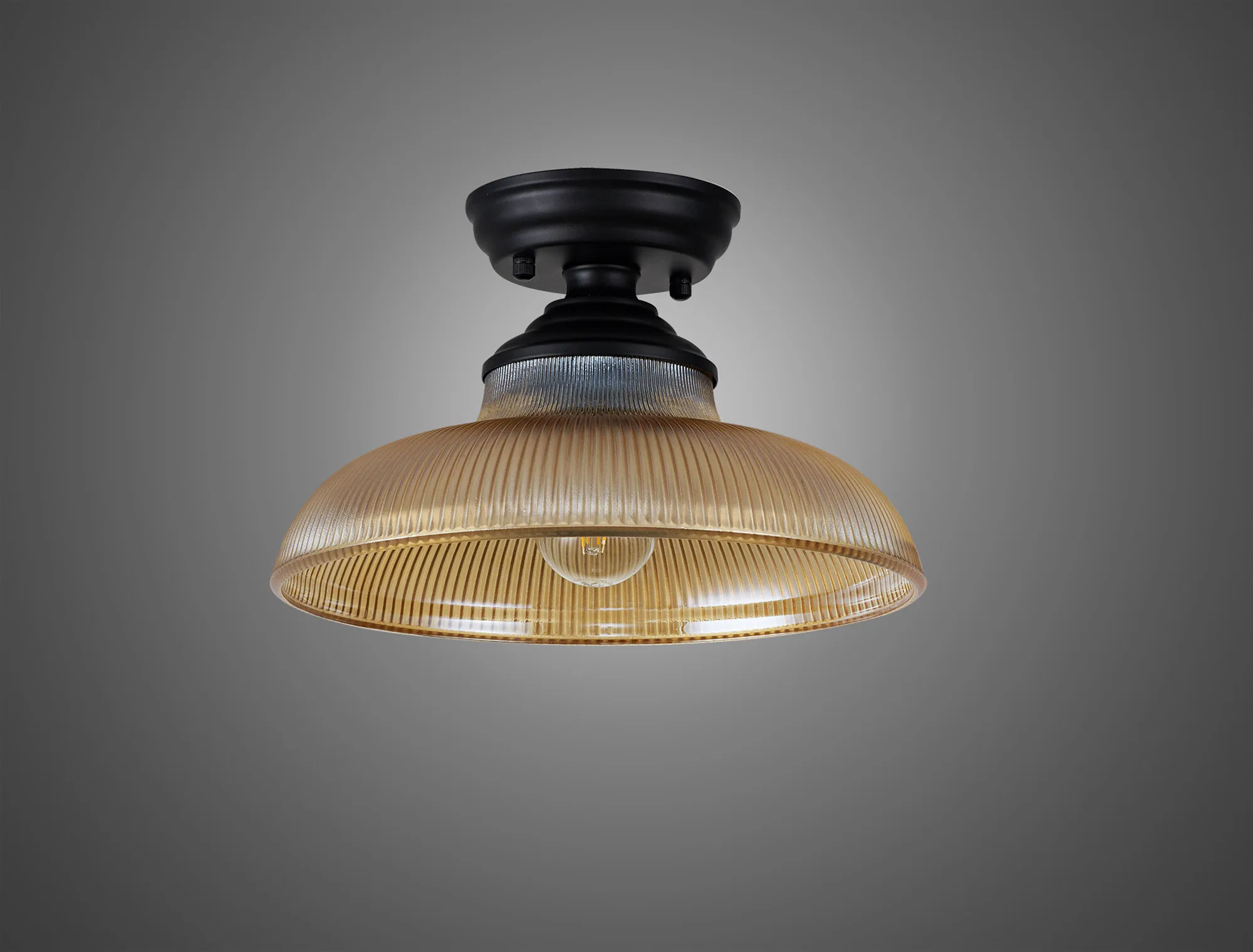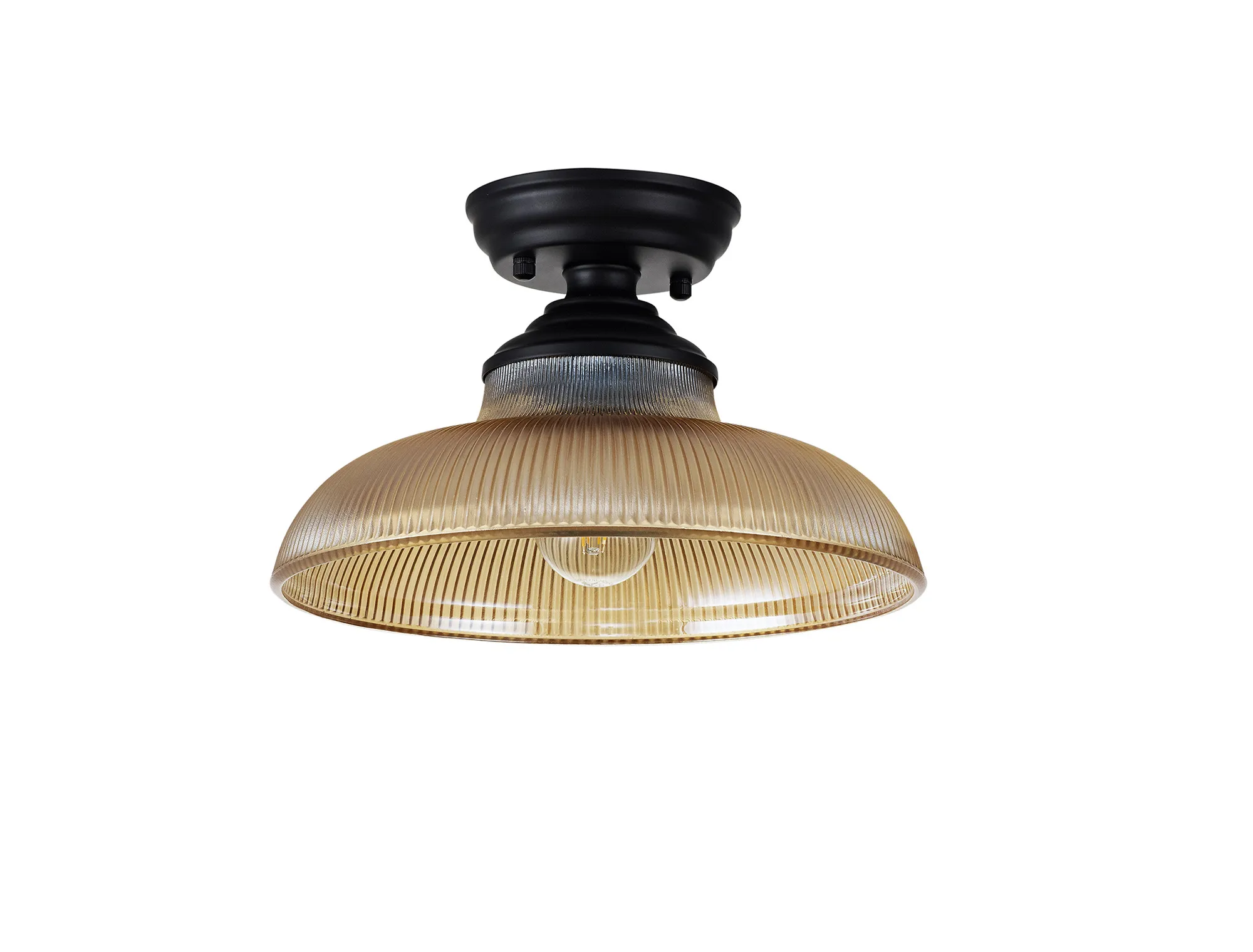 OTHER Lecco 1 Light Flush Ceiling E27 With Round 30cm Glass Shade Matt Black/Amber