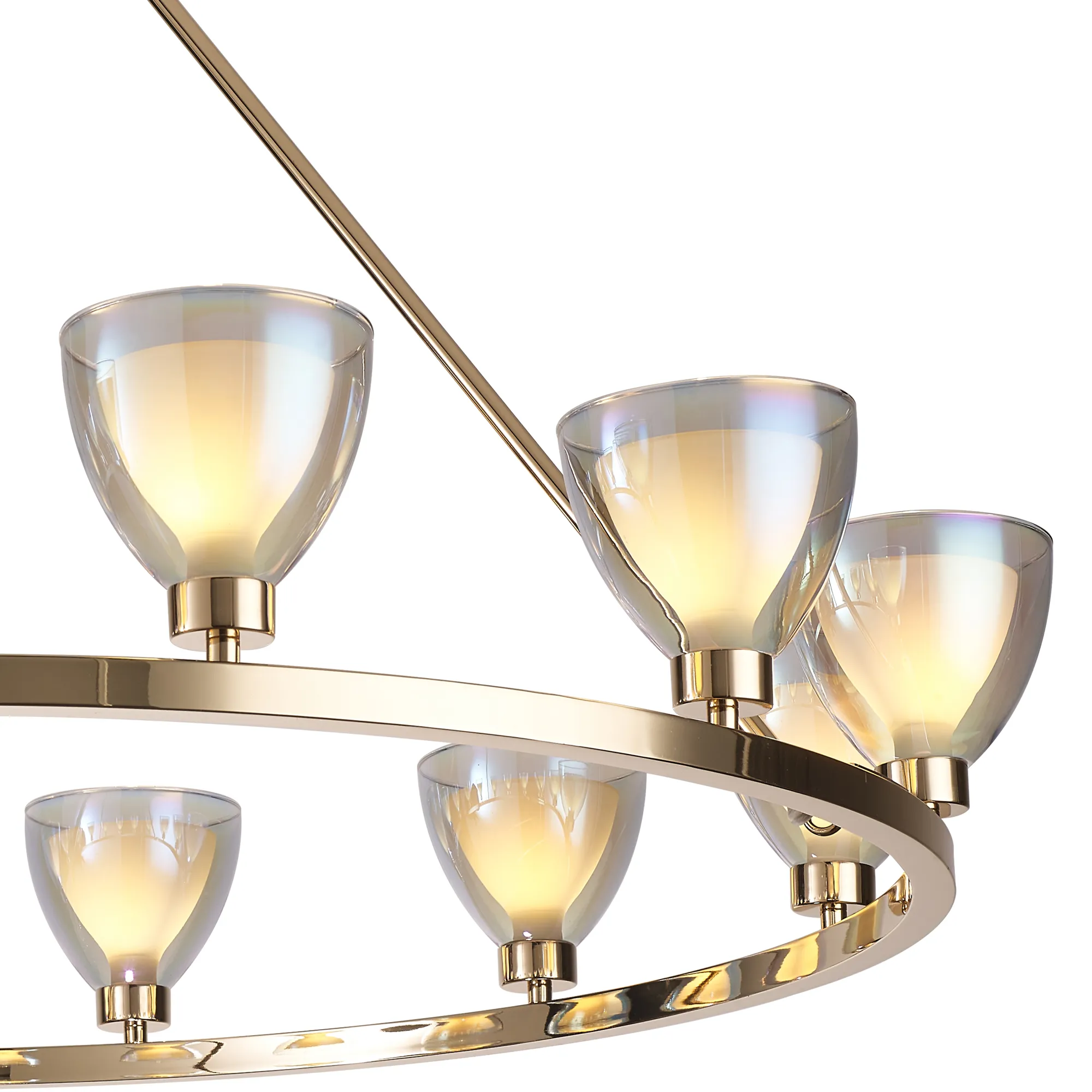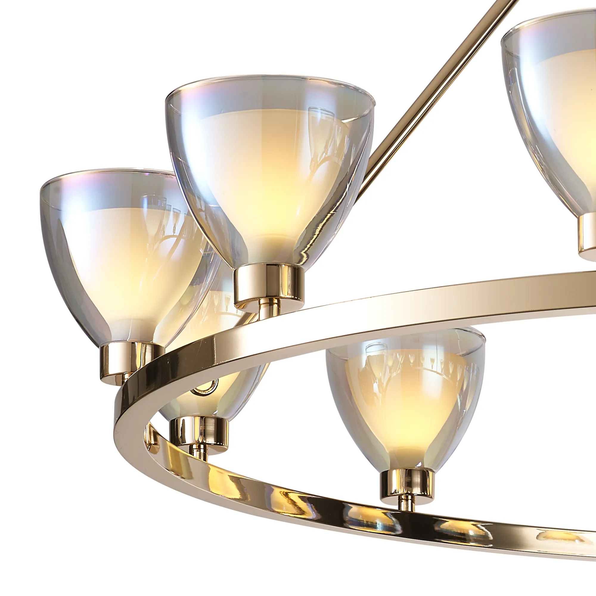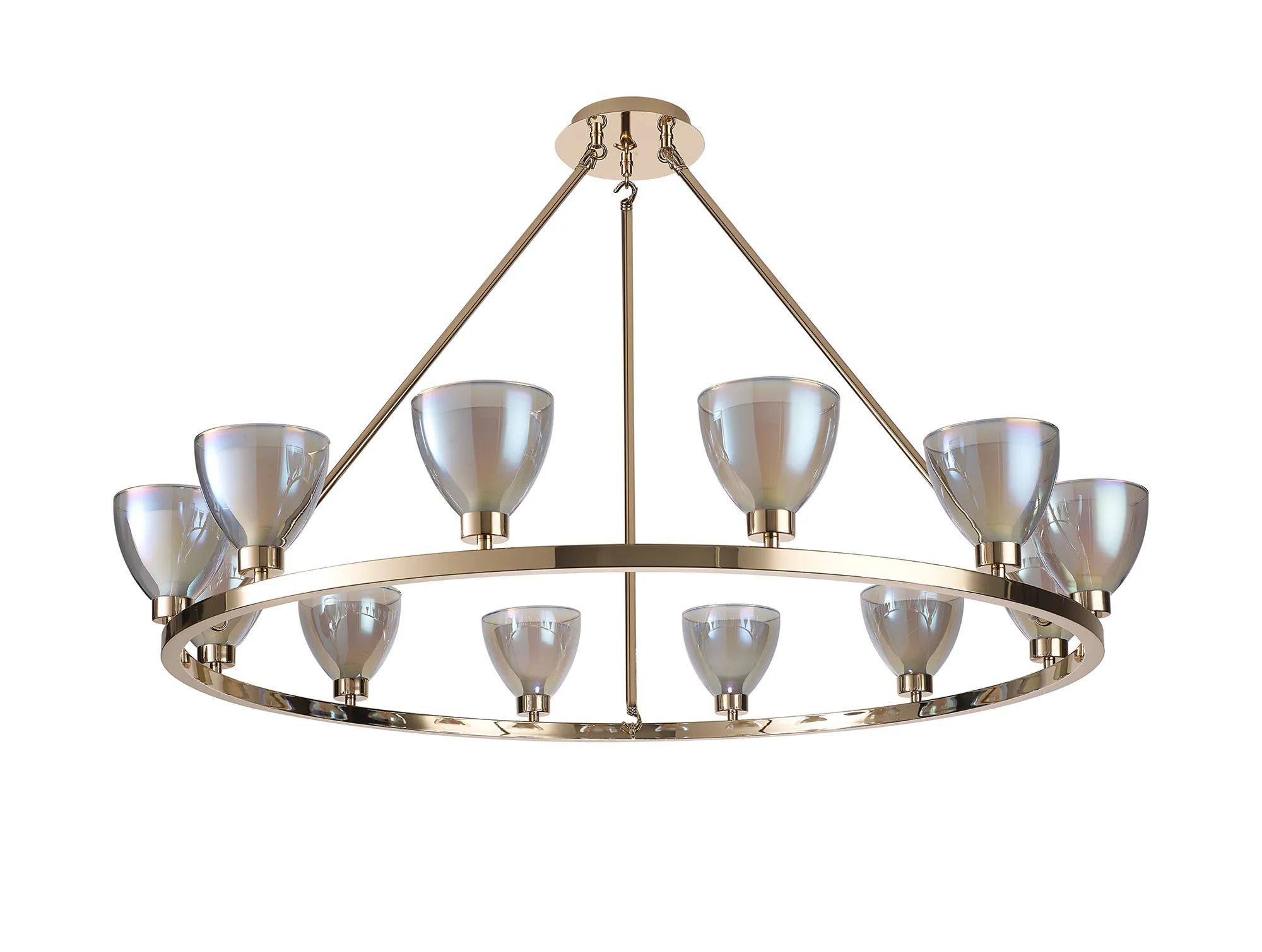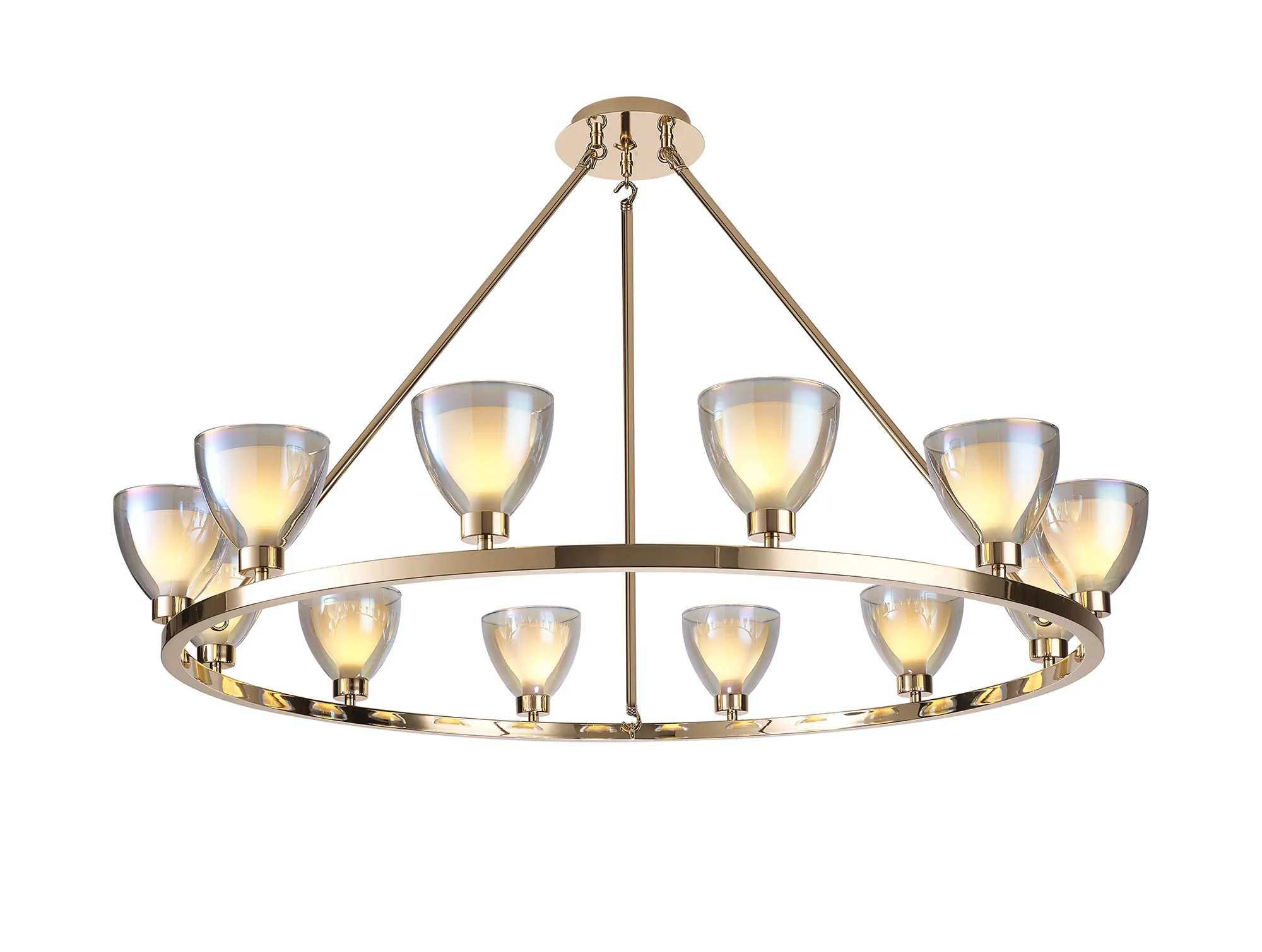 Giglio 47cm 45cm Round Flush With Curved Cone Glass (U), 5 Light G9, French Gold/Iridescent/Opal/Matt Gold