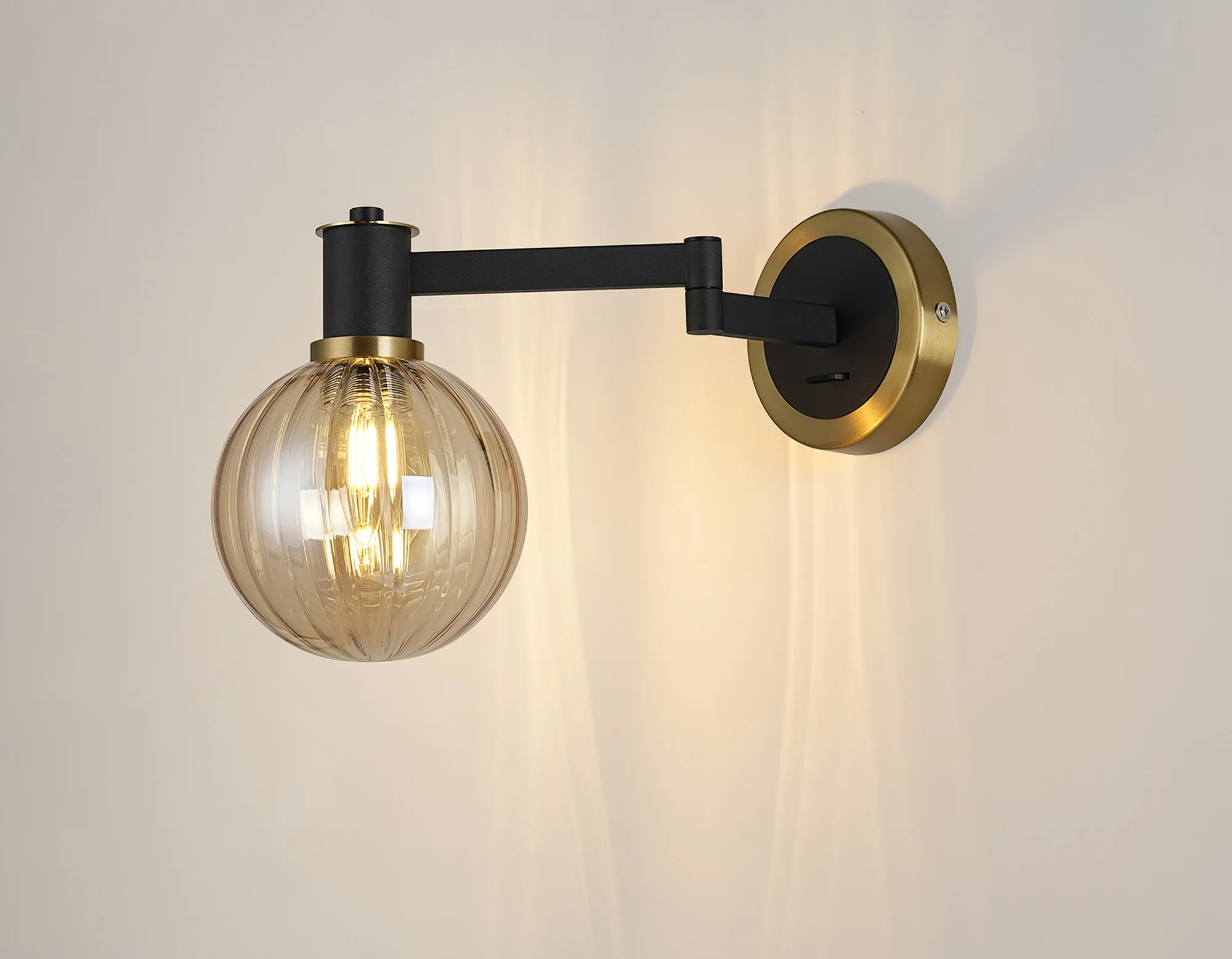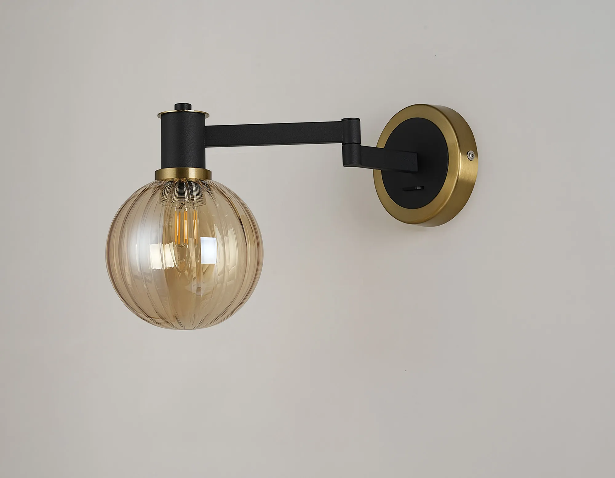 OTHER Arzignano Adjustable Swing Arm Wall x 1 x E14 Brass/Satin Black/Amber Plated Round Segment Glass