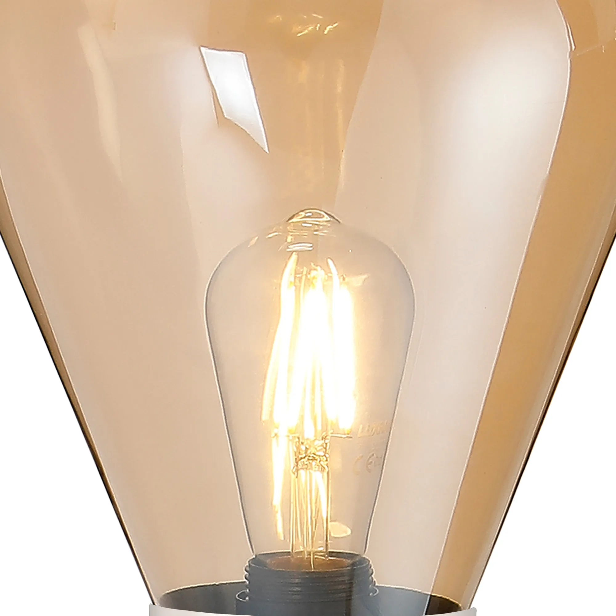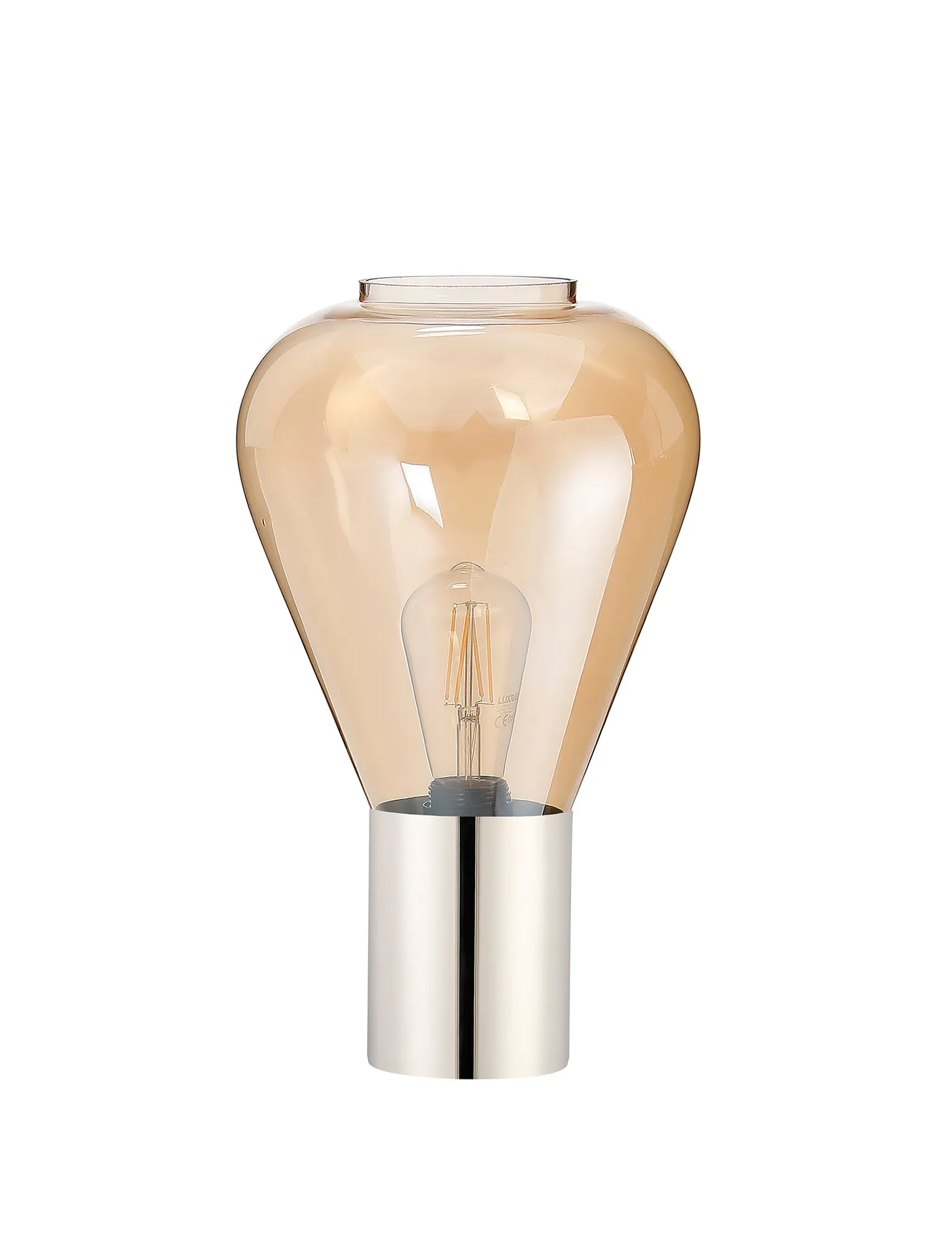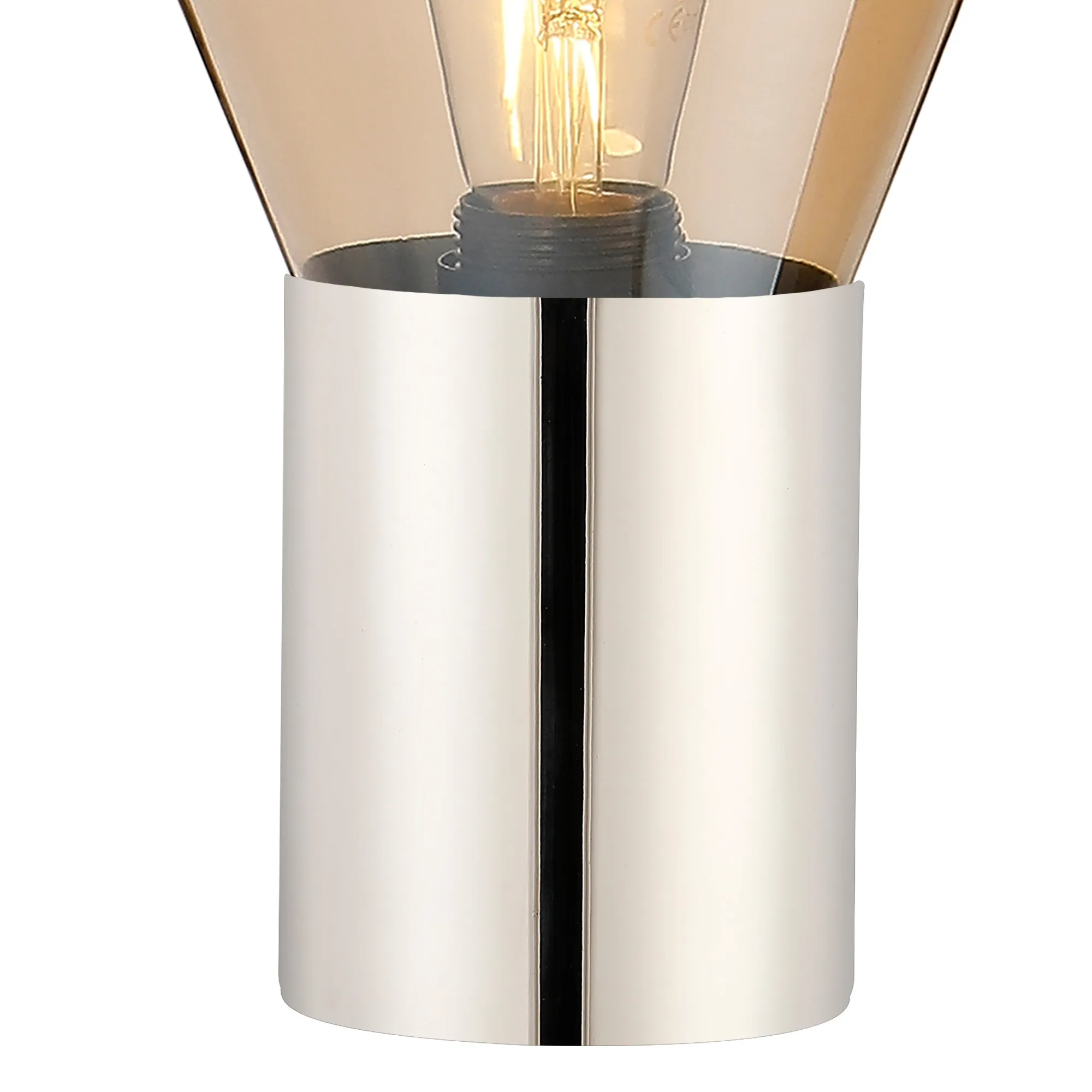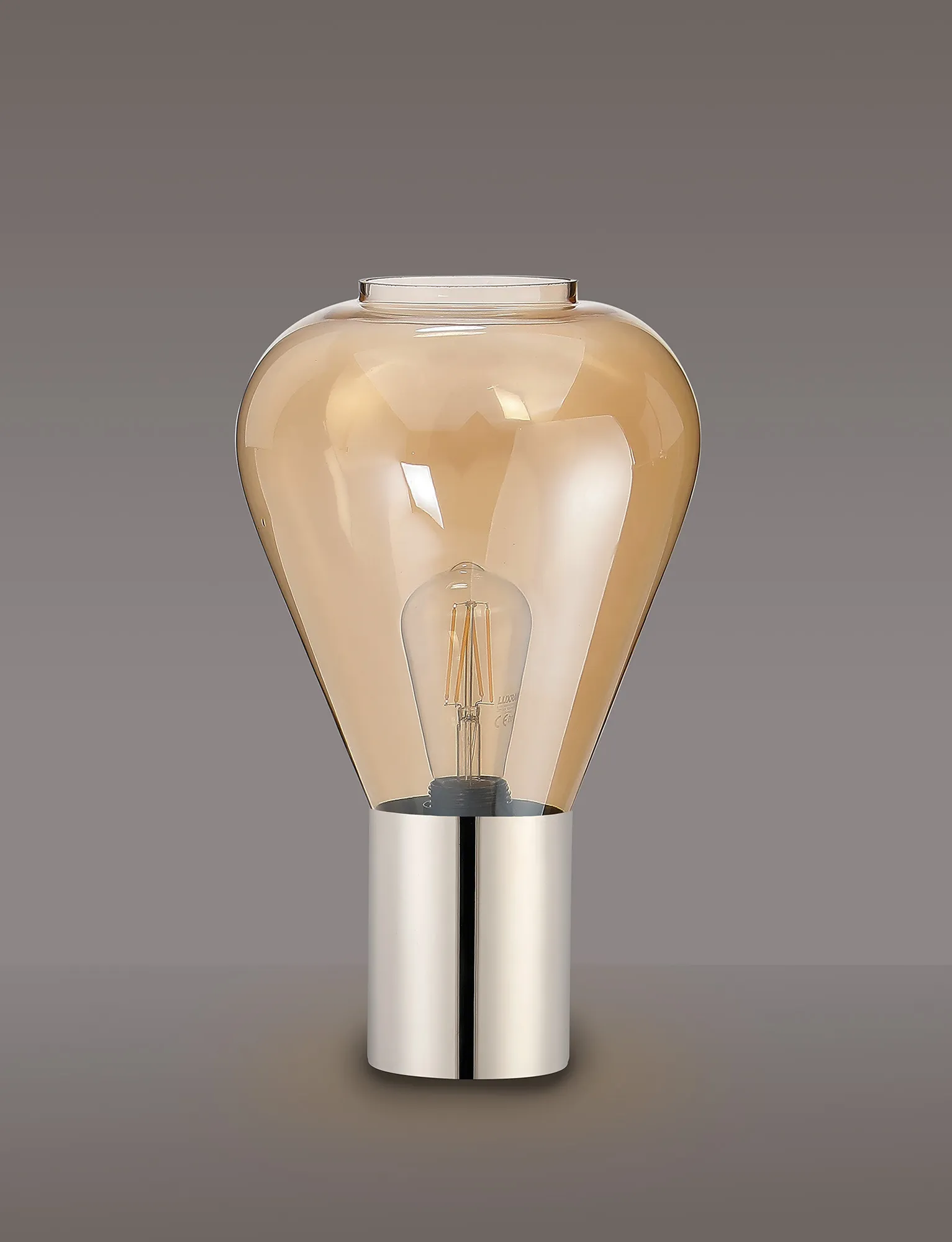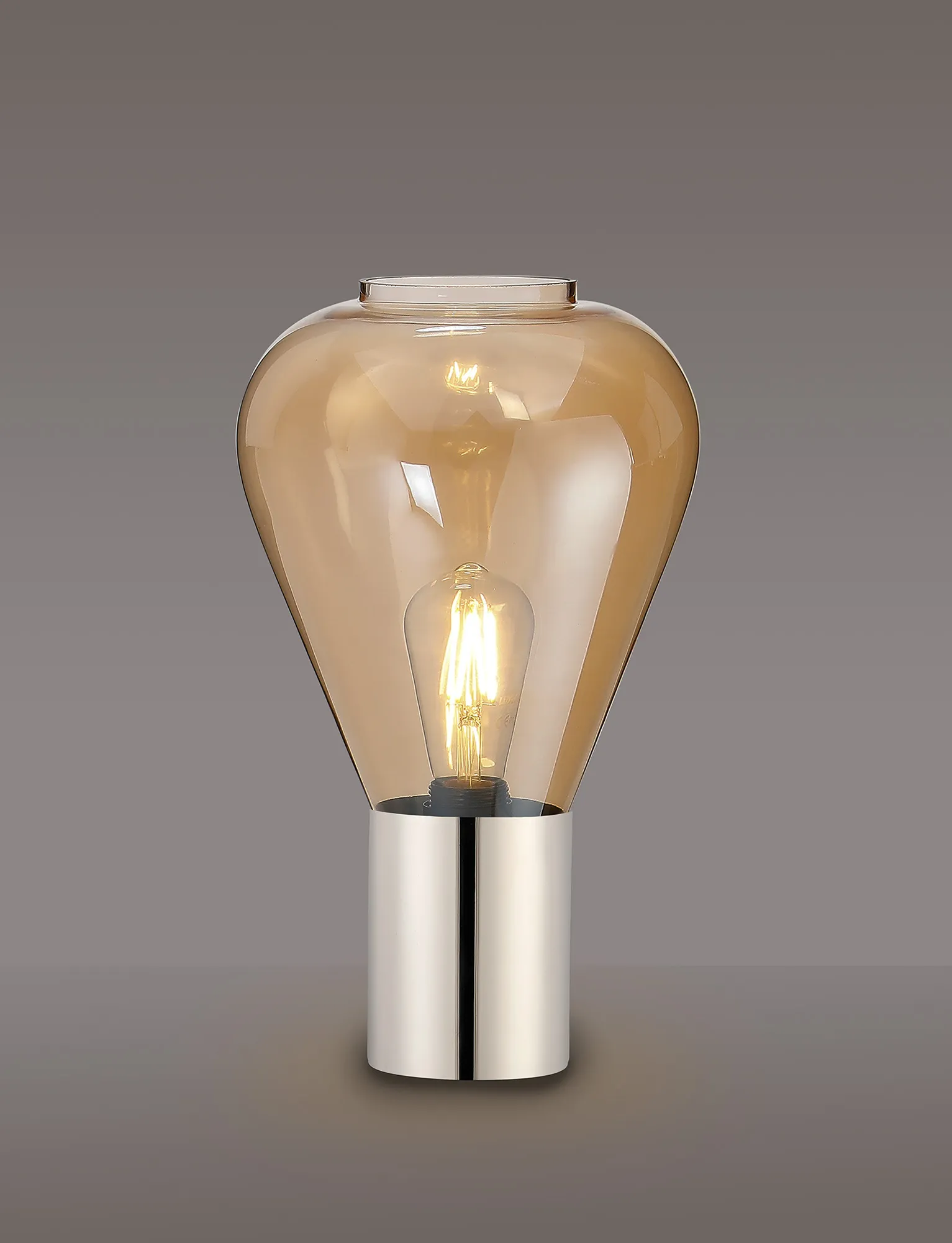 OTHER Piombino Table Lamp With Narrow Glass, 1 x E27, Polished Nickel/Amber/Dark Grey Braided Cable