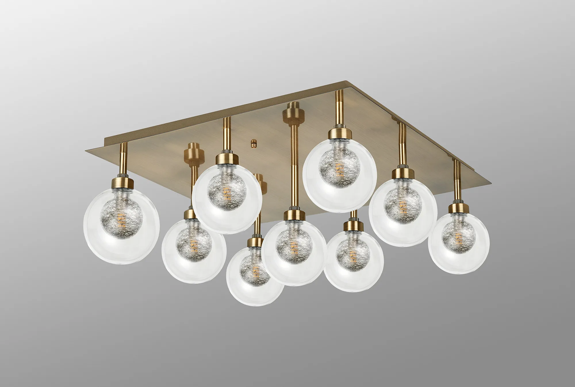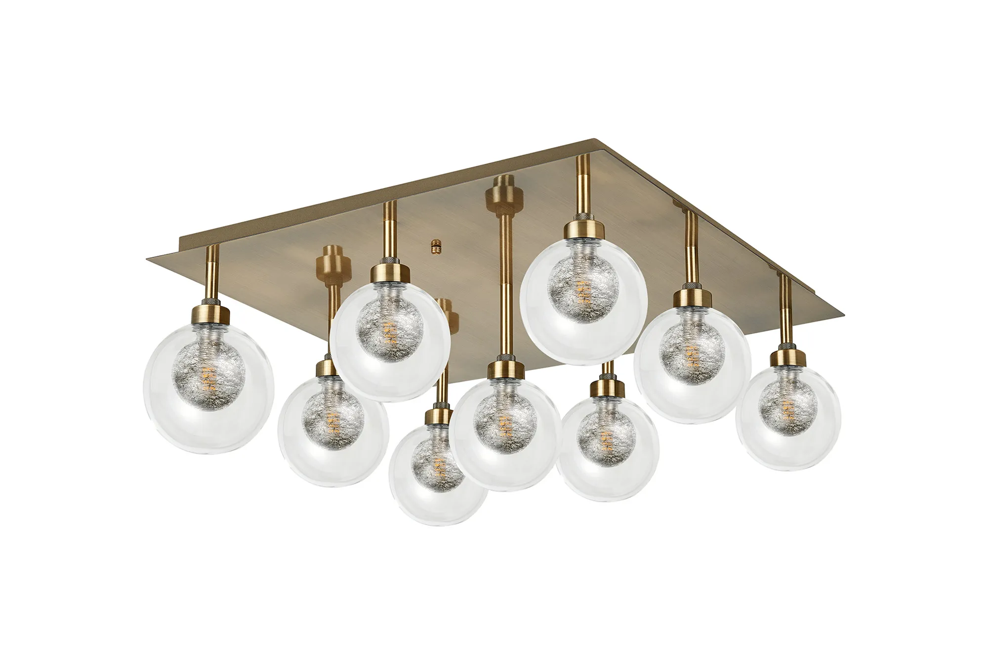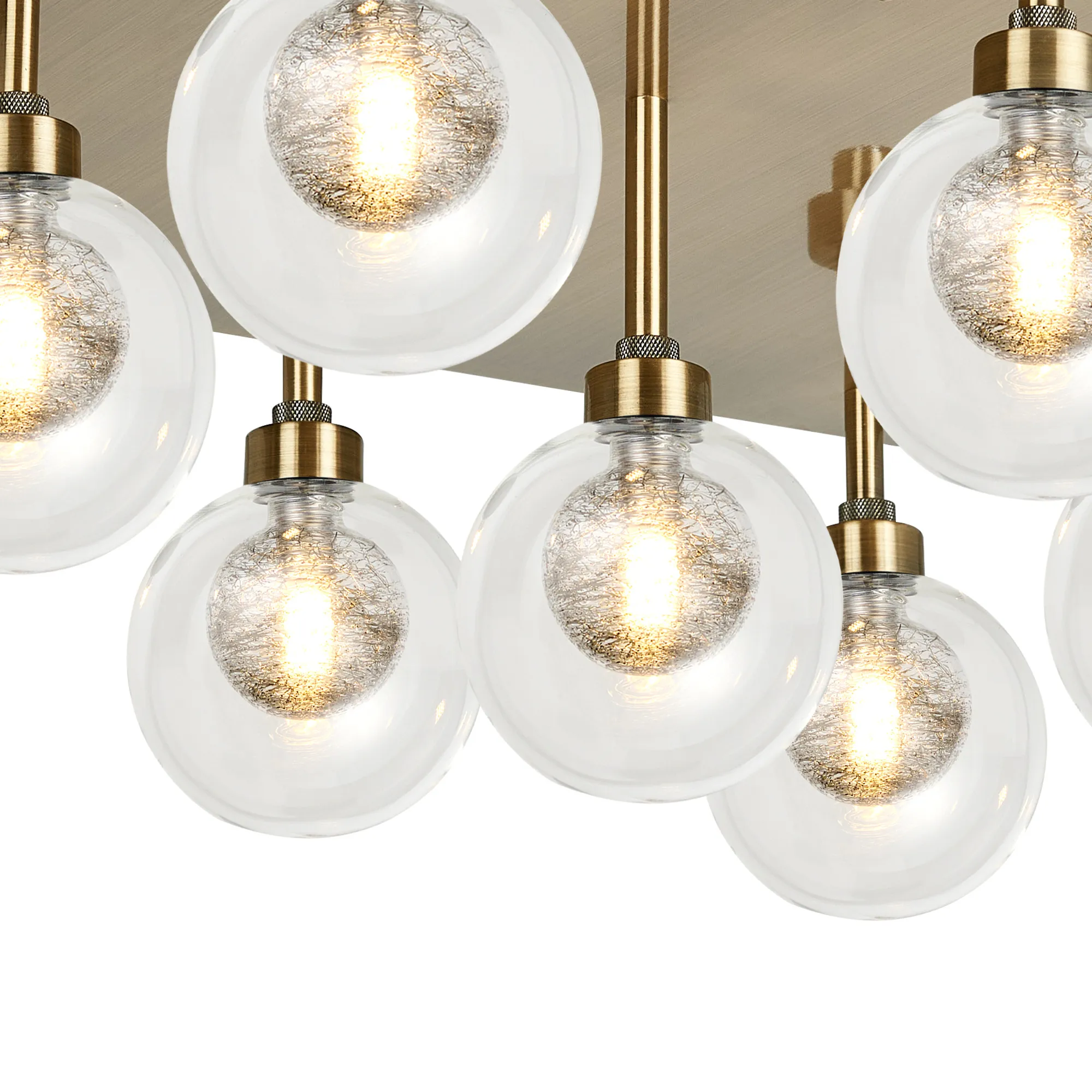 Giglio Crossed Arm Semi Flush With Round Clear With Inner Black Globe (AA), 8 Light G9, Antique Brass/Black