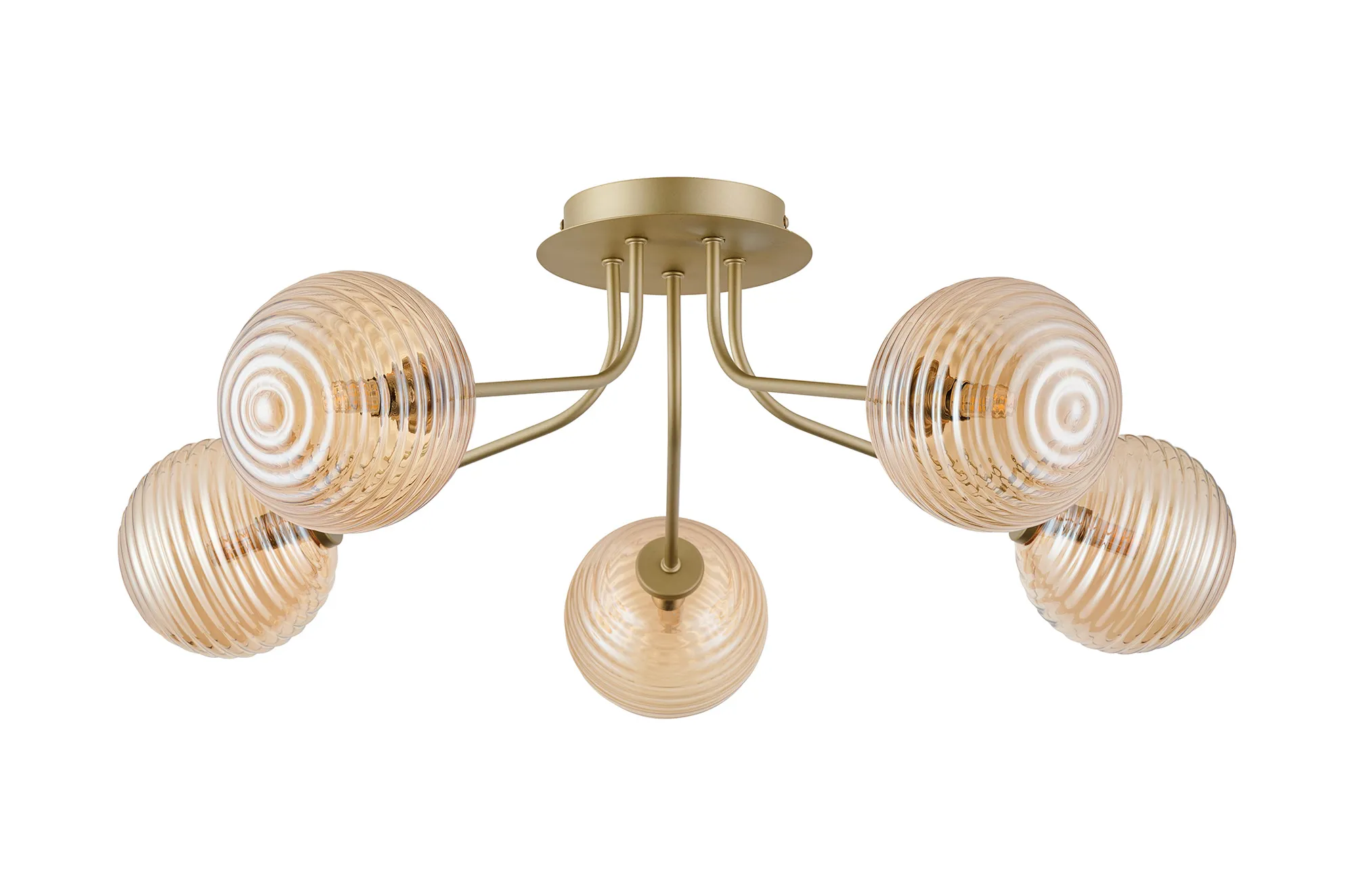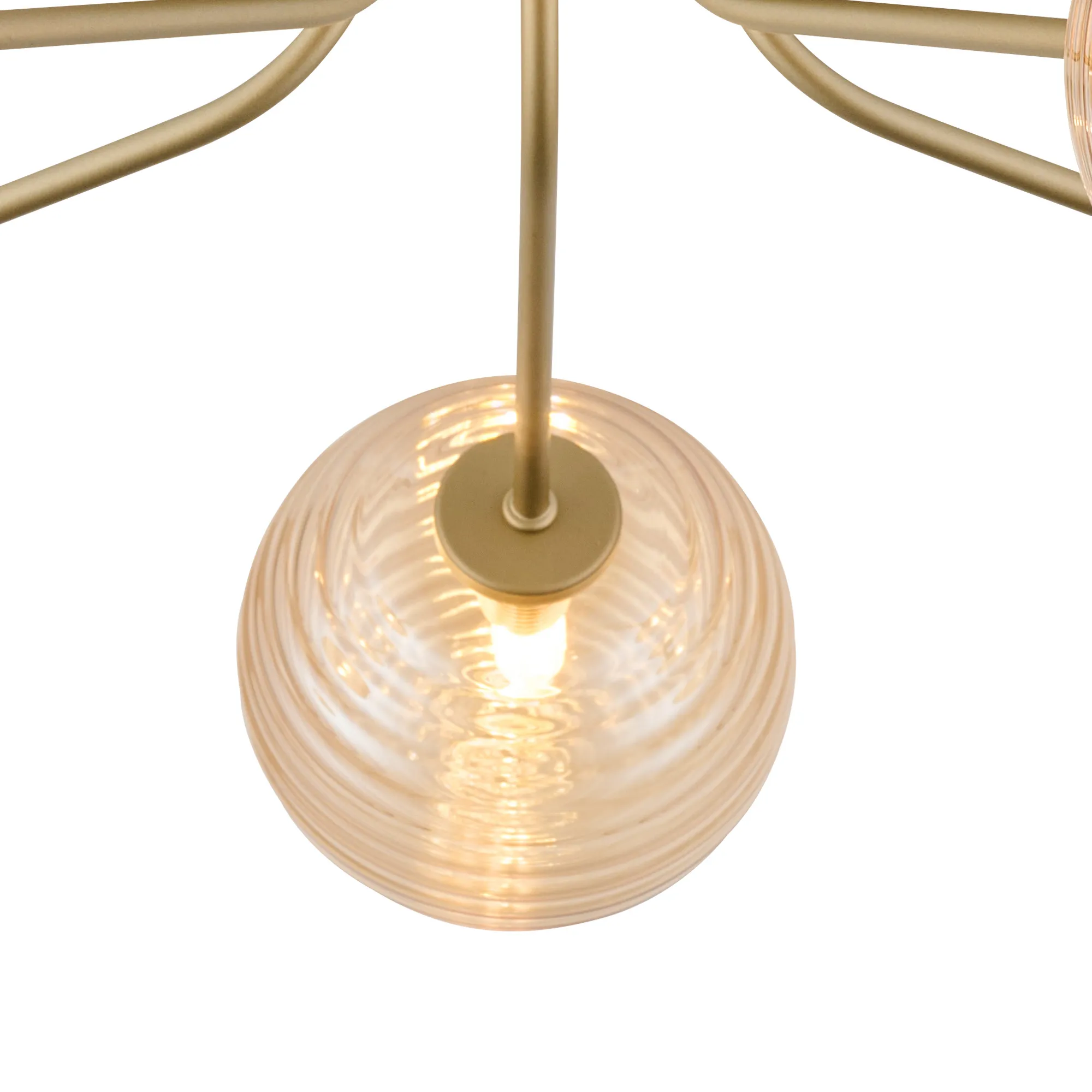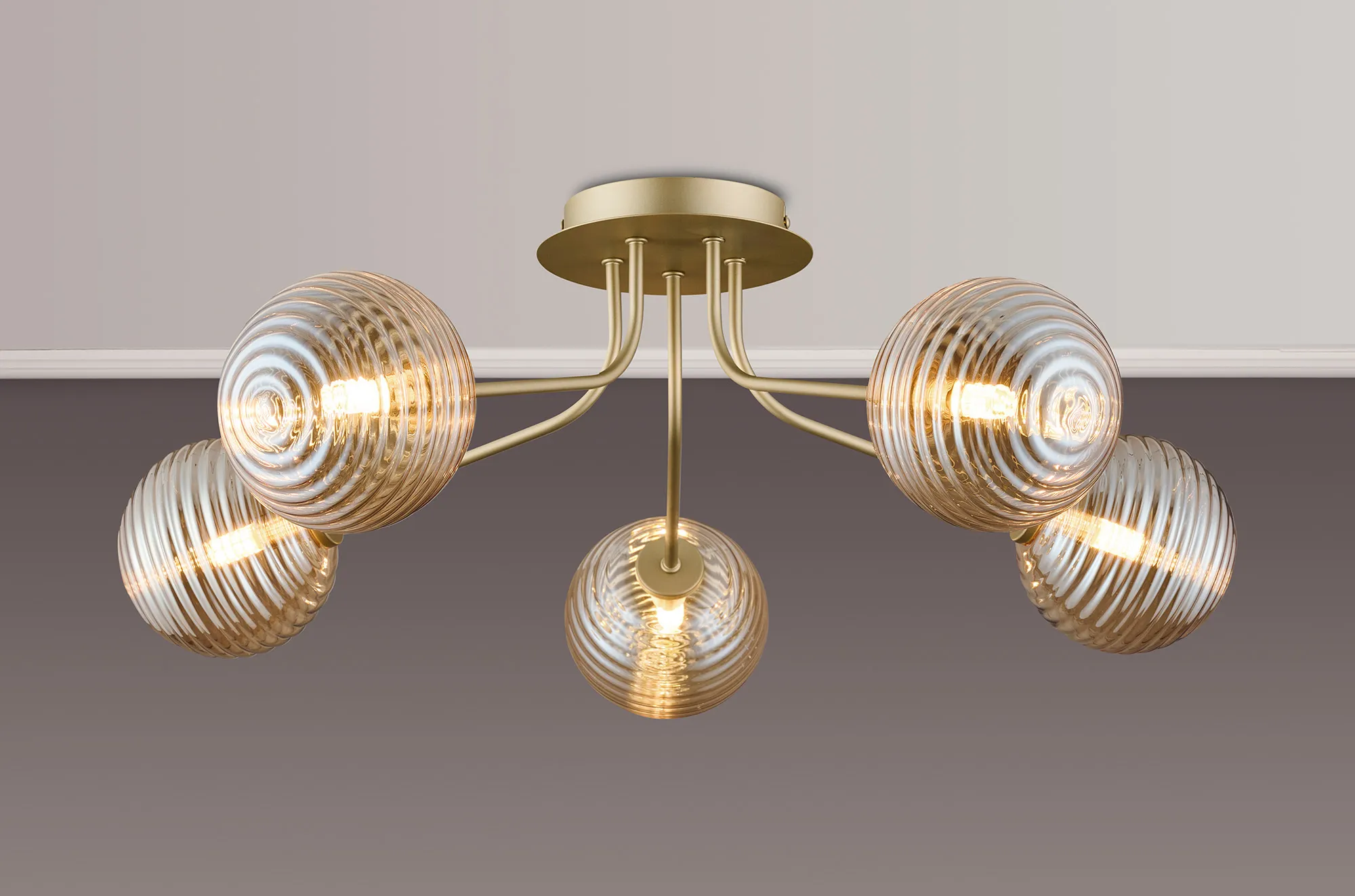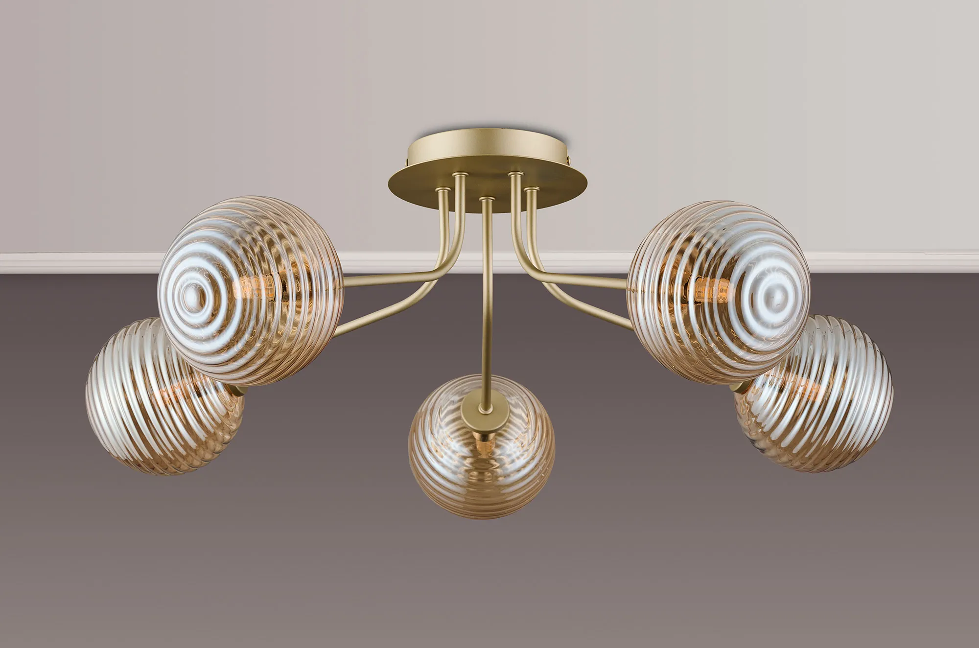 OTHER Fonte Semi Flush Light, 5 Light G9, Light Painted Beige/Amber Ribbed Round Glass Shade