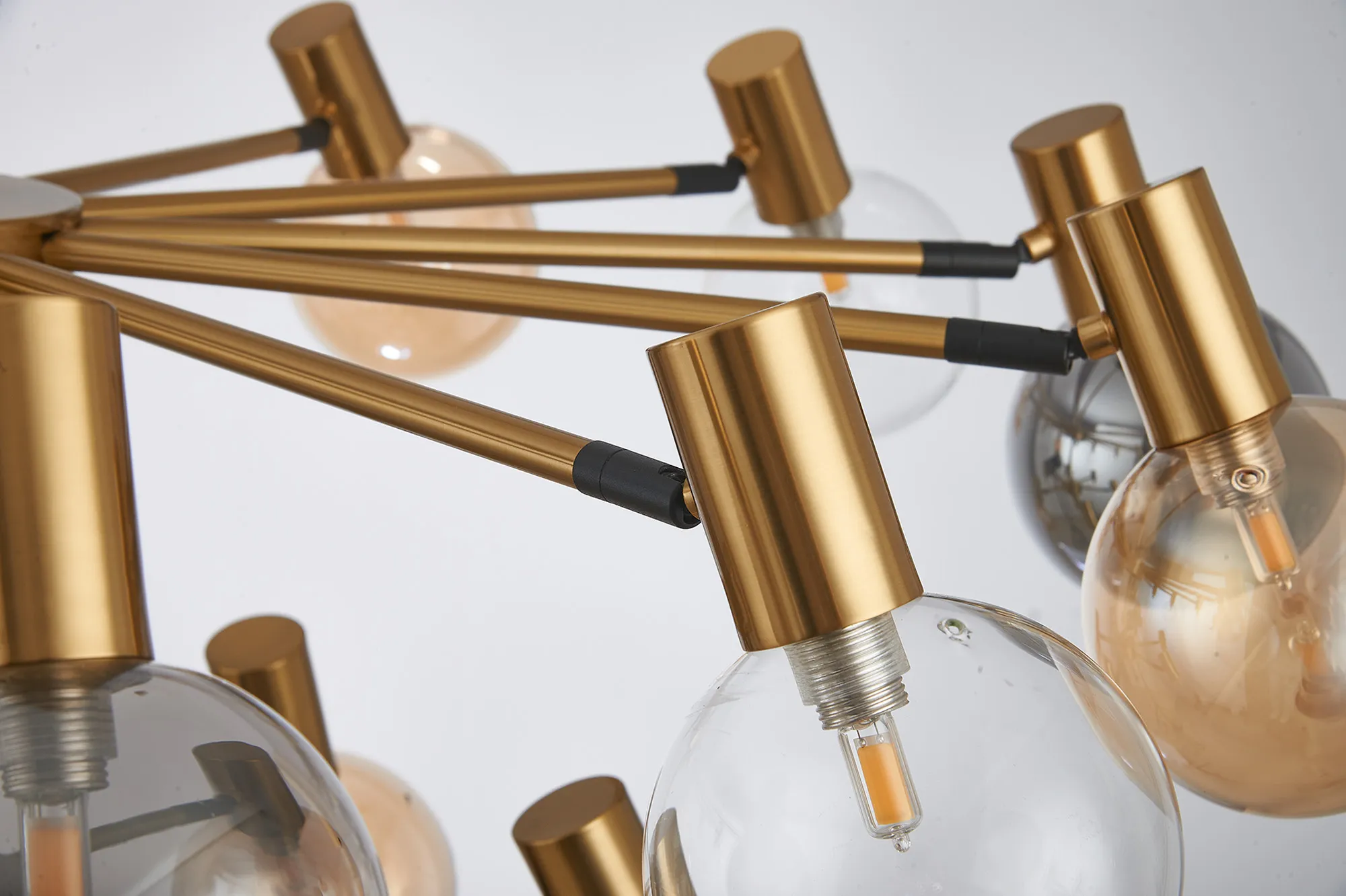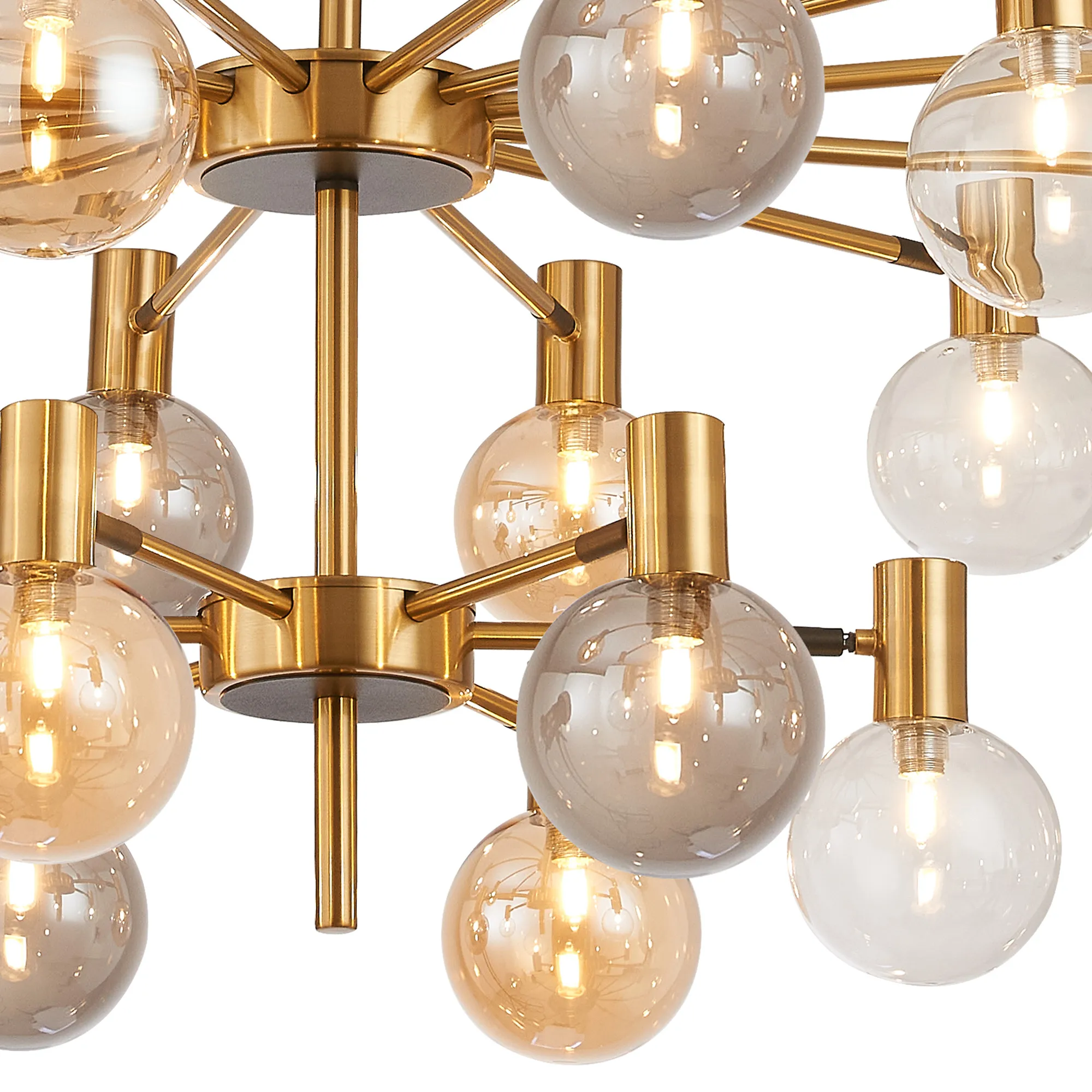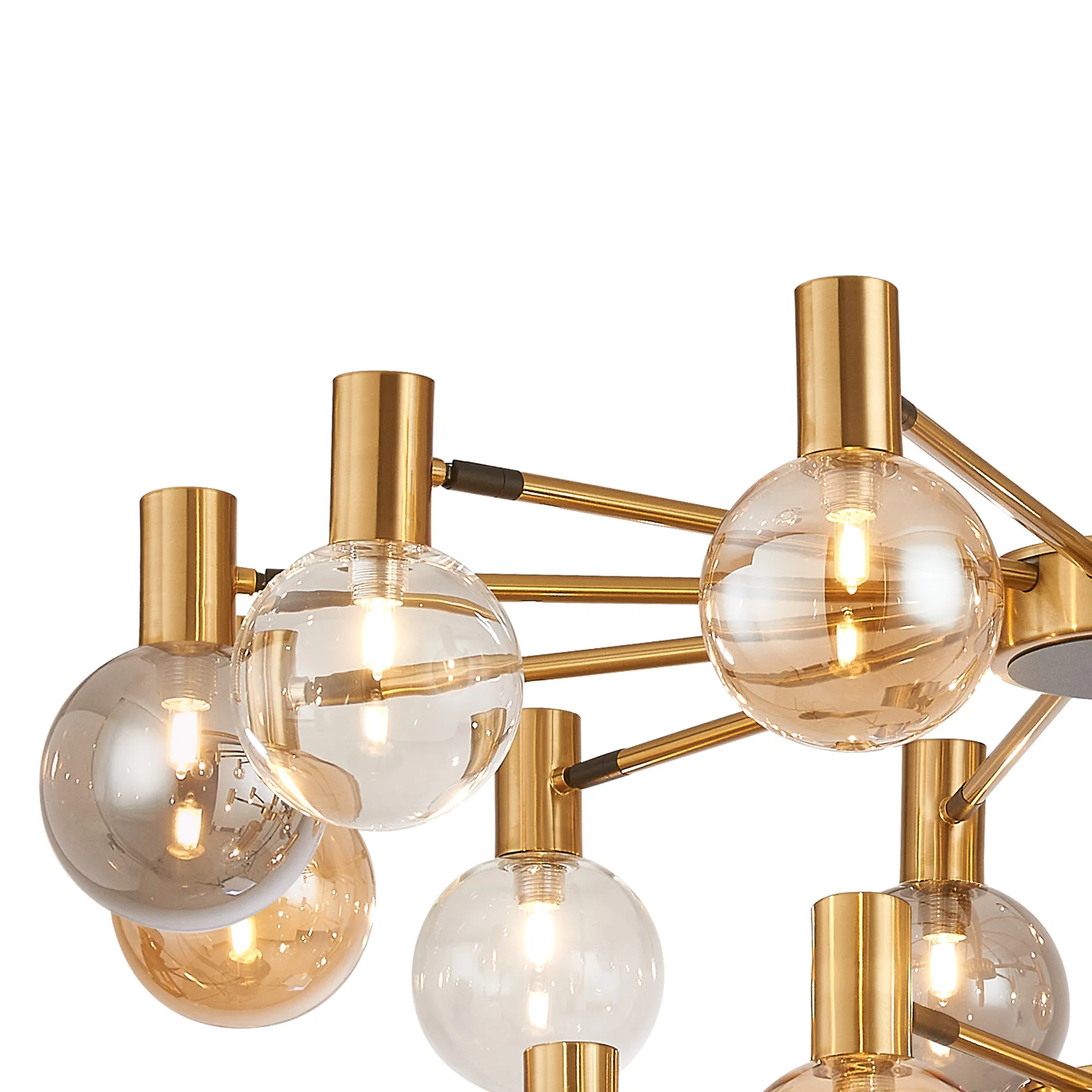 OTHER Fonzaso Fixed Pendant/Semi Flush Adjustable Arms, 18 Light G9, Brass/Black/Amber/Clear Glass Shade