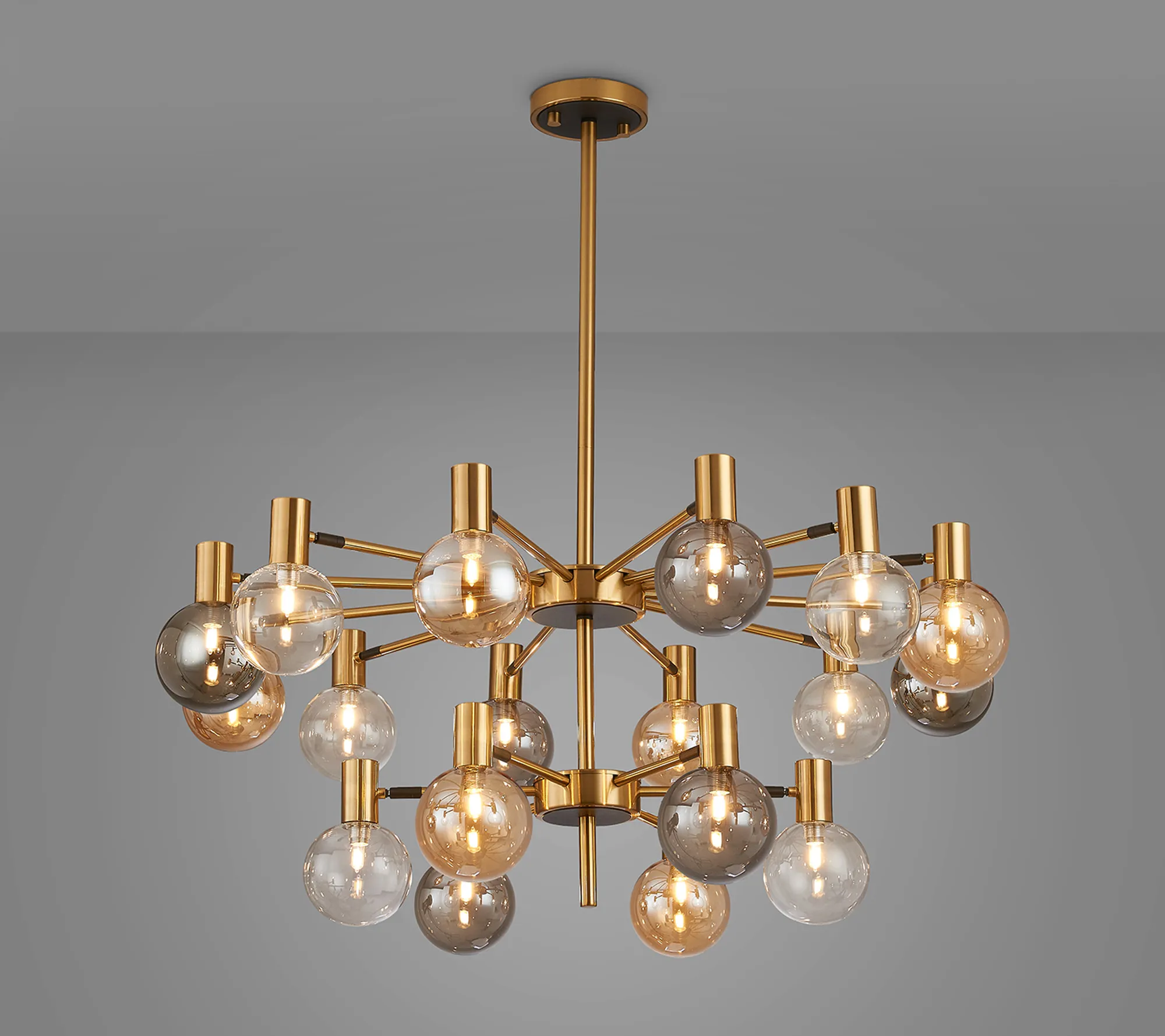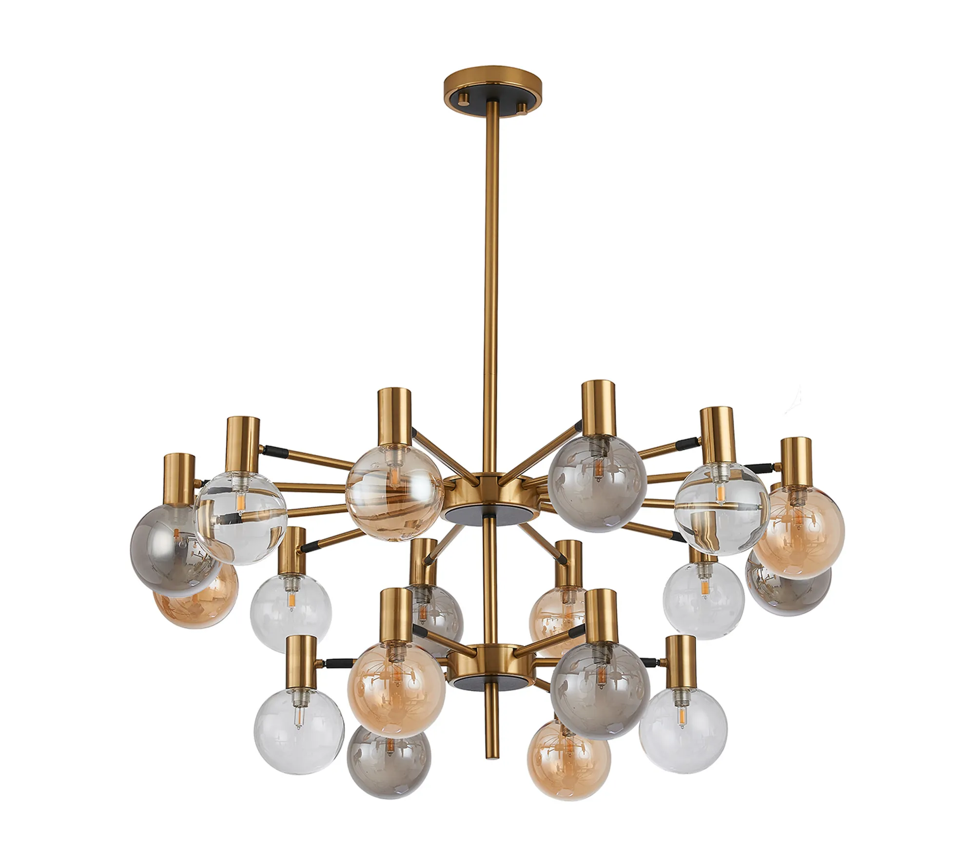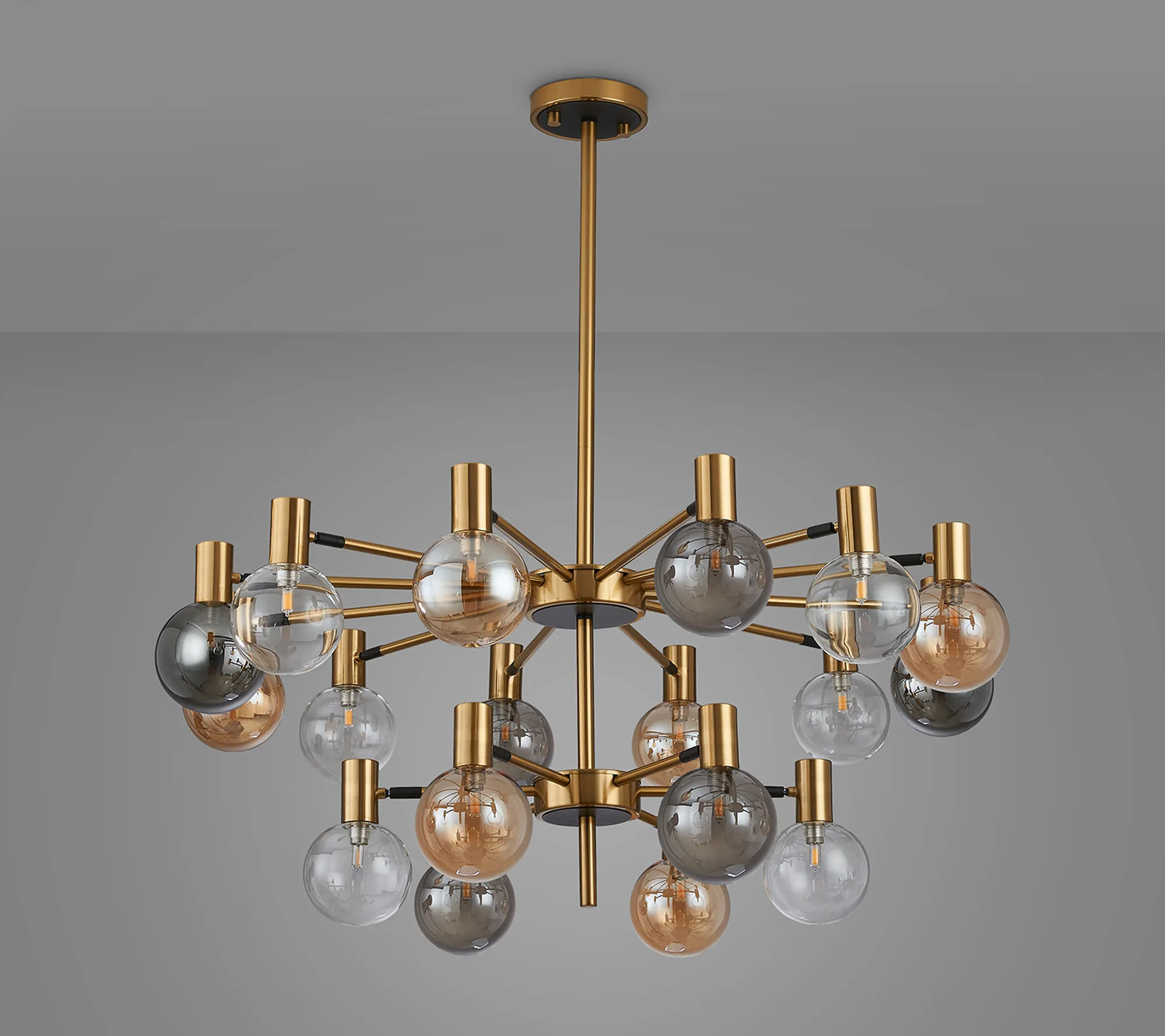 OTHER Fonzaso Fixed Pendant/Semi Flush Adjustable Arms, 18 Light G9, Brass/Black/Amber/Clear Glass Shade