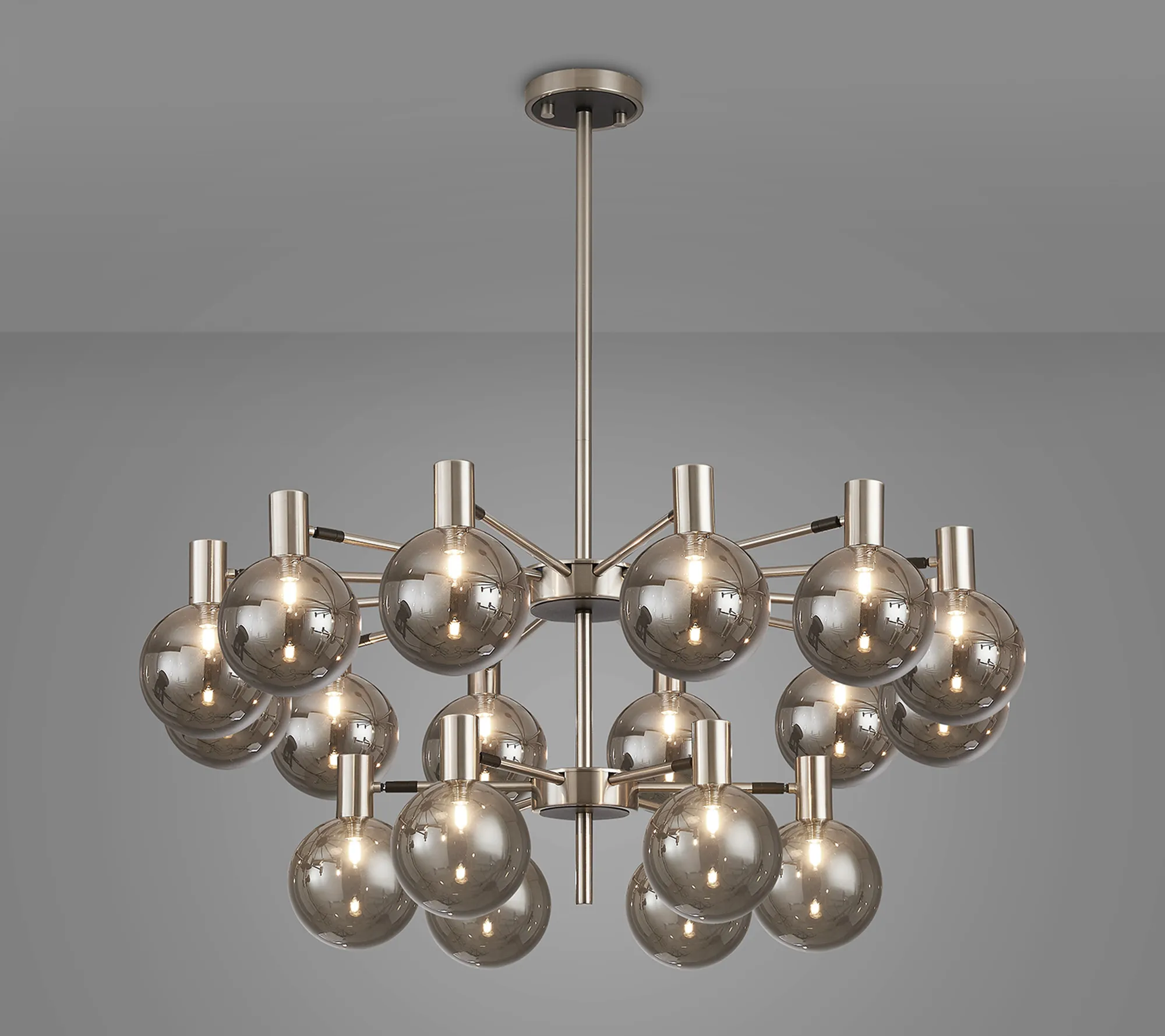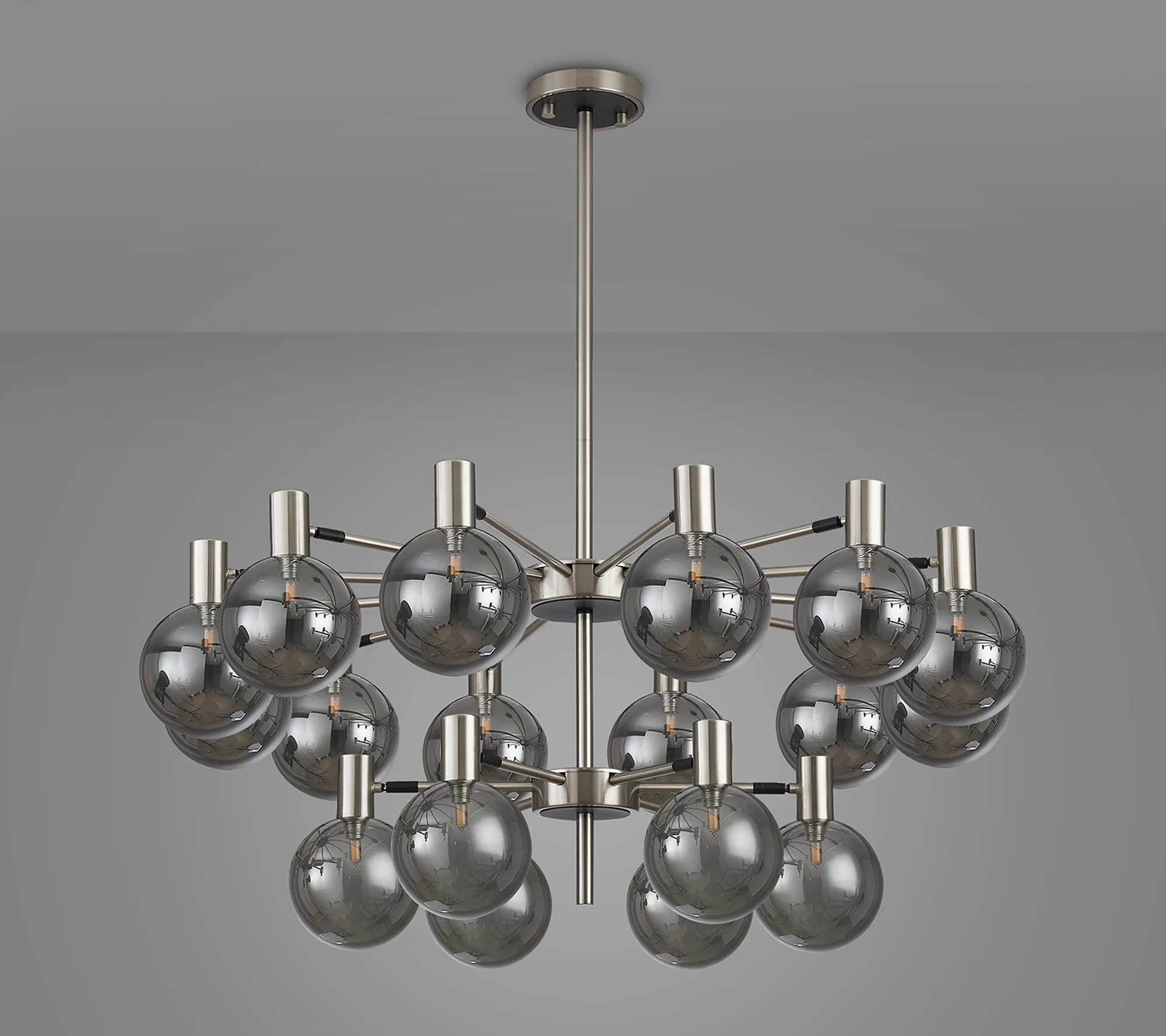 Fonzaso Fixed Pendant/Semi Flush Adjustable Arms (FRAME ONLY), 18 Light G9, Satin Nickel/Black
