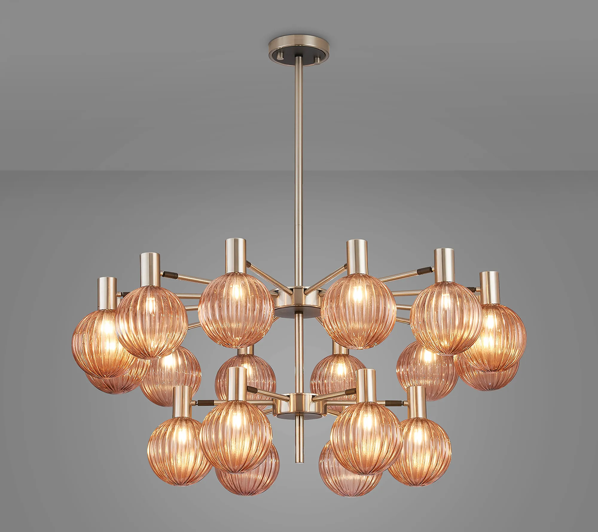 The Fonzaso collection is a versatile and adaptable range of lighting fixtures designed to suit a wide variety of spaces and design preferences. Offering configurations from three to eighteen lights, Fonzaso provides scalable solutions for everything from compact rooms to expansive interiors. One of the standout features of the collection is its adjustable arms, allowing for customized positioning and directional lighting tailored to your space. Whether you need focused task lighting or ambient illumination, Fonzaso offers flexibility without compromising on style. Available in two elegant finishes-brass and satin nickel-the collection complements both contemporary and classic interiors. Each frame can be paired with a wide selection of glass shades, available in various shapes, textures, and colours. This level of customisation encourages creativity, enabling you to curate lighting pieces that reflect your personal taste and enhance your décor. The range also includes matching wall lights, floor lamps, and table lamps, offering a cohesive lighting solution for any room. With its blend of function, flexibility, and design, the Fonzaso collection is a stylish choice for both residential and commercial settings.