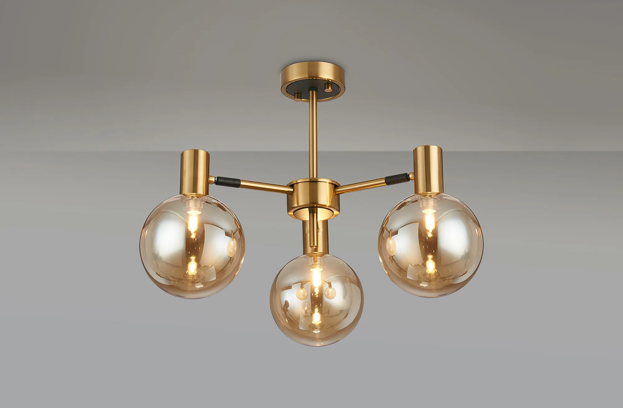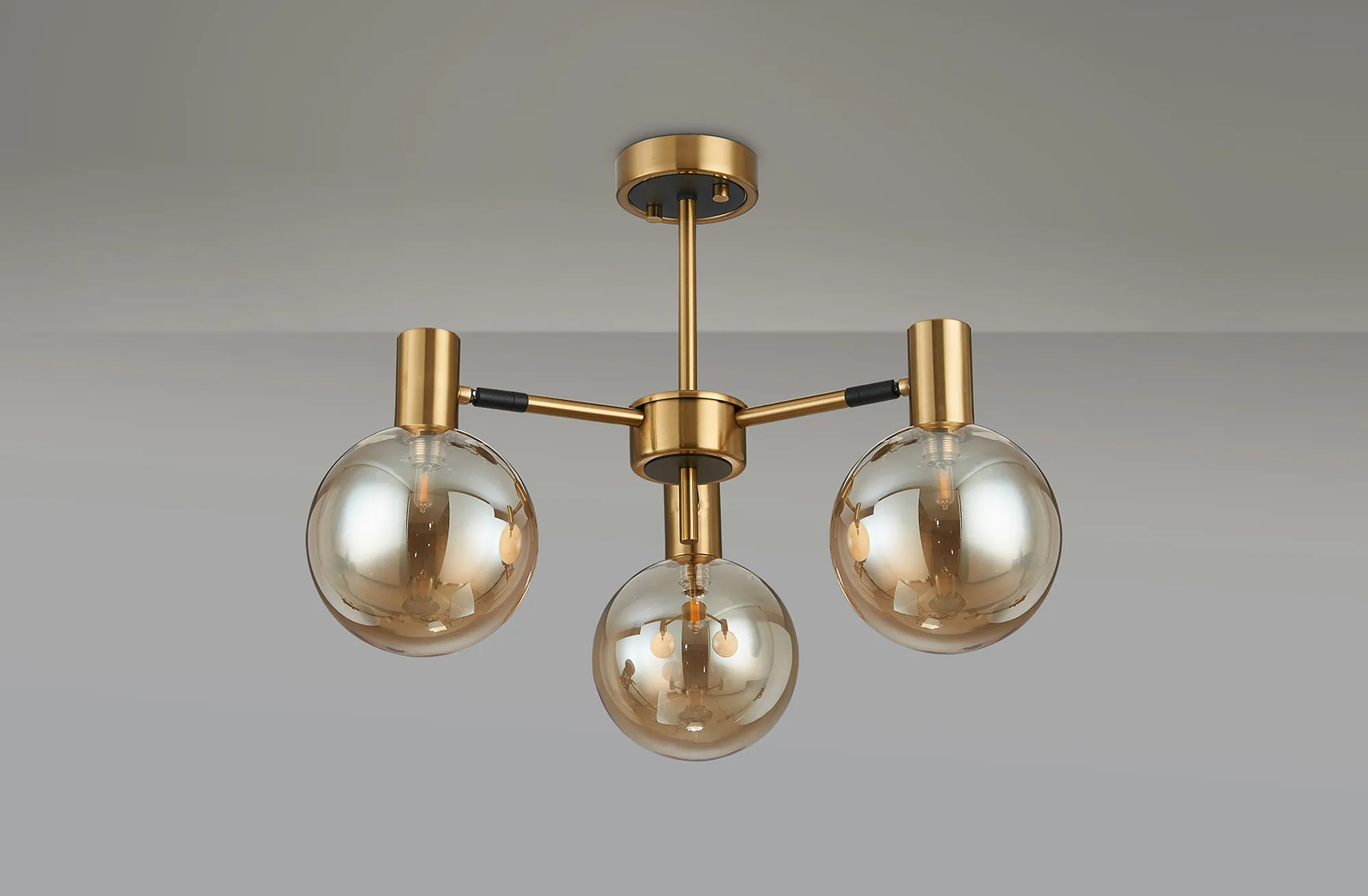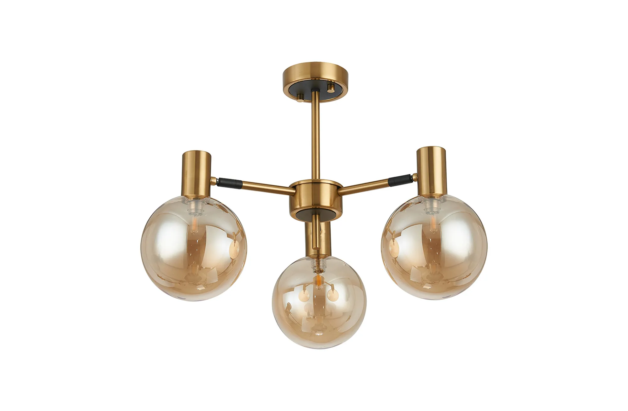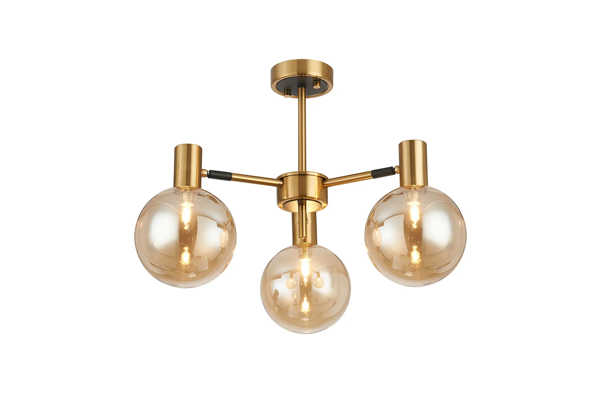 OTHER Fonzaso Semi Ceiling Adjustable Arms, 3 Light G9, Brass/Black/Amber Glass Shade