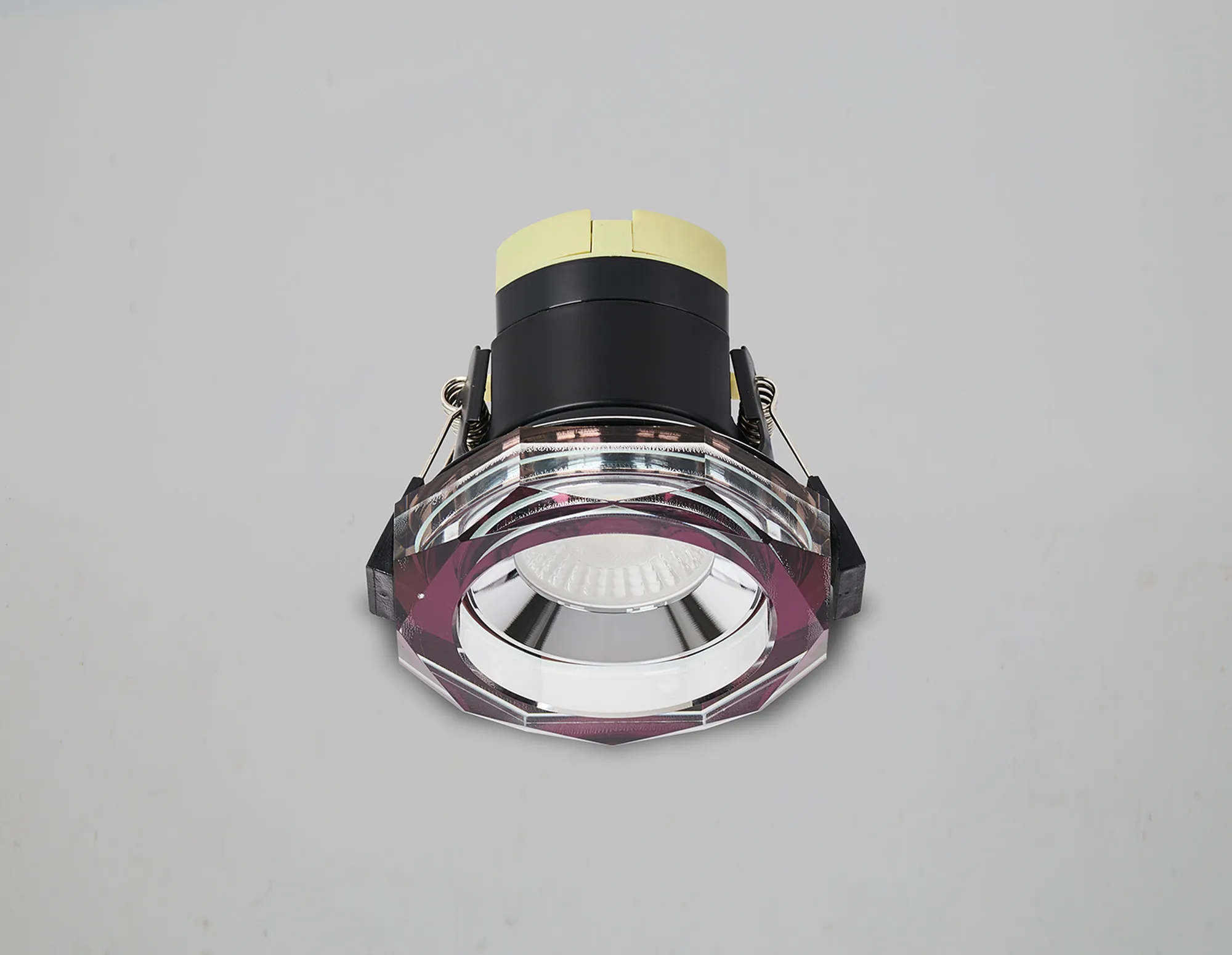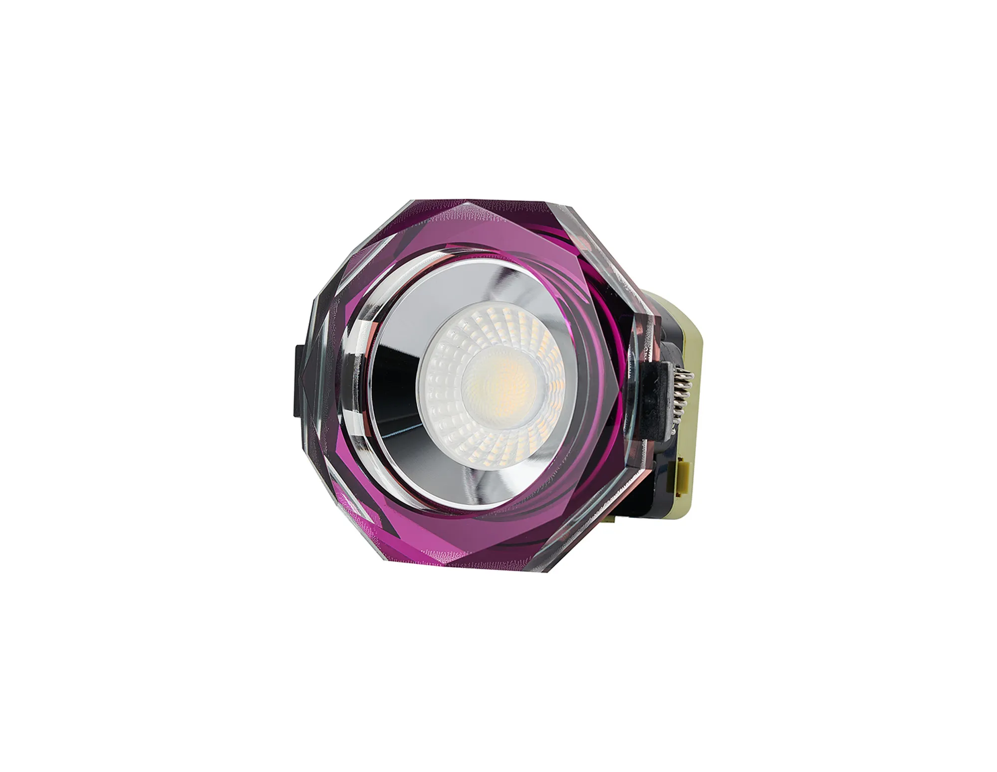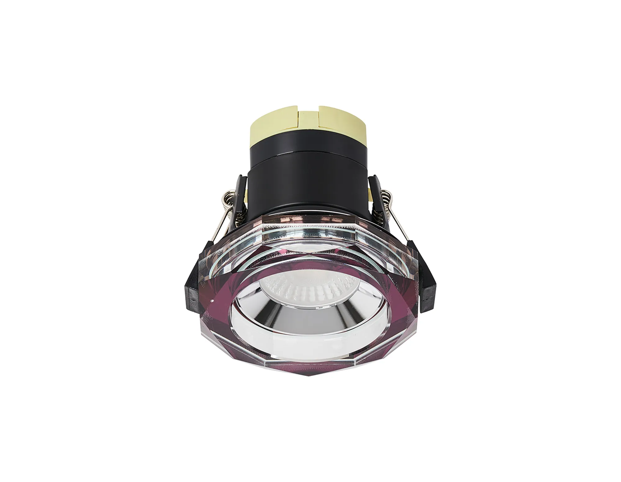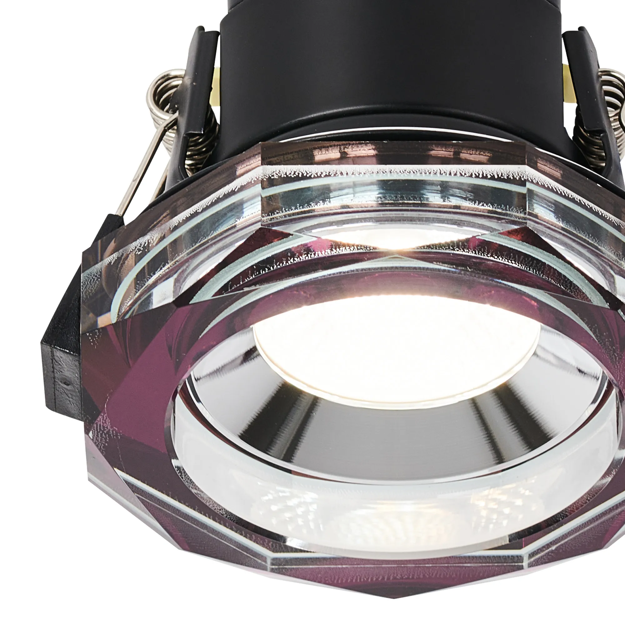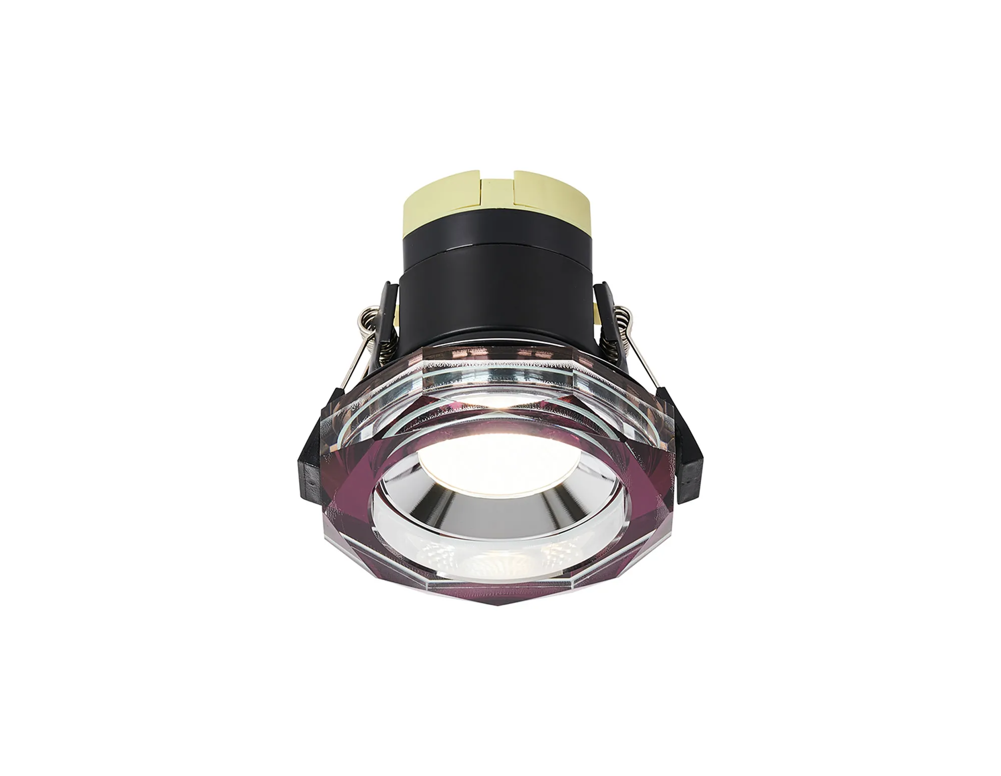 Limatola 8W, Dimmable CCT LED Fire Rated Crystal Downlight, Deep Round Purple, C/Out:70mm, 900lm, 60° Deg, IP65, DRIVER INC. 5yrs Wrnty