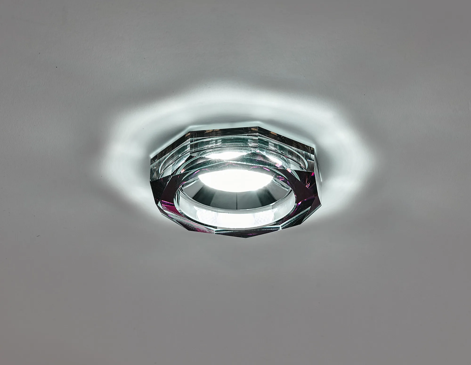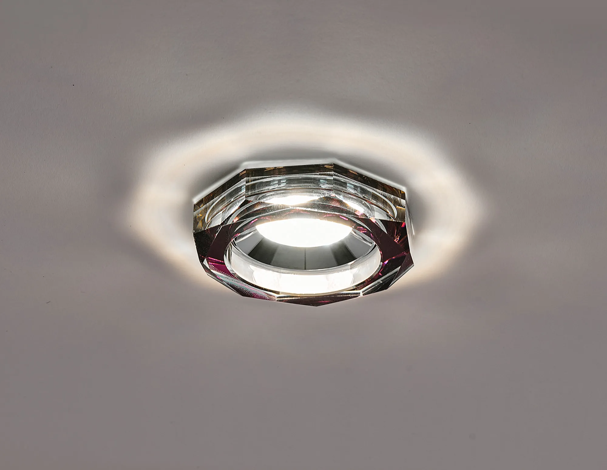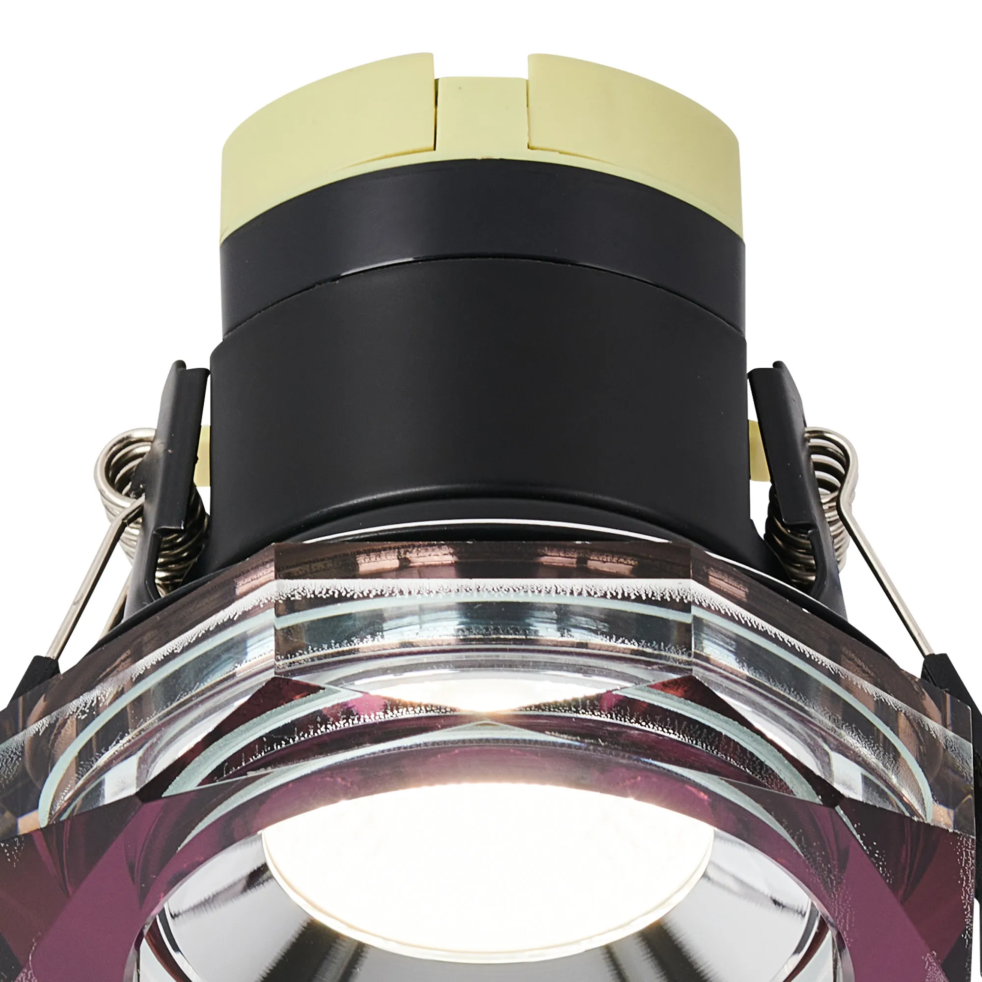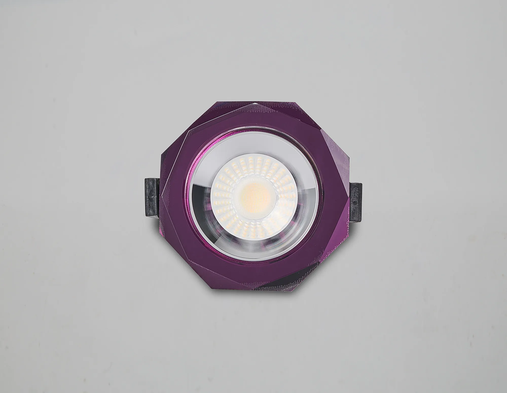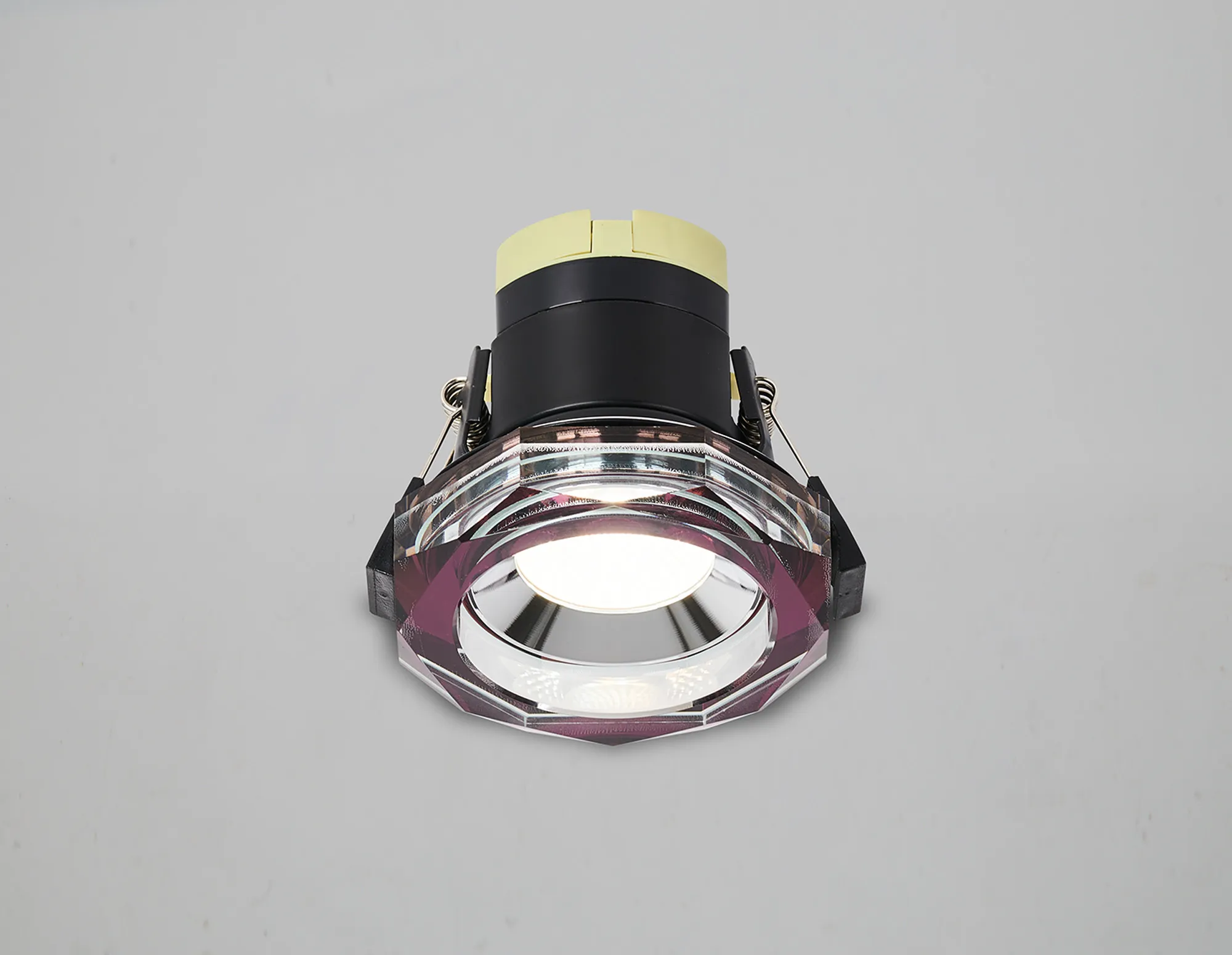 Limatola 8W, Dimmable CCT LED Fire Rated Crystal Downlight, Deep Round Purple, C/Out:70mm, 900lm, 60° Deg, IP65, DRIVER INC. 5yrs Wrnty