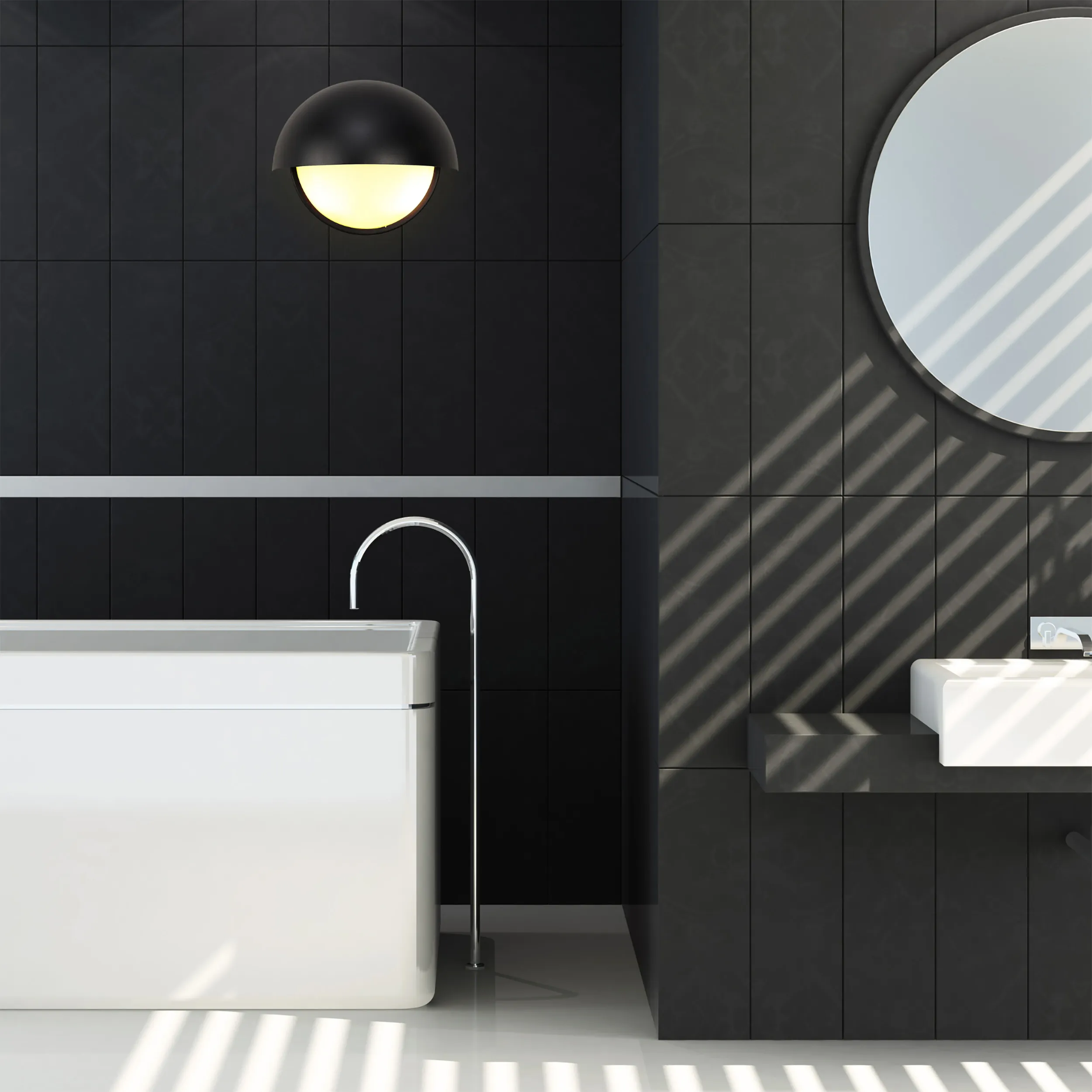 Bergantino is a creative collection of E14 wall lights. The metal semi-circle over hang offers both functionality and individuality for IP54 rated lighting. Two E14 lamp holders are housed beneath this in a smaller opal glass diffuser. Available in seven colour finishes this fixture will add character to any given setting.