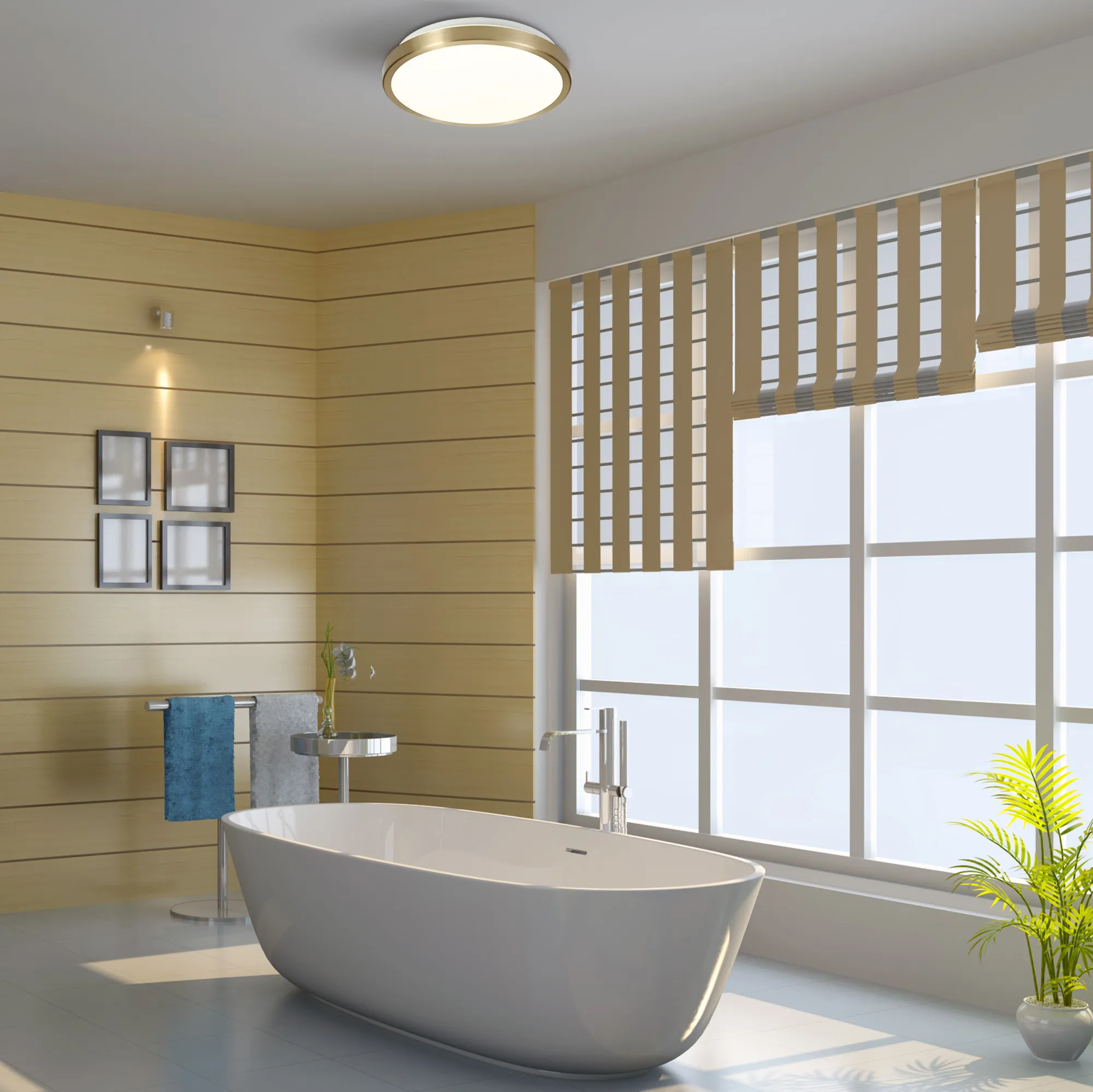 Palaia Ceiling, 12W LED, 4000K, 3-Step-Dimmable, IP44, Satin Nickel/White