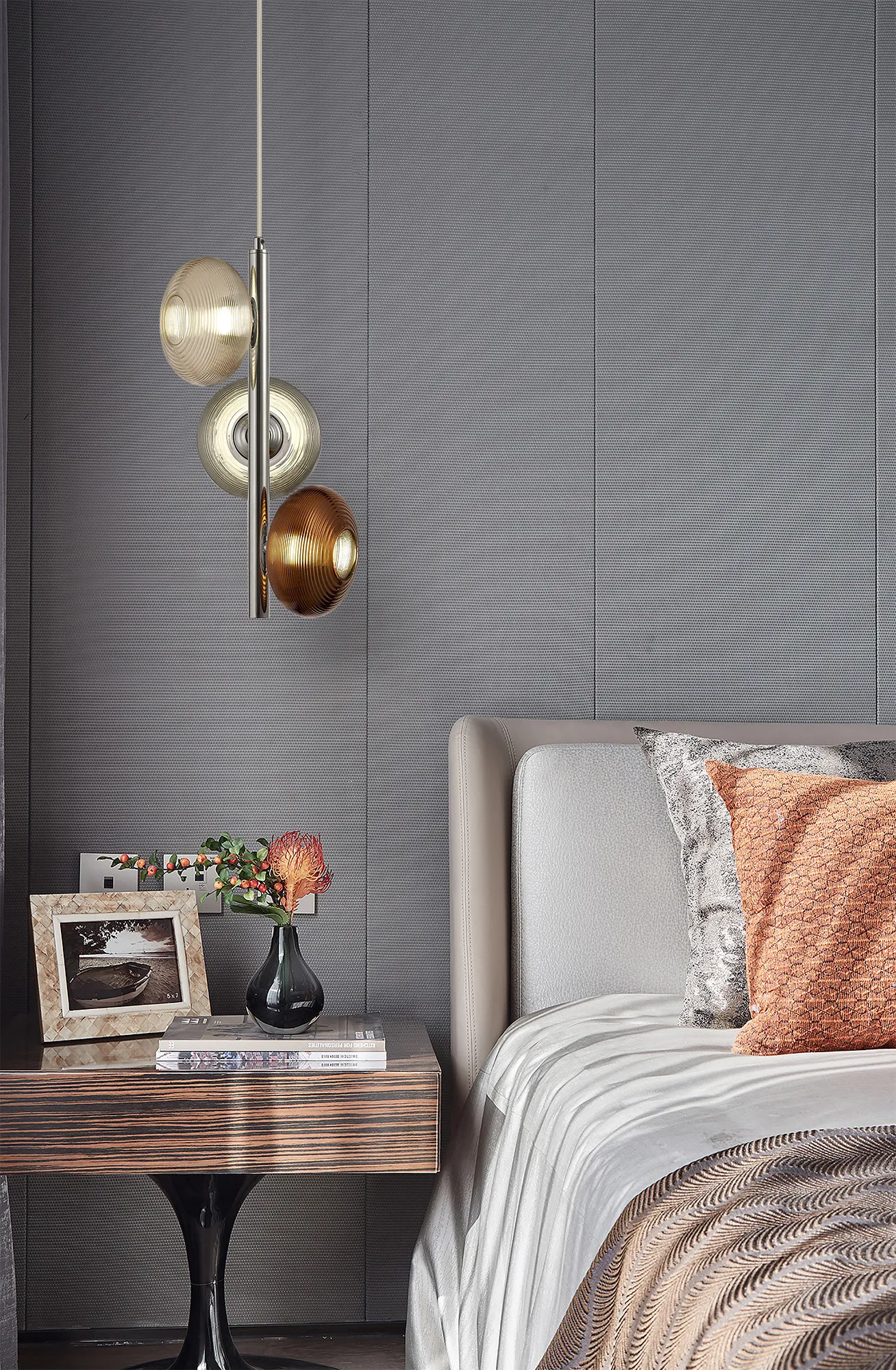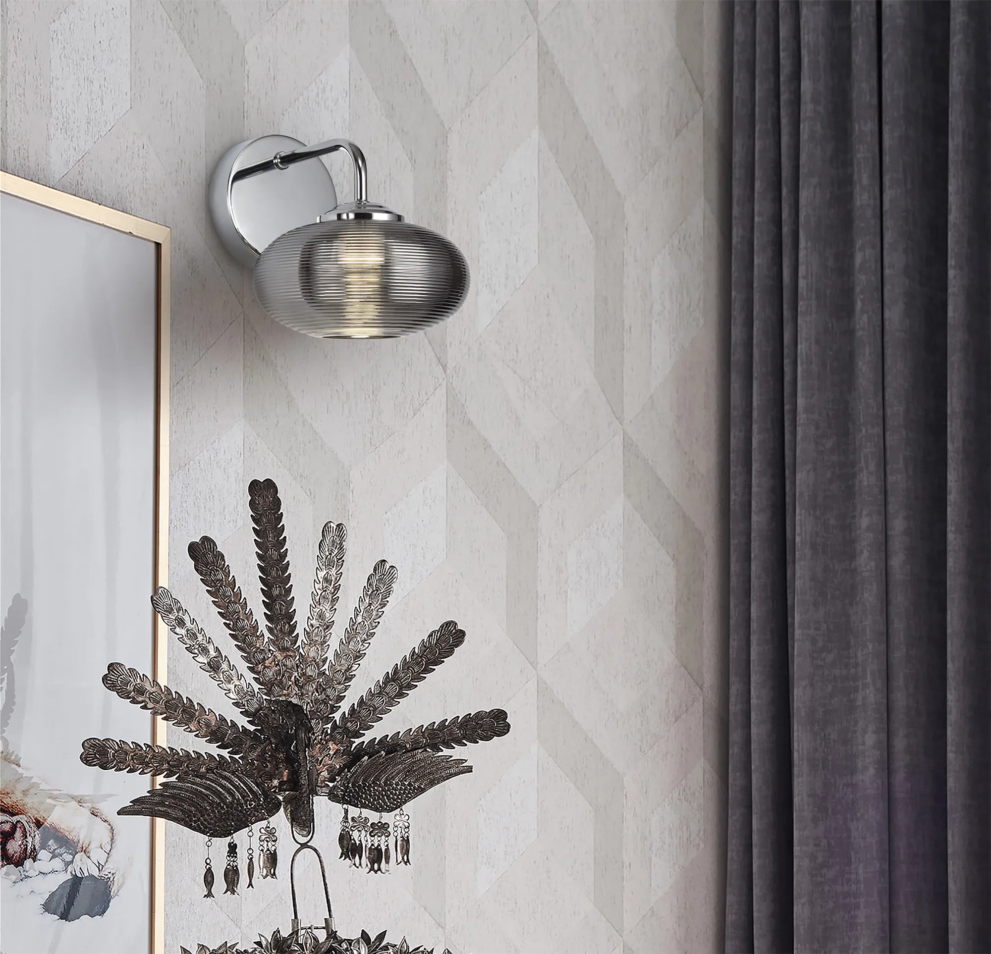 The pendant within this range hosts a trio of oval glass moulded with an aesthetically pleasing rippled effect amplifying the coloured tints. Each glass, which sits around the integral 4000K LED disks, is in a different translucent colour. The LED wall lamps are available with one of the three coloured glass on the pendant allowing a colour theme can be built.
